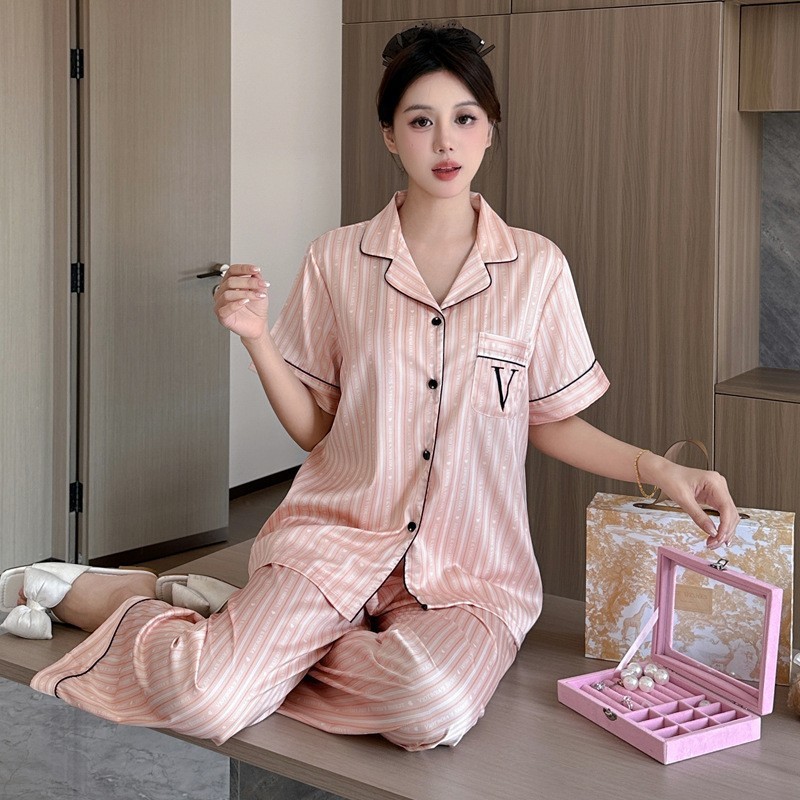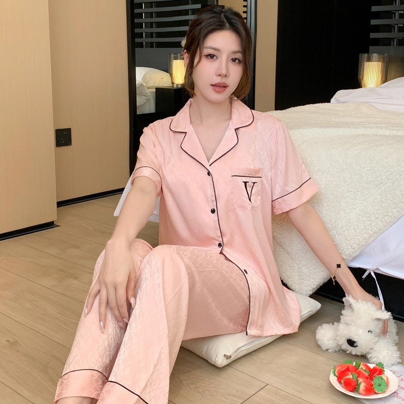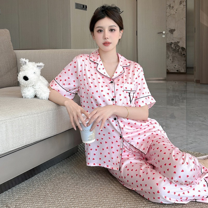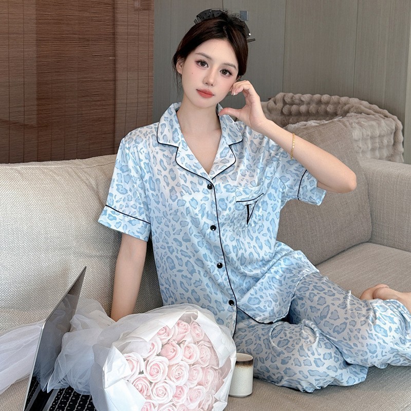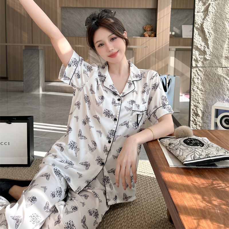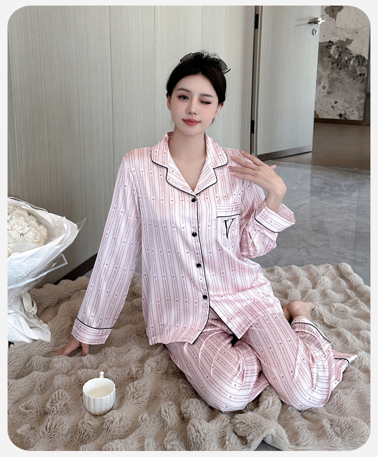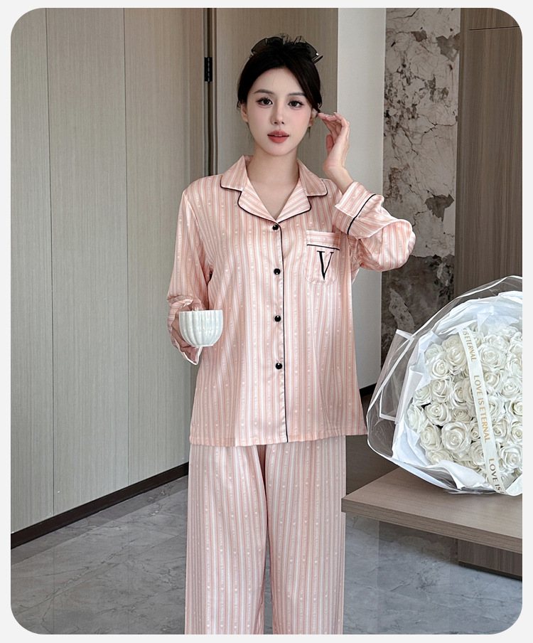 봄과 가을 새로운 여성의 얼음 실크 얇은 잠옷 긴팔 양복 물광택 실크 가정 의류 Пижама스토어 가기