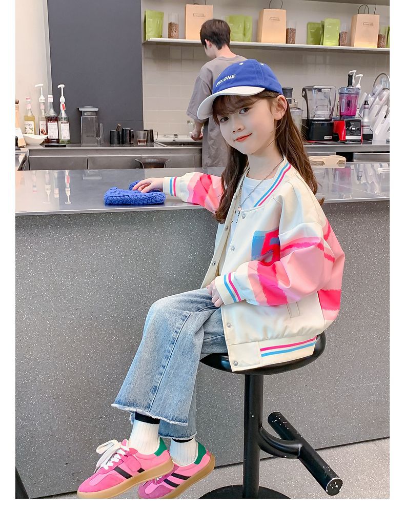 여아 코트 가을 2025 새로운 스타일 아동 야구 유니폼 탑 어린 소녀 봄, 가을 유행 재킷스토어 가기