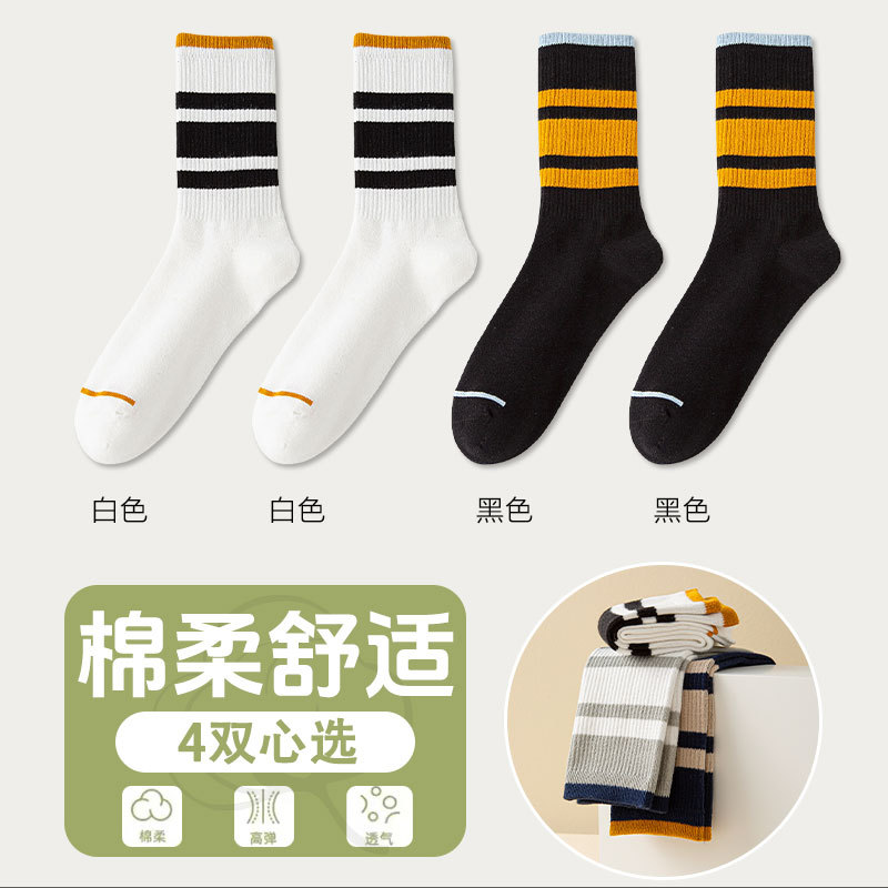 양말 남성용 가을 및 겨울 양말 스타킹 다용도 스포츠면 양말 땀 흡수성 통기성 남성용 양말 스트라이프 남성용 스타킹