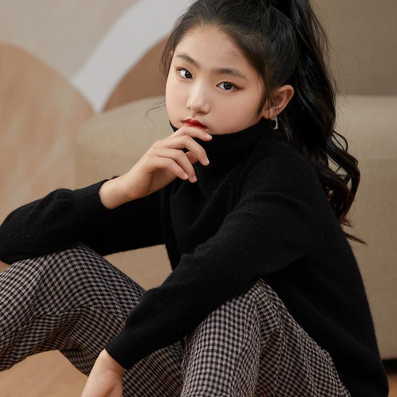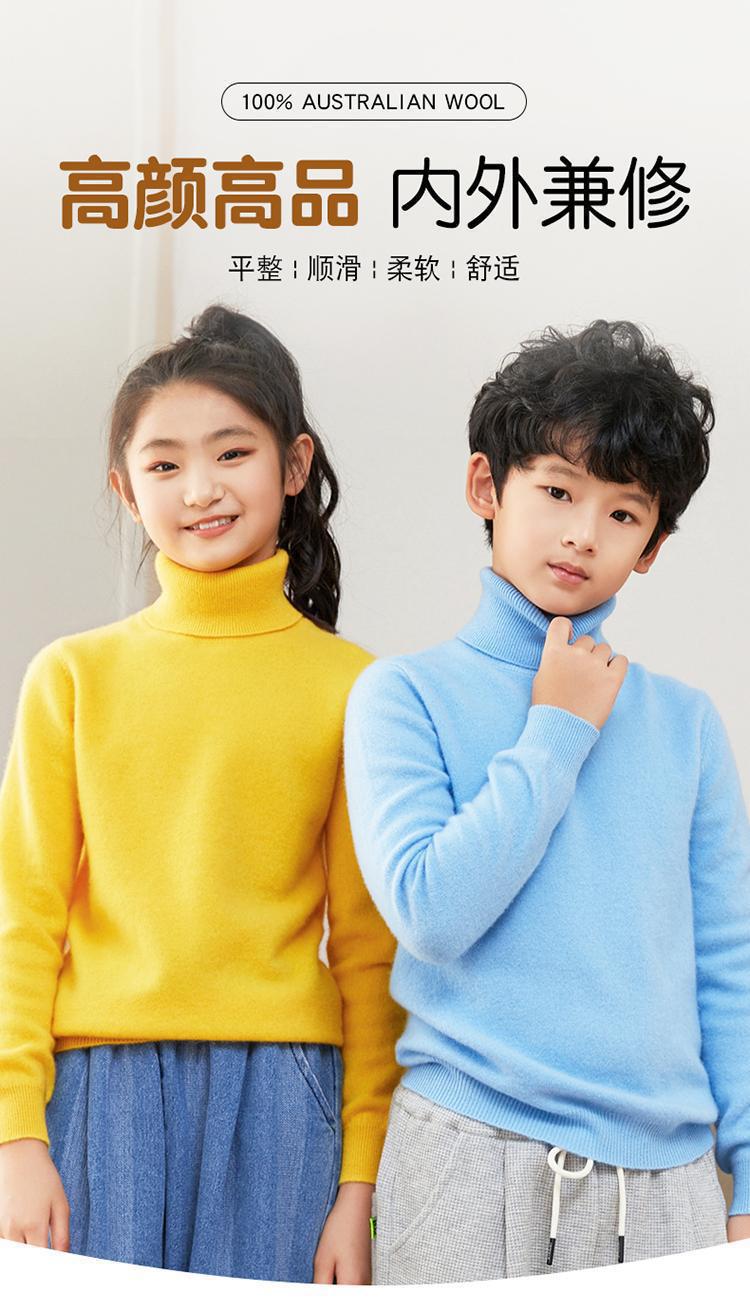 어린이 양모 스웨터 소년의 가을과 겨울 하이 칼라 베이스 스웨터 솔리드 컬러 걸스 캐시미어 스웨터