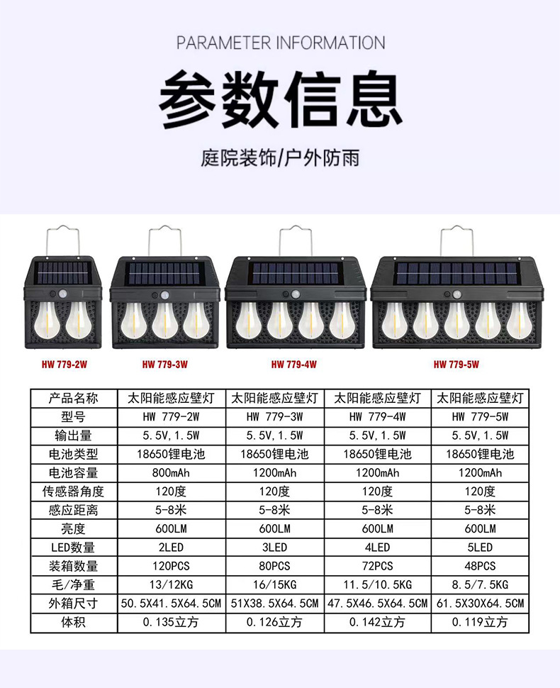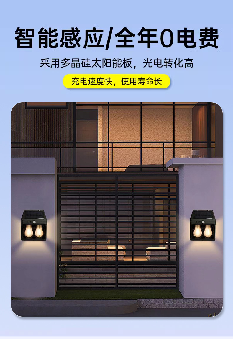새로운 야외 태양 광 유도 벽 램프 방수 텅스텐 램프 유도 정원 램프 정원 빌라 벽 램프