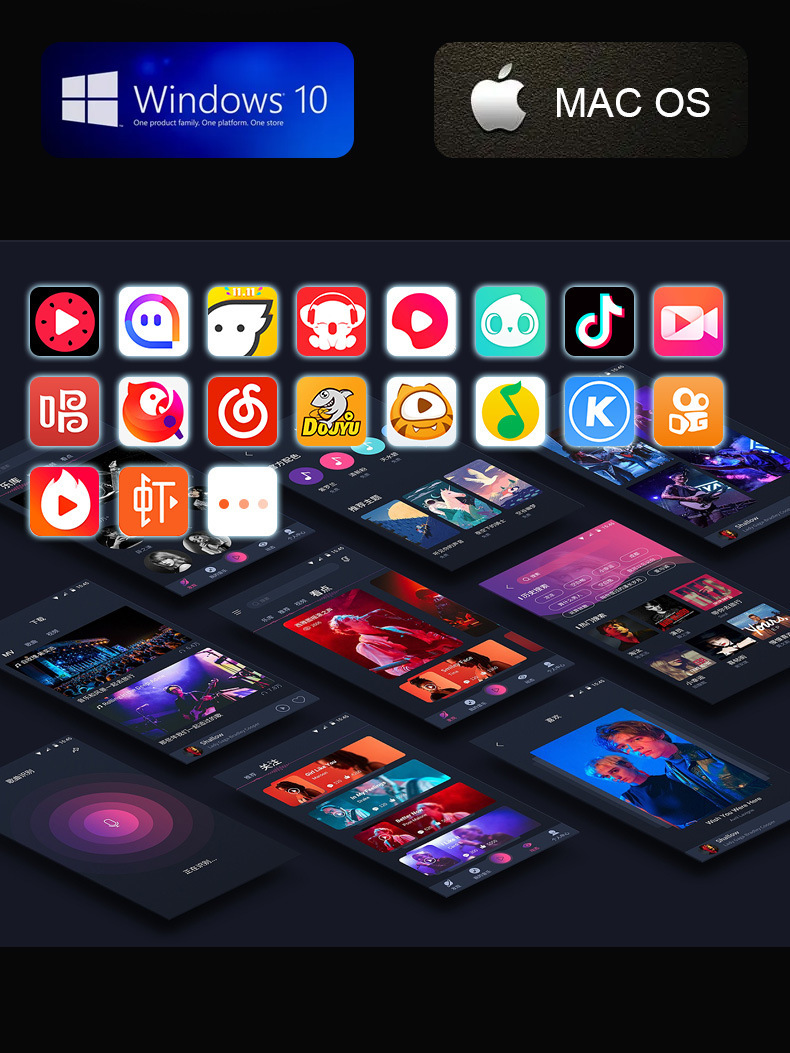 支持设备: 兼容市面上大部分主流电脑操作系统、支持99%直播唱歌录音软件
