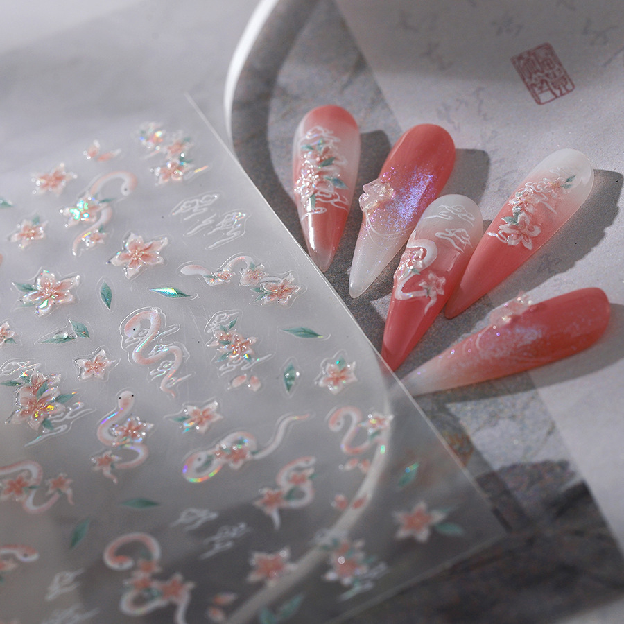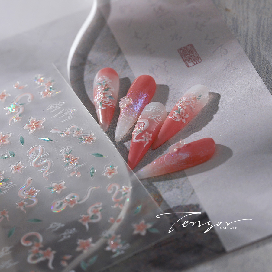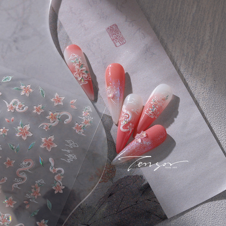 TENSOR 신기술 골동품 쉘 라이트 백 접착제 갑옷 스티커 꽃과 뱀 네일 아트 스티커 젤리 젤 시리즈 M-598