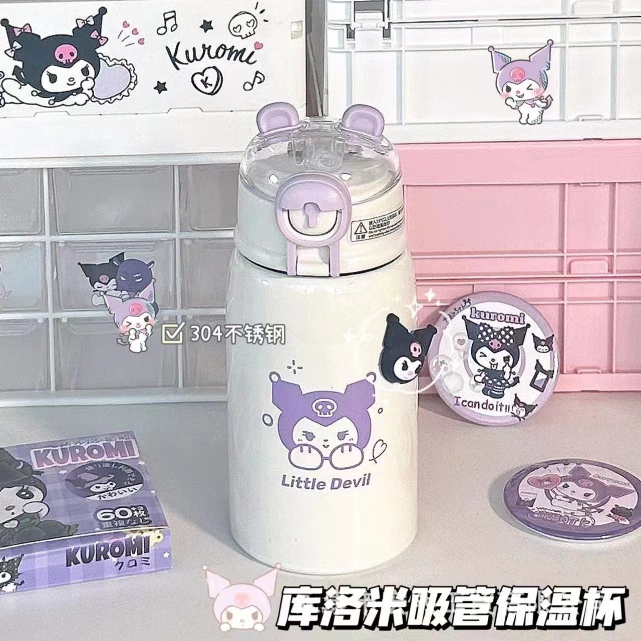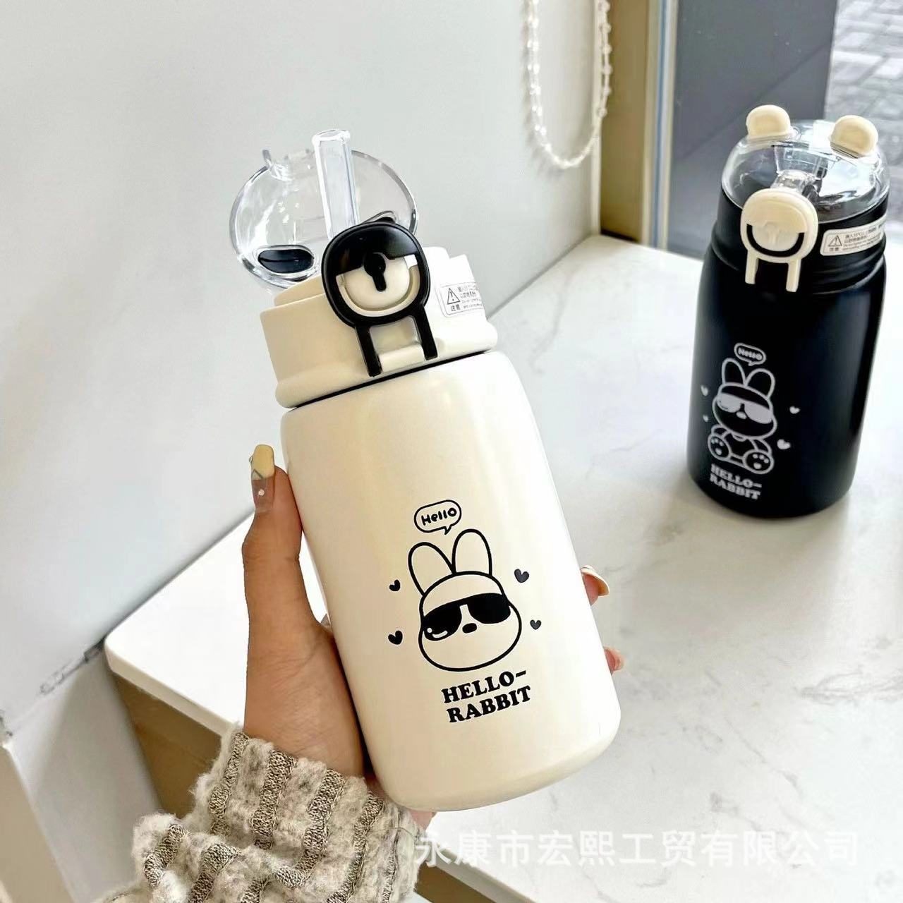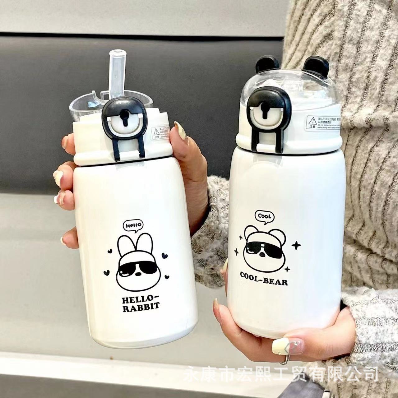 새로운 316 스테인레스 스틸 머그잔 만화 높은 색상 가치 휴대용 흡입 컵 튀는 남녀 학생 물 컵스토어 가기