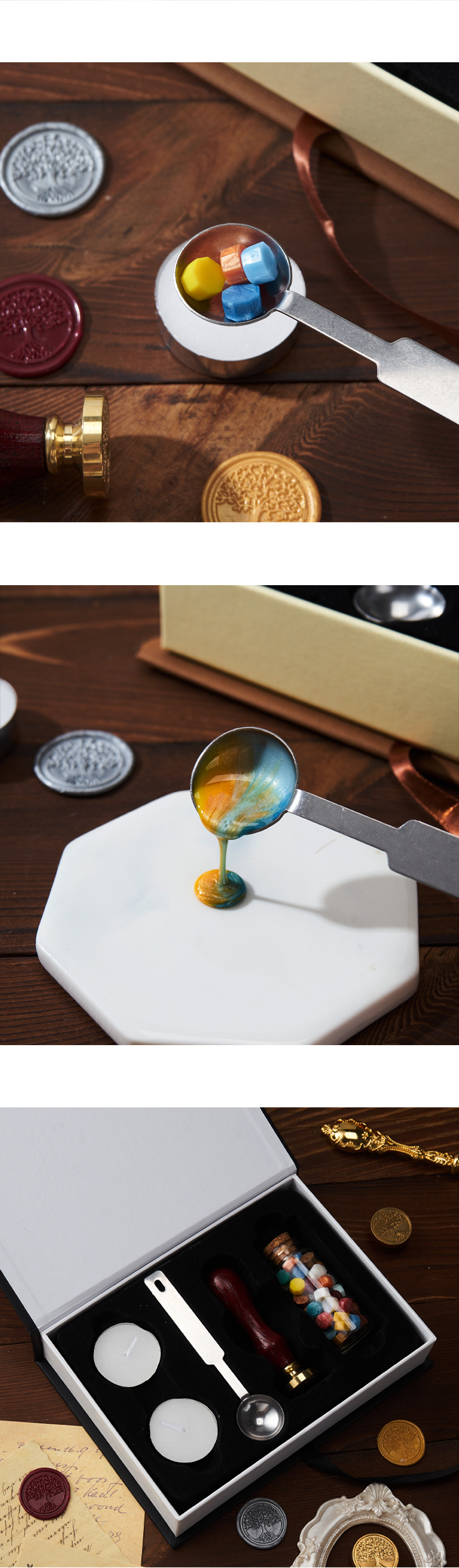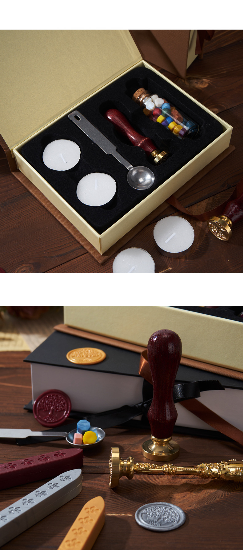 유럽 레트로 래커 씰 세트 선물 상자 청첩장 봉투 래커 왁스 스트립 전체 세트 도매 옵션 그림