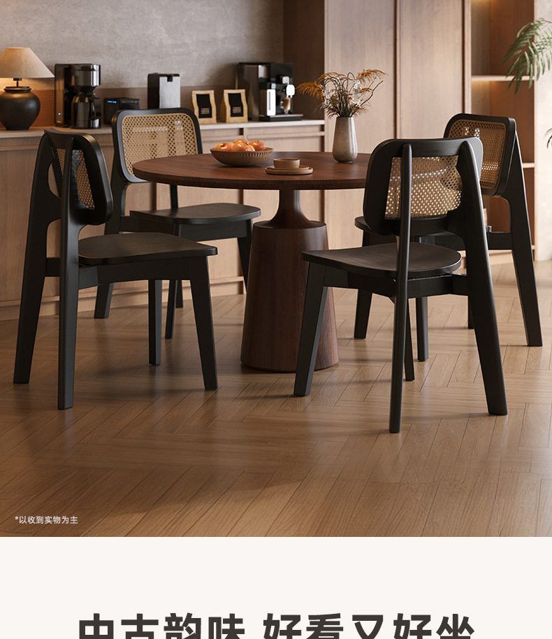 中古藤编餐椅家用北欧靠背椅子现代藤椅复古设计师黑色实木餐桌椅