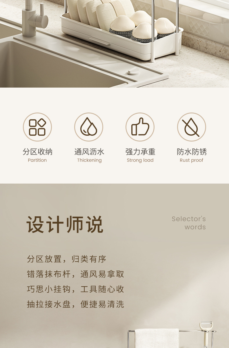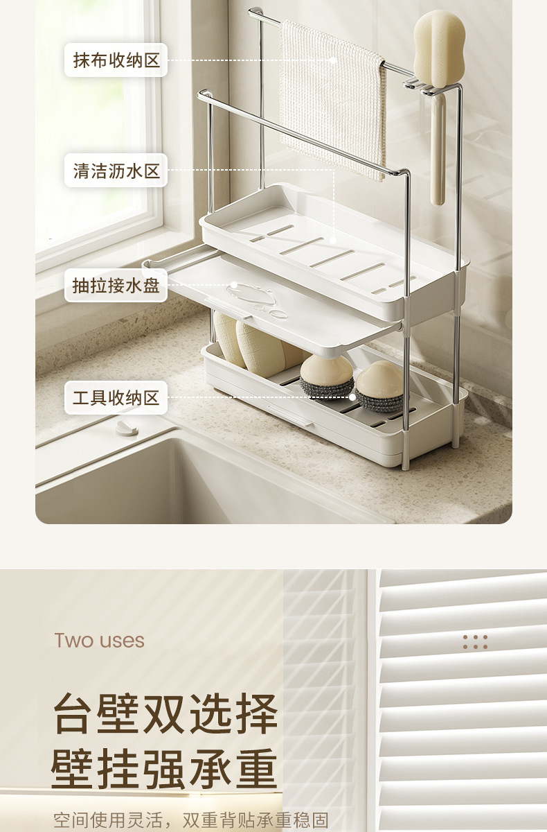 걸레 건조대 주방 다용도 싱크대 행주 보관대 무타공 카운터탑 싱크대 벽걸이 수납선반