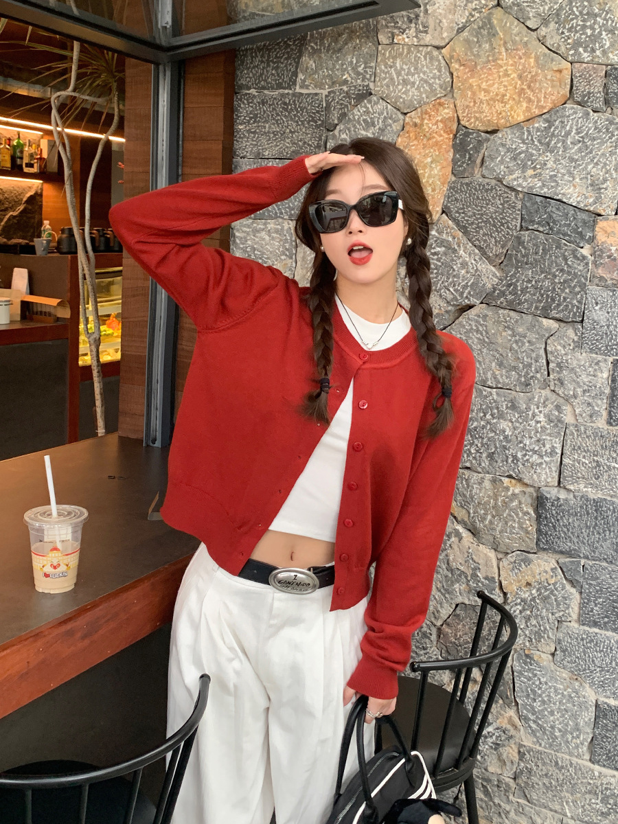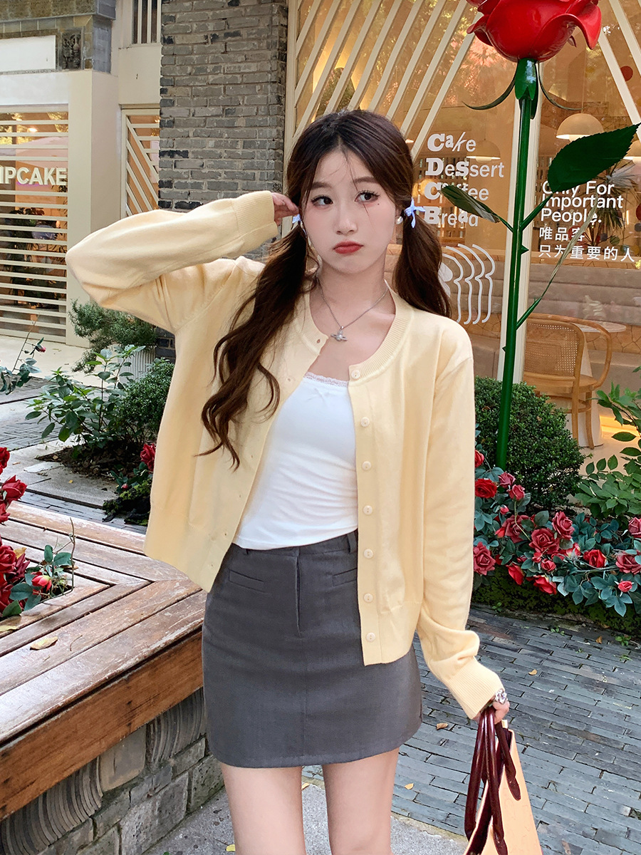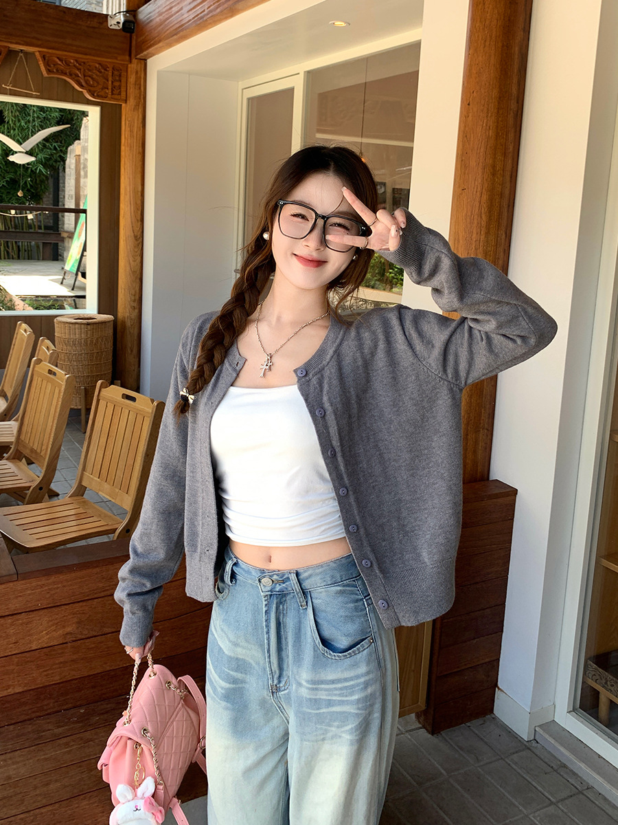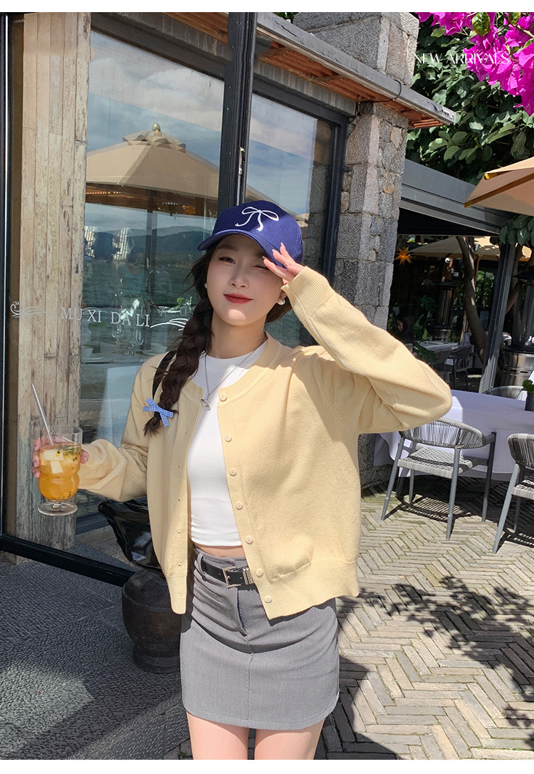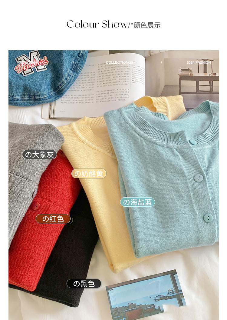 짧은 스웨터 여성의 2024 가을 새로운 라운드 넥 니트 작은 카디건 느슨한 캐주얼 게으른 스타일 코트 여성용 트렌디스토어 가기