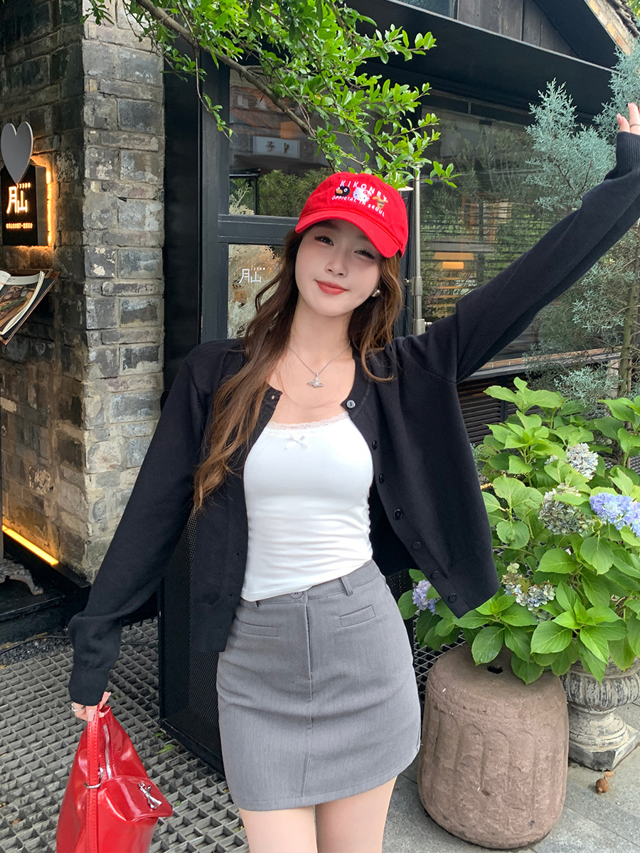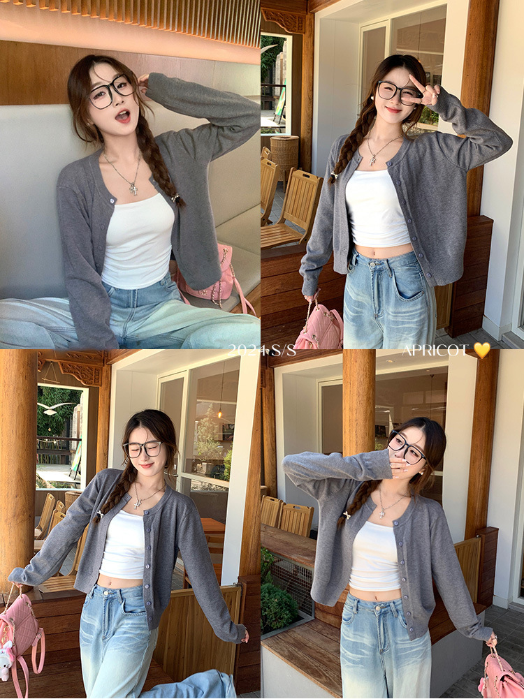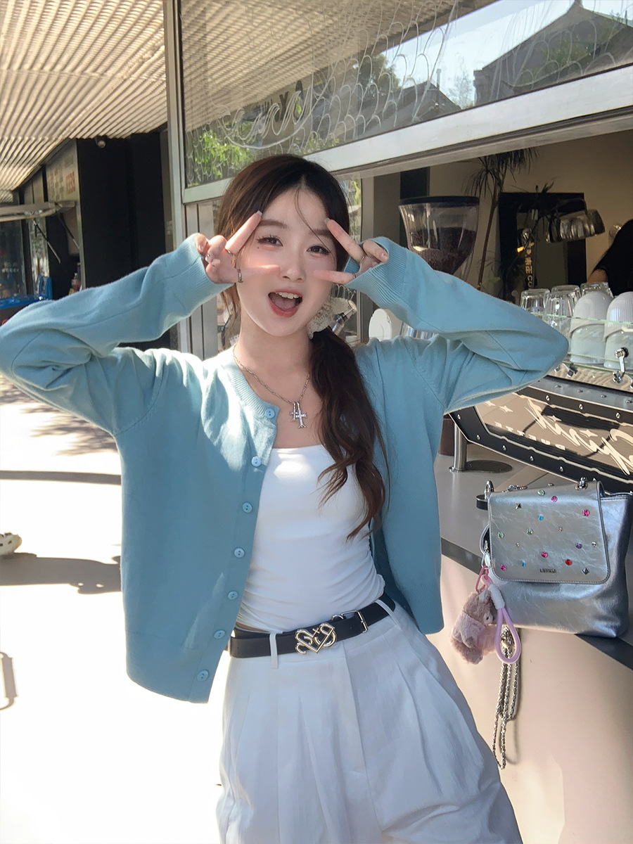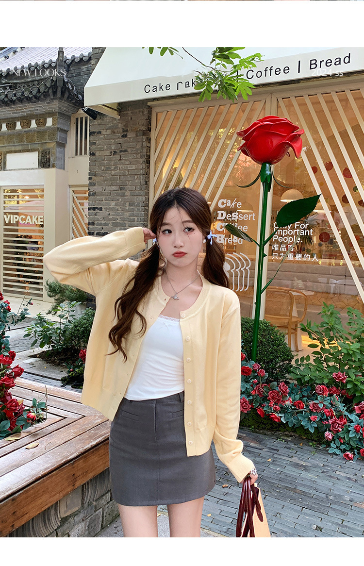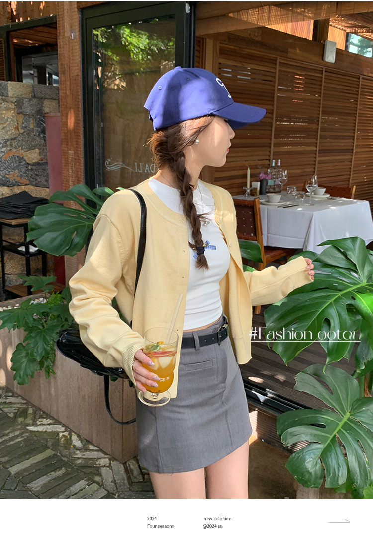 짧은 스웨터 여성의 2024 가을 새로운 라운드 넥 니트 작은 카디건 느슨한 캐주얼 게으른 스타일 코트 여성용 트렌디스토어 가기