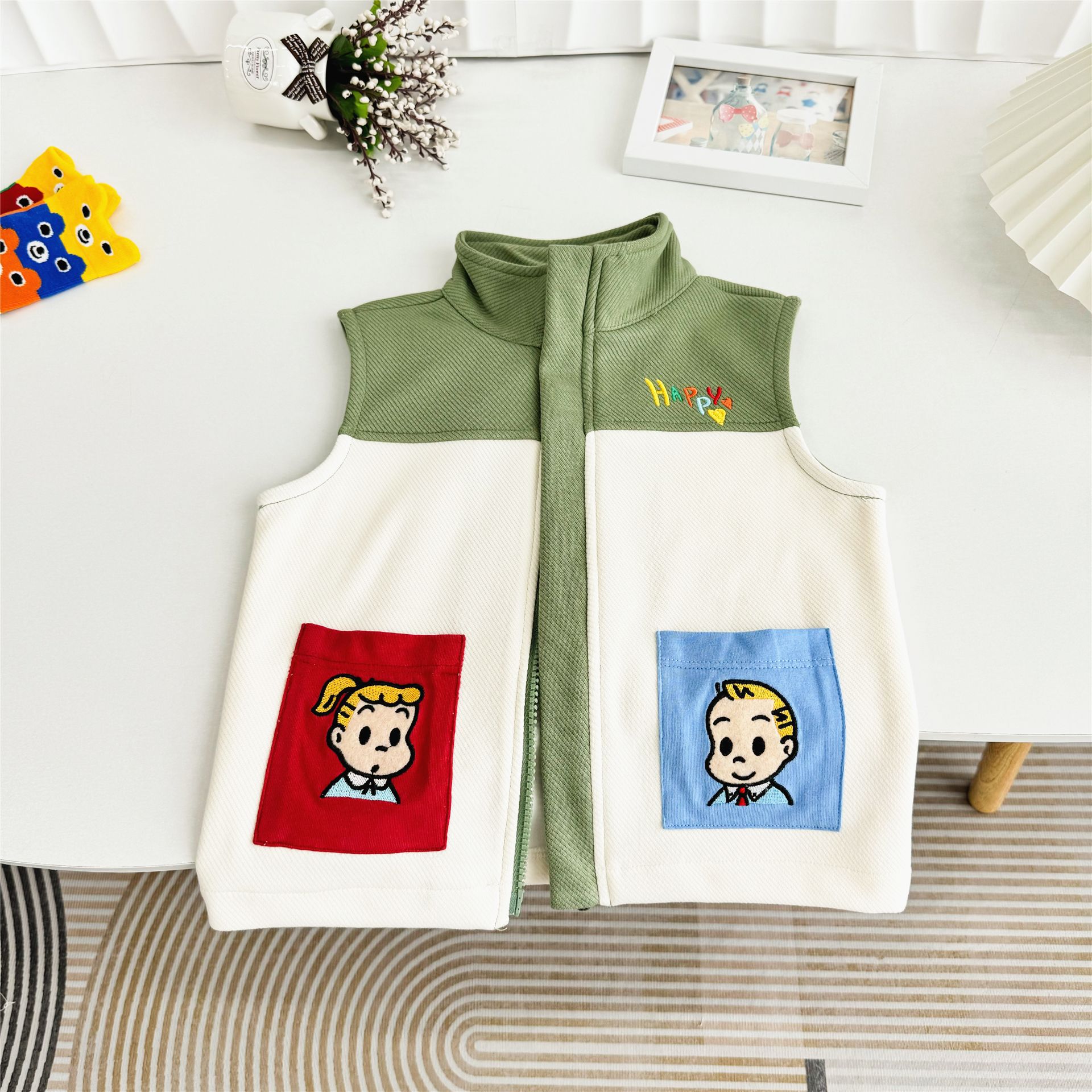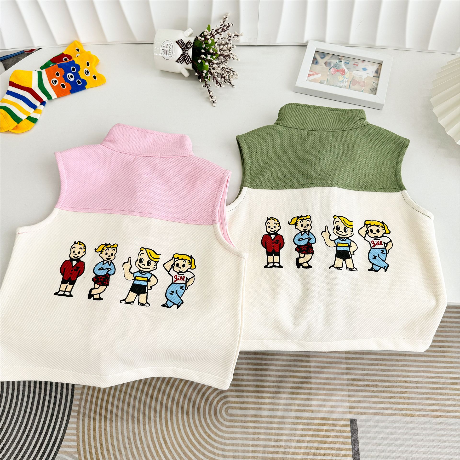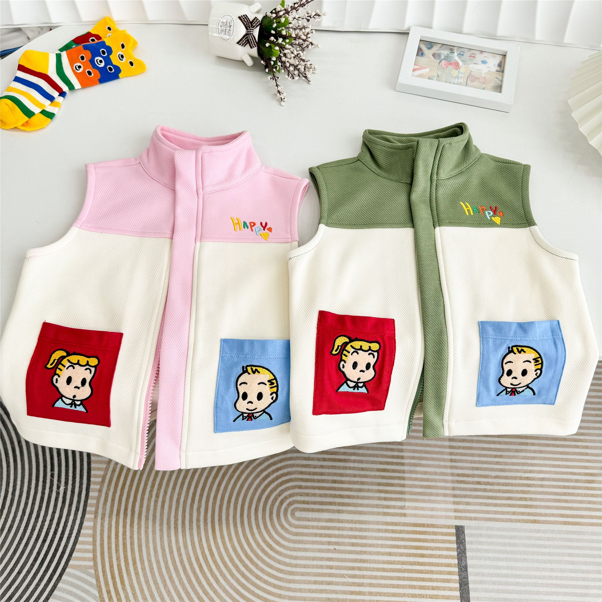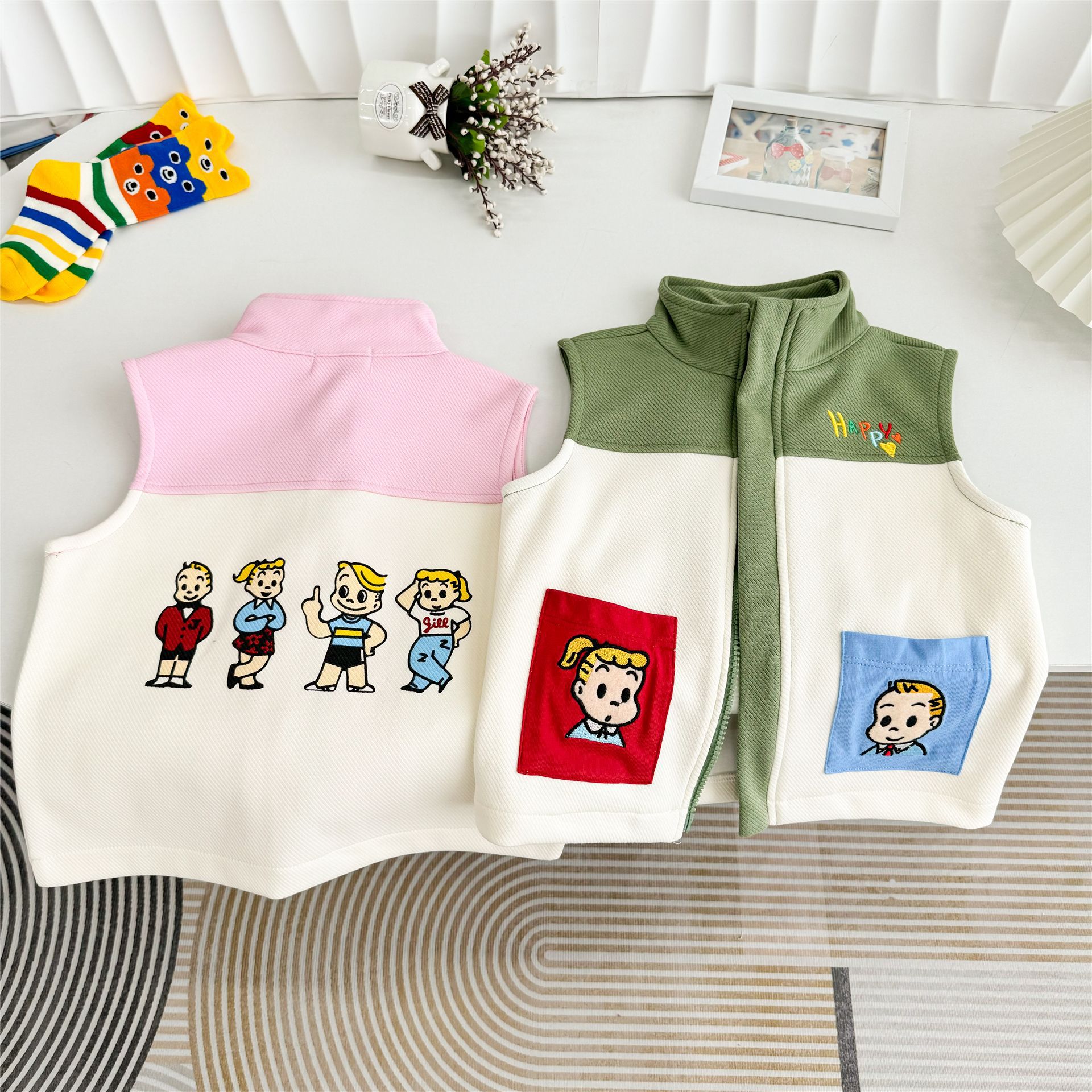 어린이 수놓은 조끼 하라다 어깨 24 가을 새 민소매 조끼 자수 어린이 캐주얼 아우터 5062스토어 가기