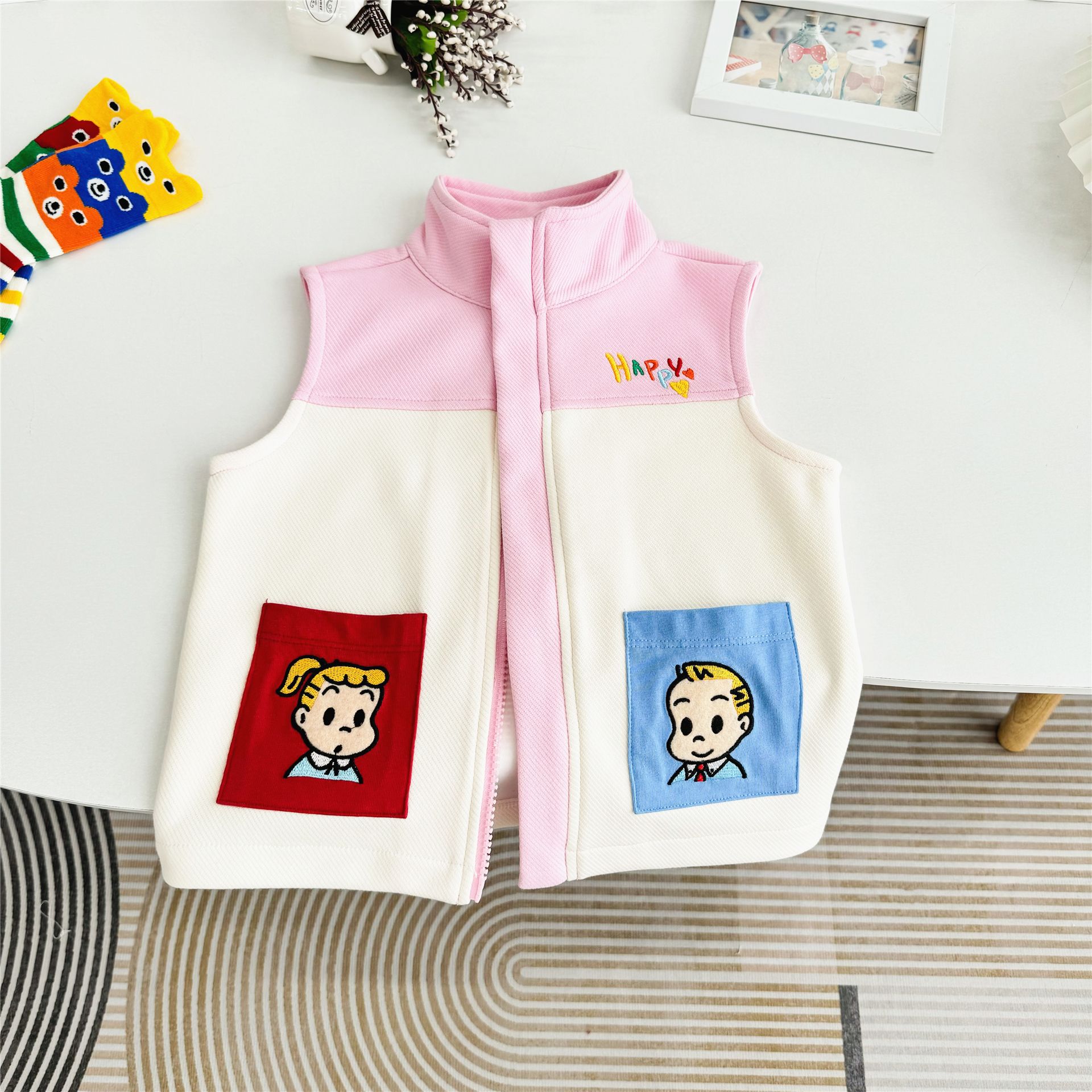 어린이 수놓은 조끼 하라다 어깨 24 가을 새 민소매 조끼 자수 어린이 캐주얼 아우터 5062