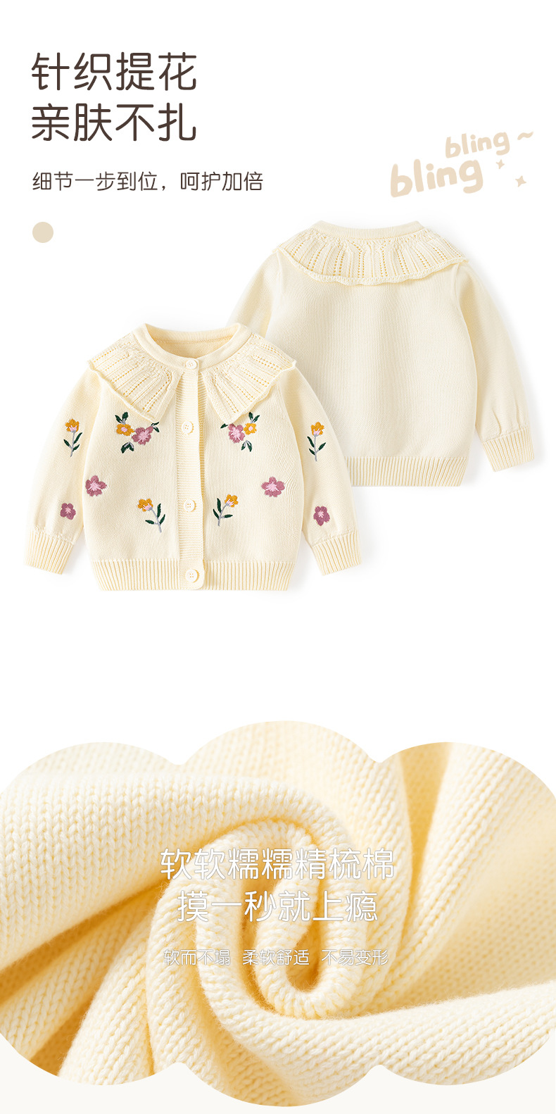 작은 꽃무늬 봄가을 숄 달린 귀여운 여아 상의 A급 유아용 가디건 니트 여아 스웨터 코트