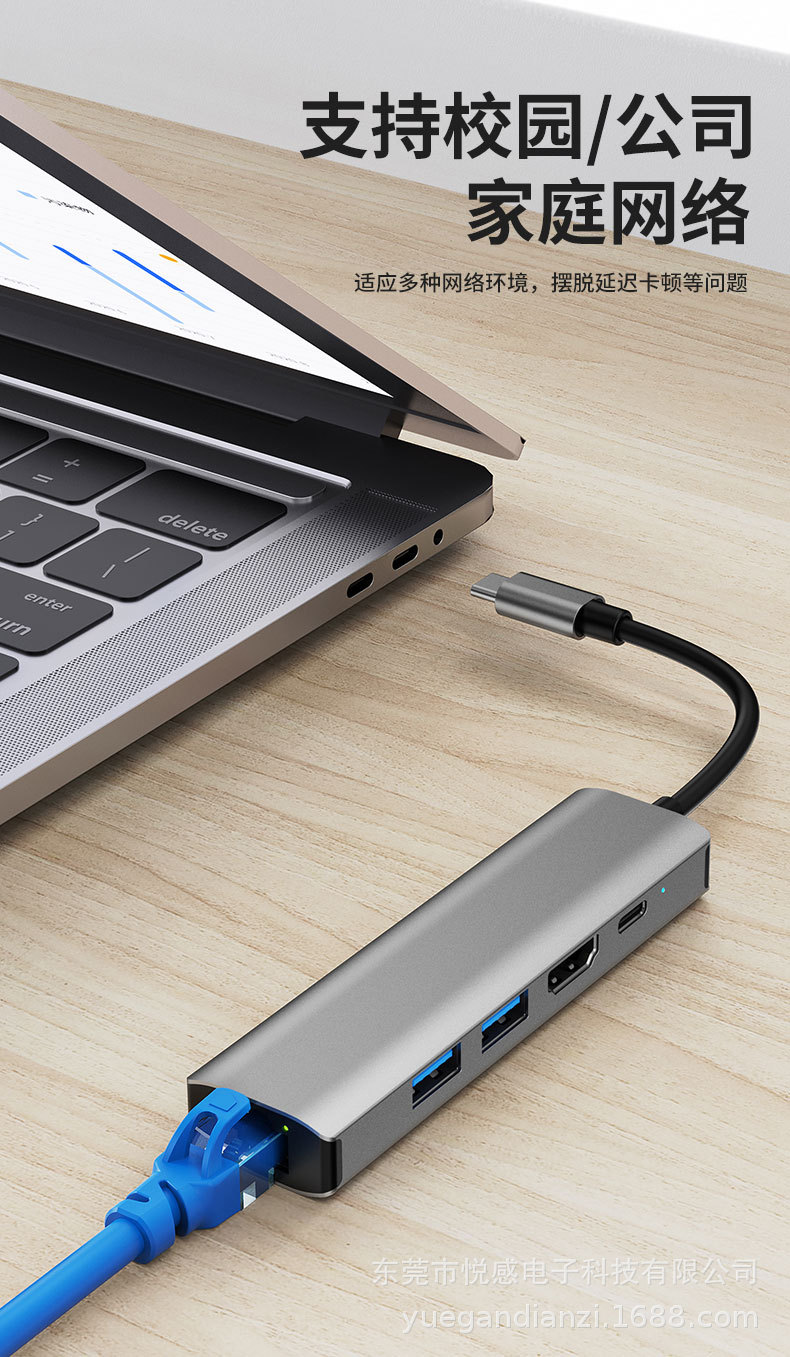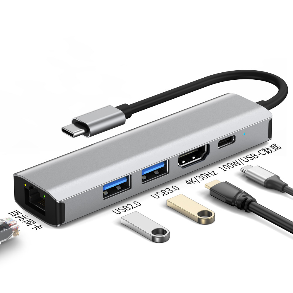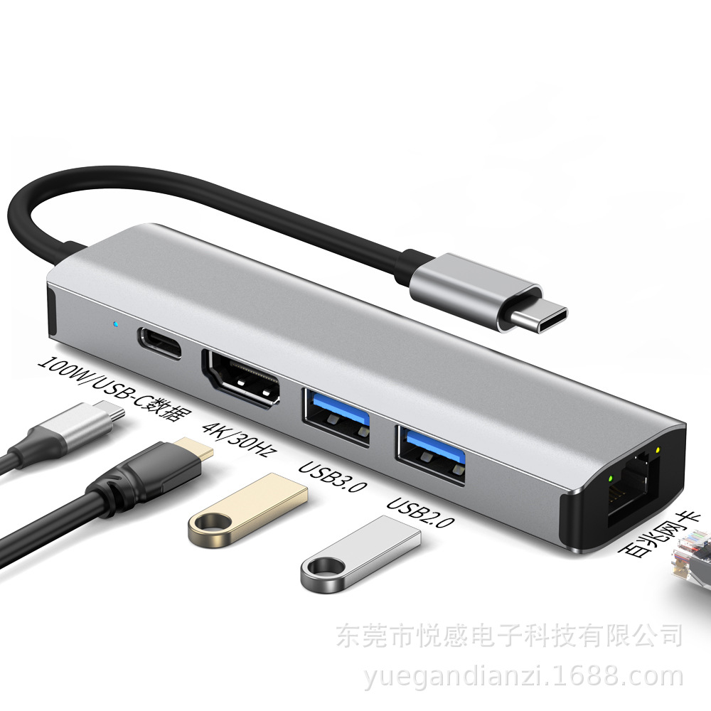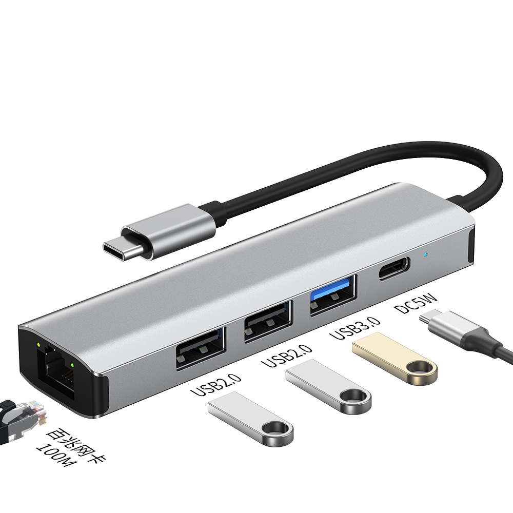 국경 간 usb3.0 허브 rj45 네트워크 카드 확장 독 typec 노트북 컨버터 5-in -1 허브