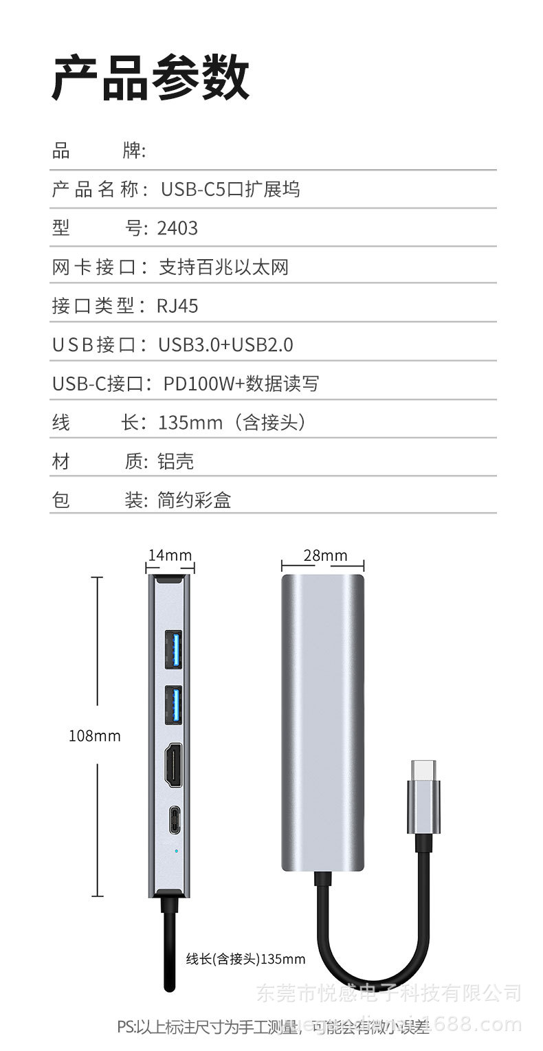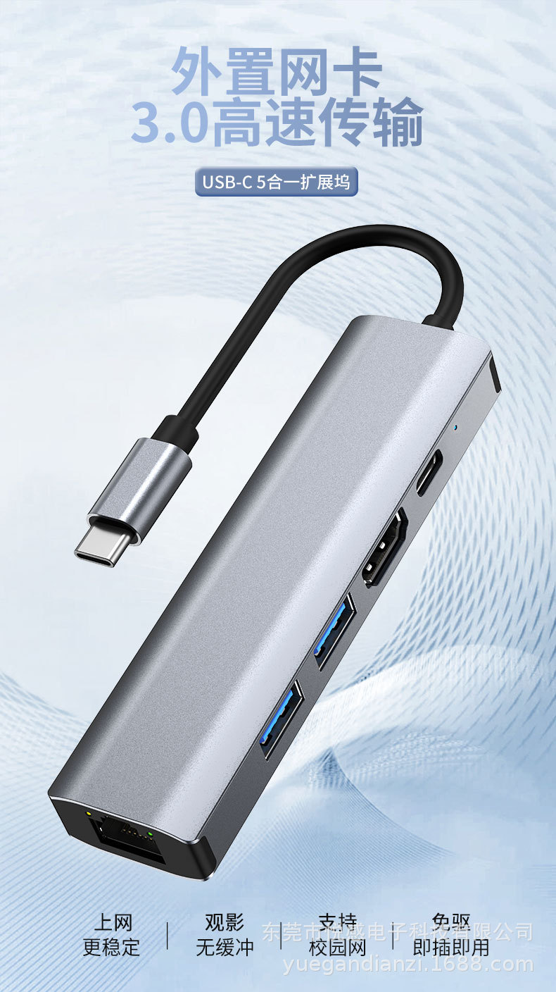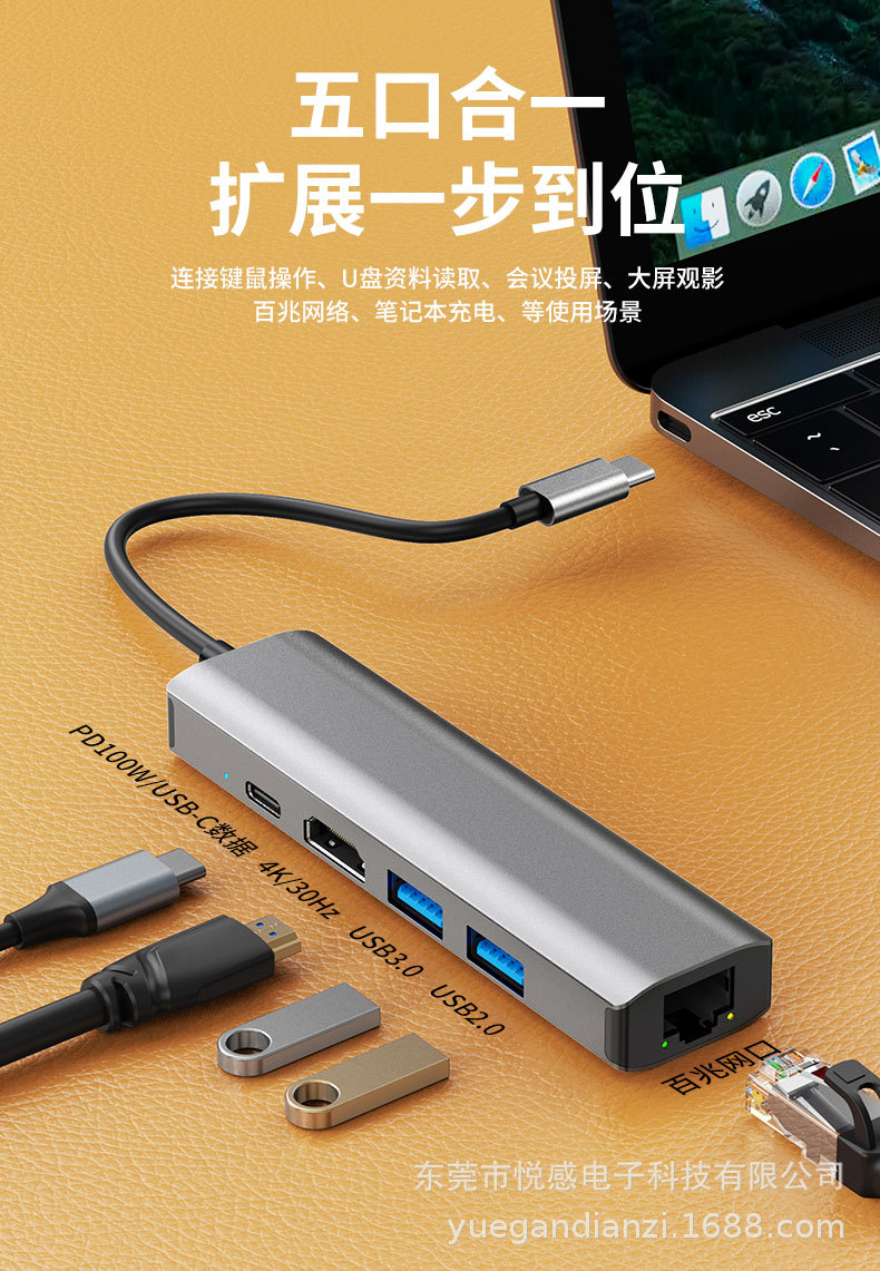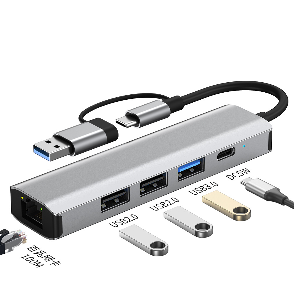국경 간 usb3.0 허브 rj45 네트워크 카드 확장 독 typec 노트북 컨버터 5-in -1 허브