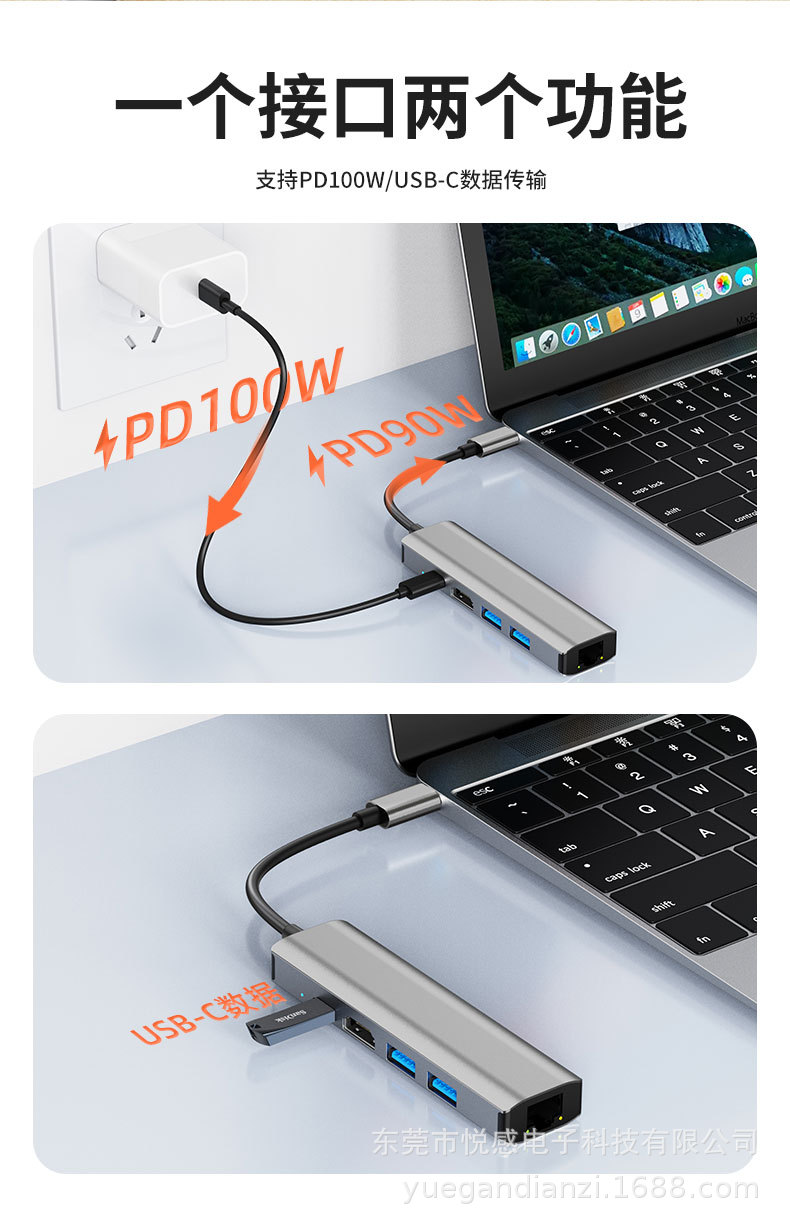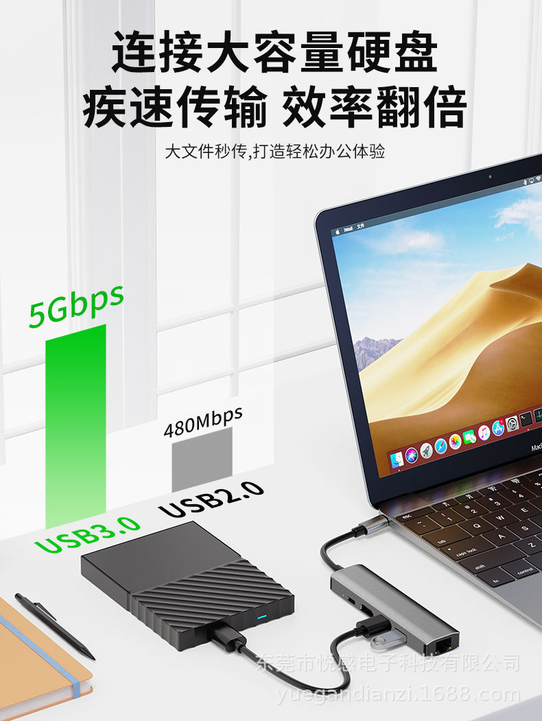 국경 간 usb3.0 허브 rj45 네트워크 카드 확장 독 typec 노트북 컨버터 5-in -1 허브스토어 가기