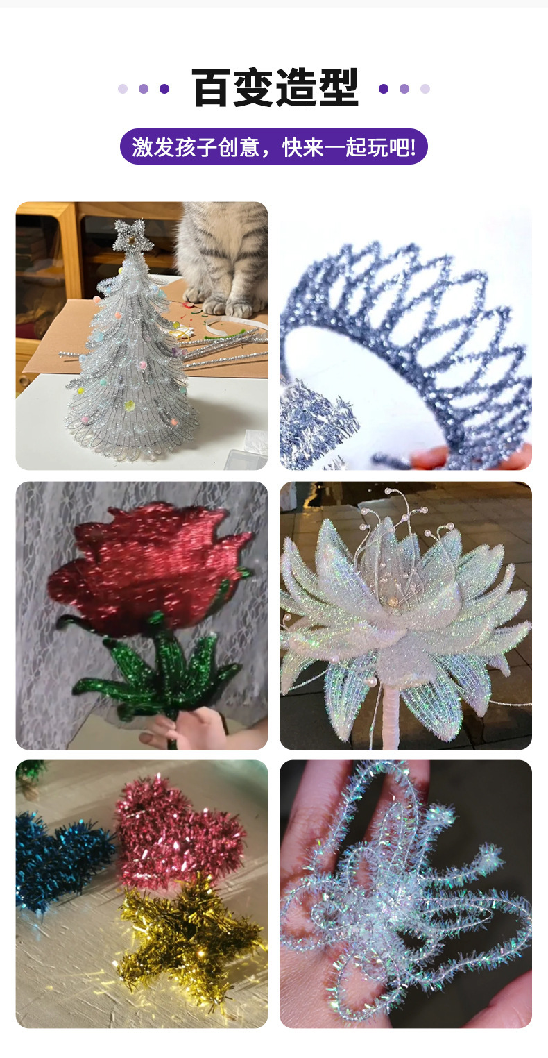 제조업체 어린이 수제 DIY 꽃다발 장난감 재료 패키지 다채로운 모직 섬유, 모직 루트, 반짝이는 글리터 스틱