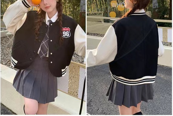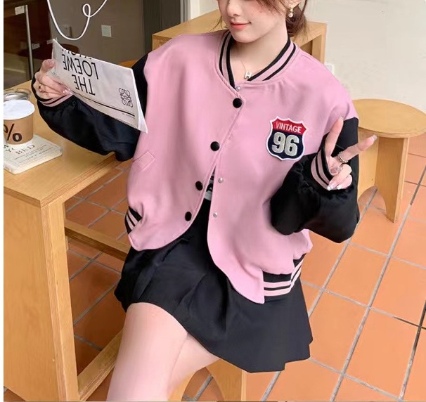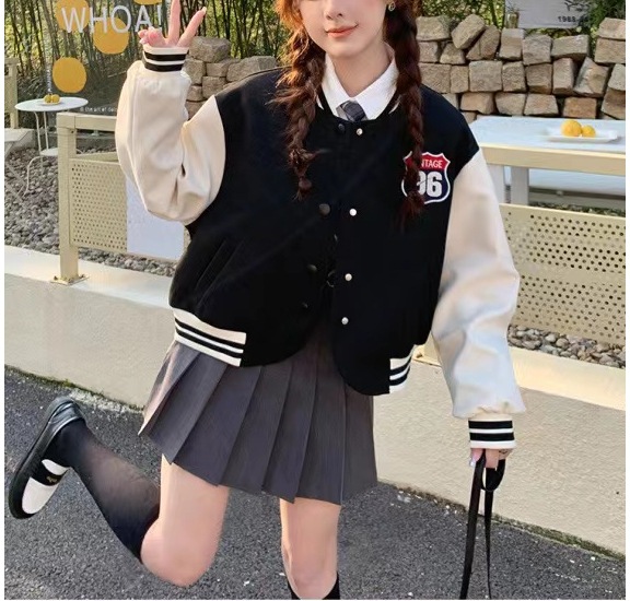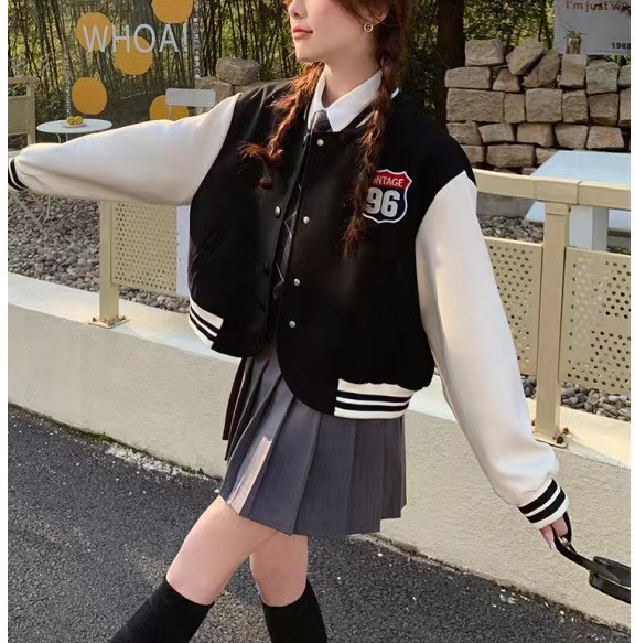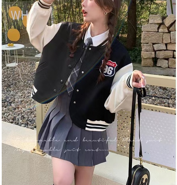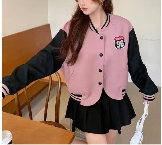2025 봄 가을 신상 캐주얼 컬리지 스타일 배색 야구점퍼 얇은 재킷 여성용 소형 숏 재킷스토어 가기