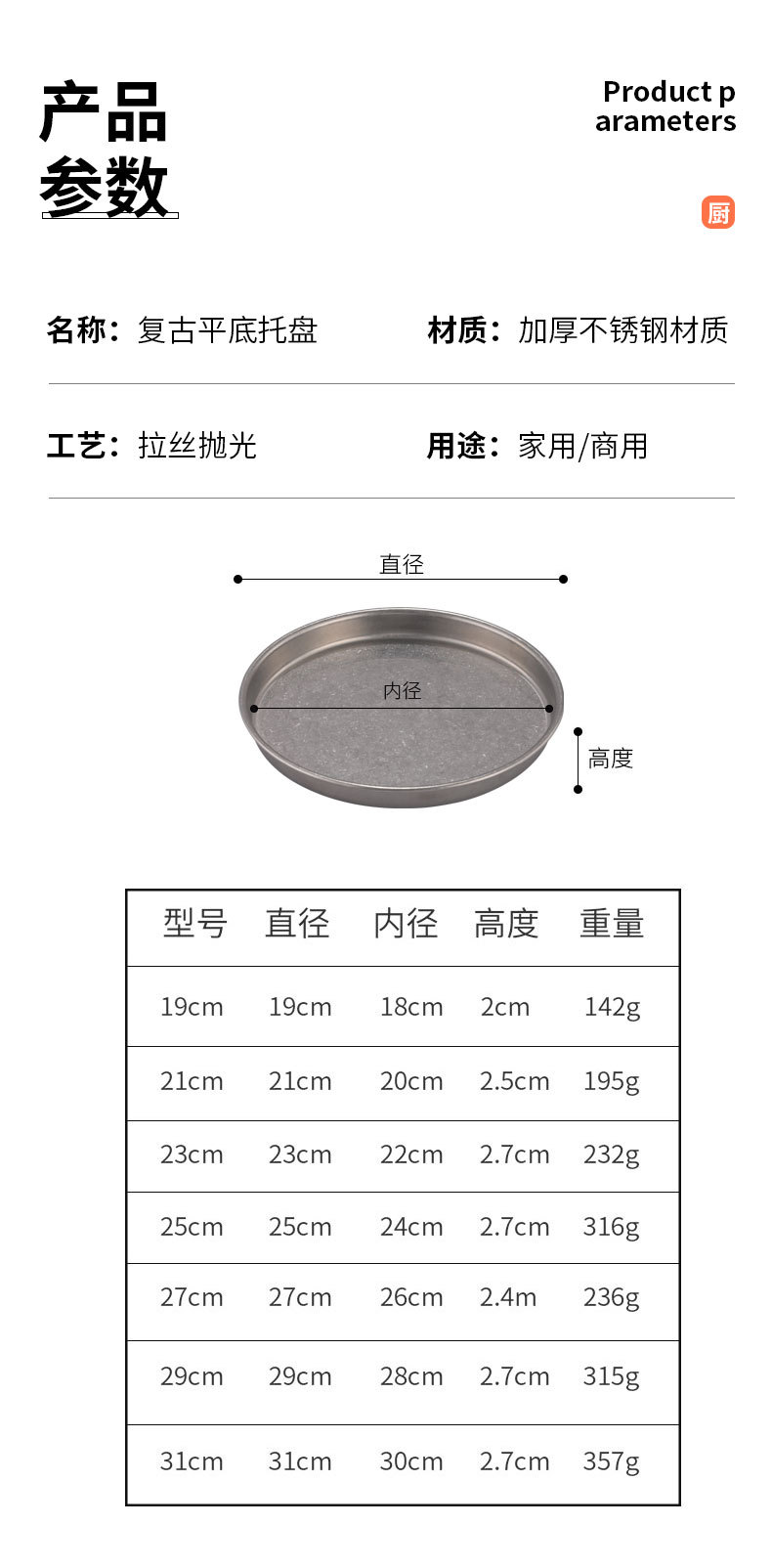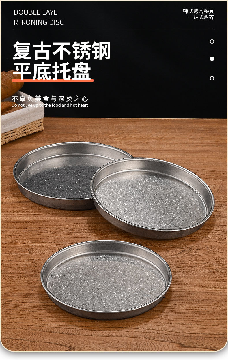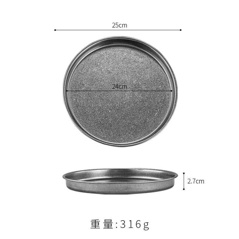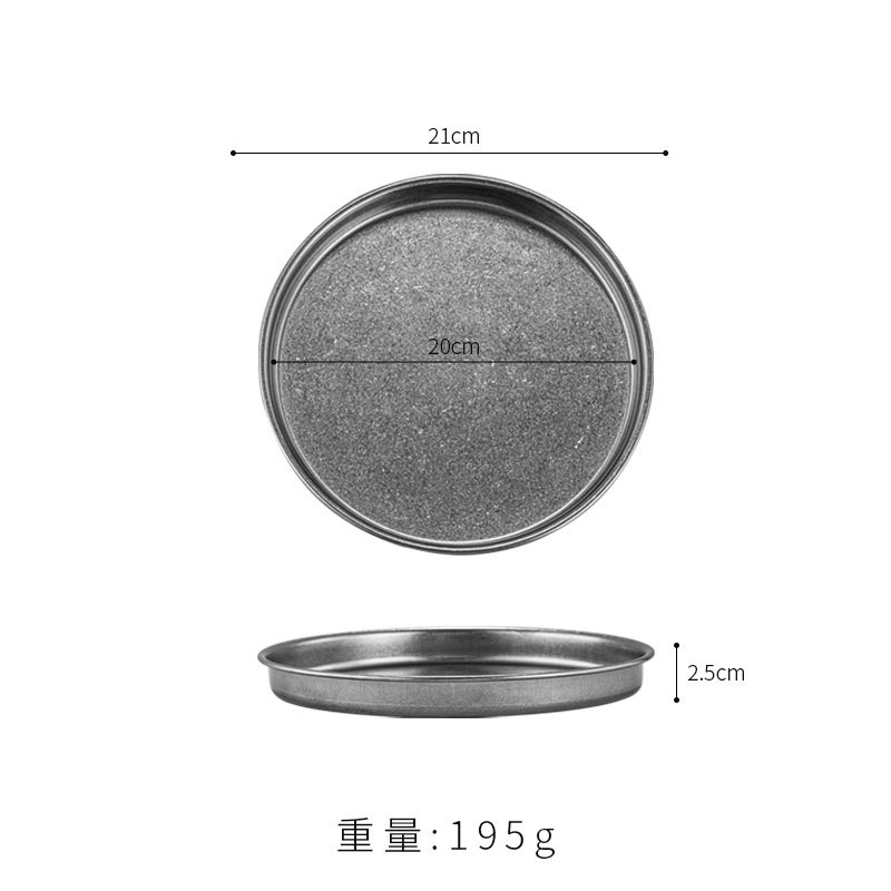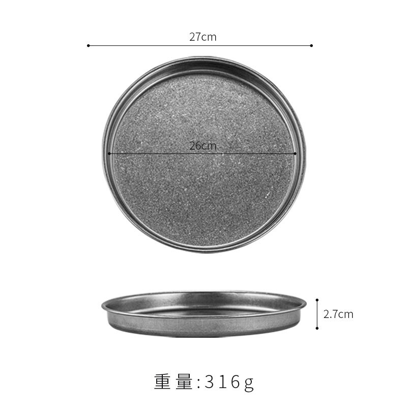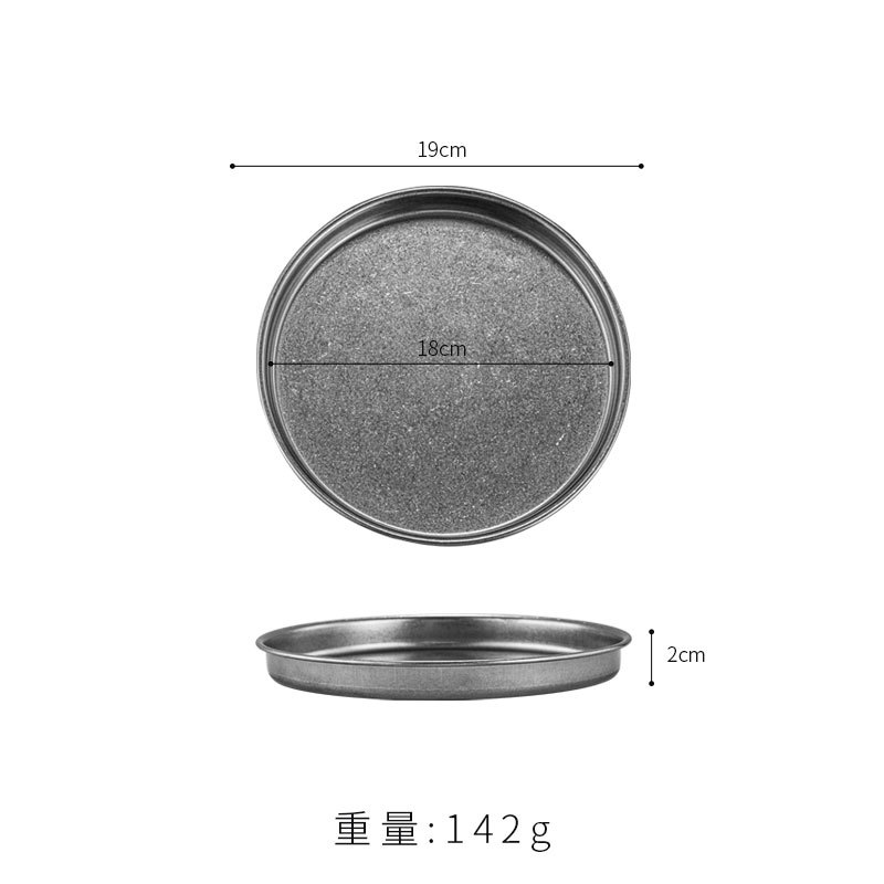 빈티지 오래된 스테인레스 스틸 플레이트 디스크 산업 스타일 커피 숍 트레이 창조적 인 평면 디저트 플레이트 맞춤형 로고