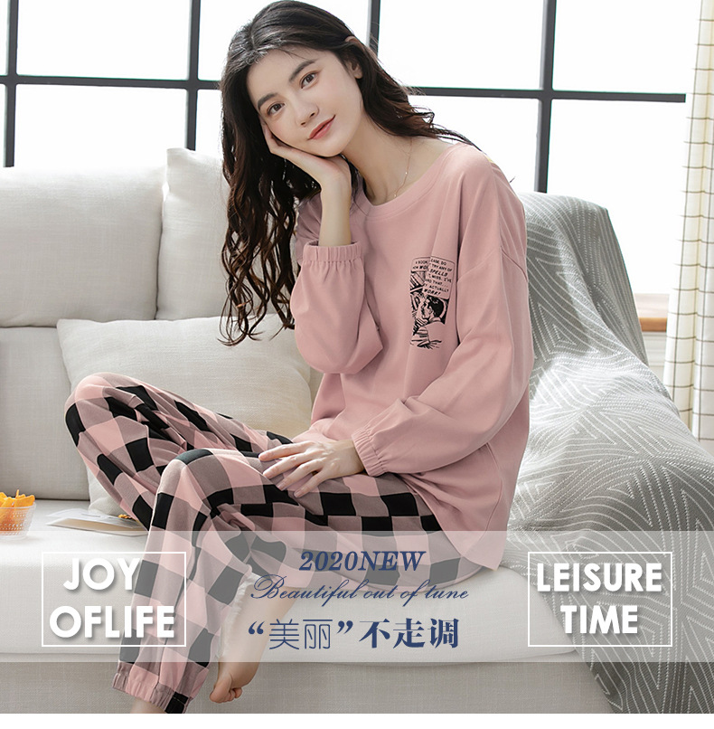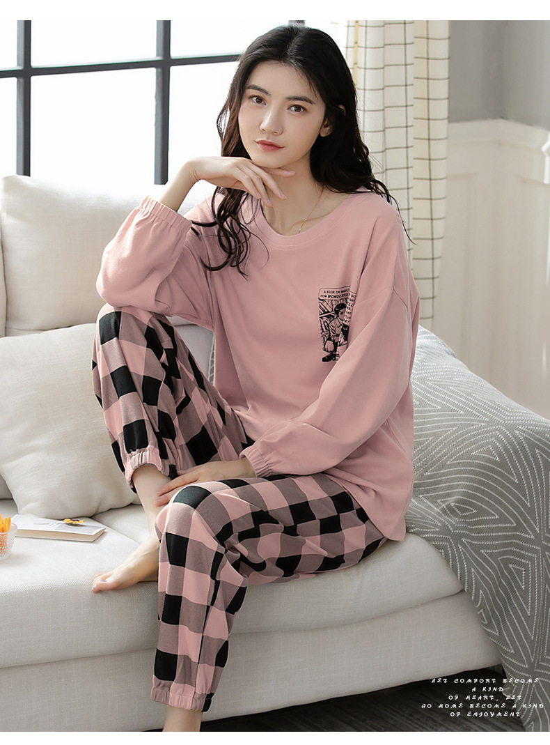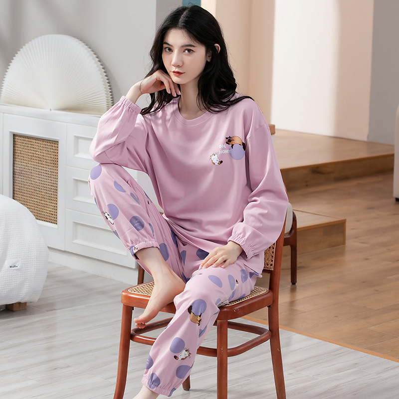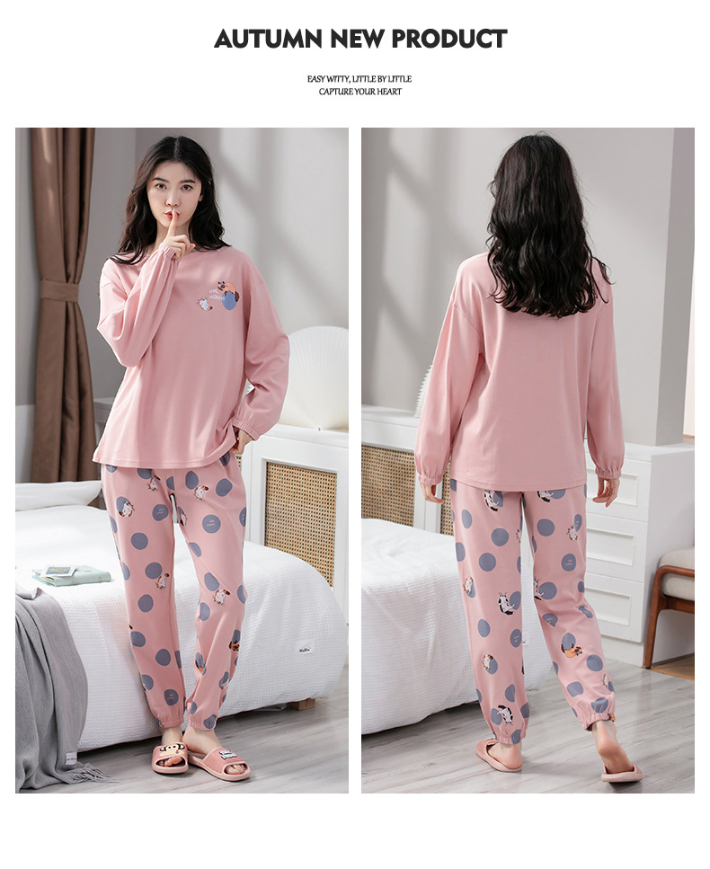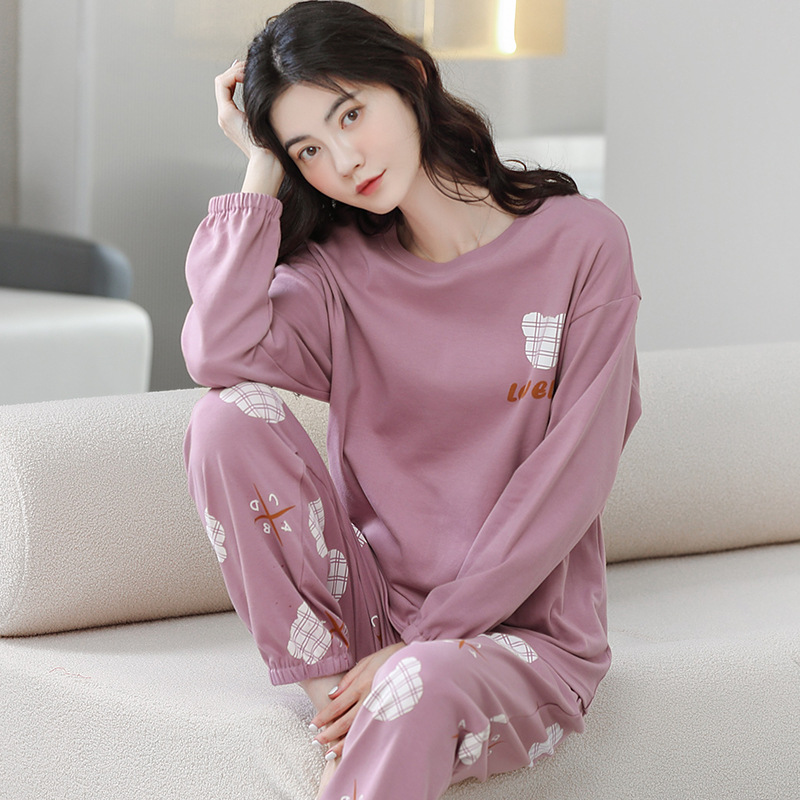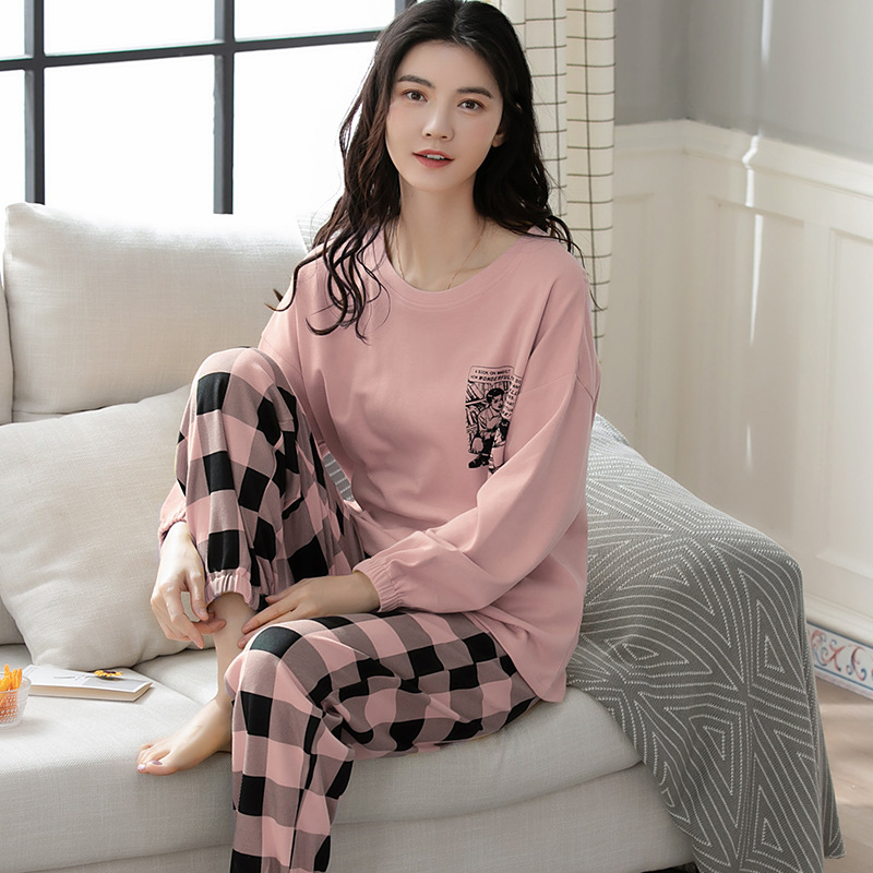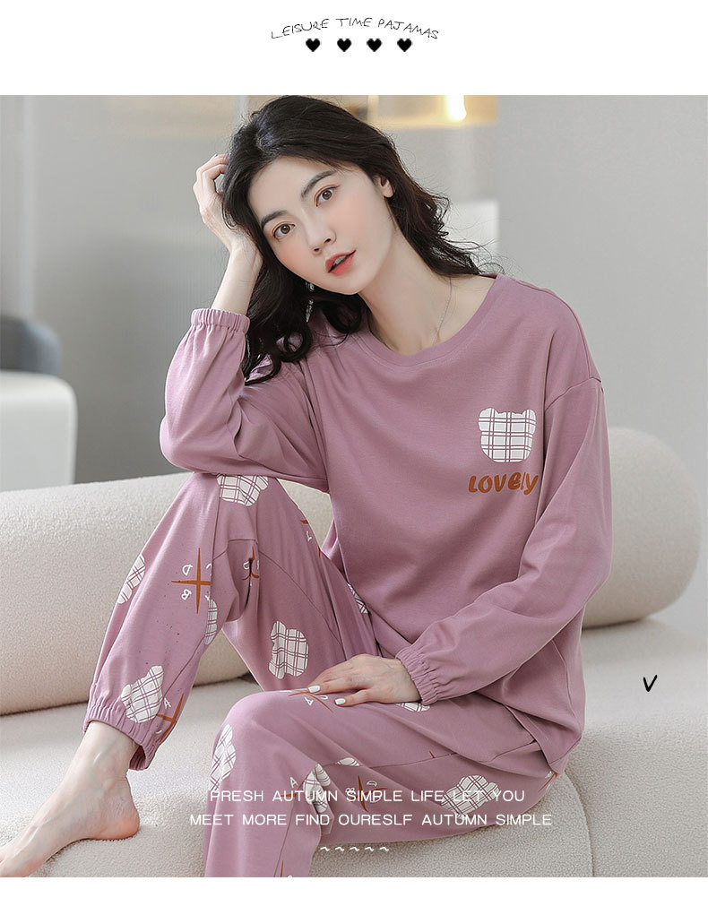 코튼 긴팔 잠옷 여성용 가을 겨울 의류 학생을위한 달콤한 캐주얼 플러스 사이즈 코튼 홈 의류 투피스 세트스토어 가기