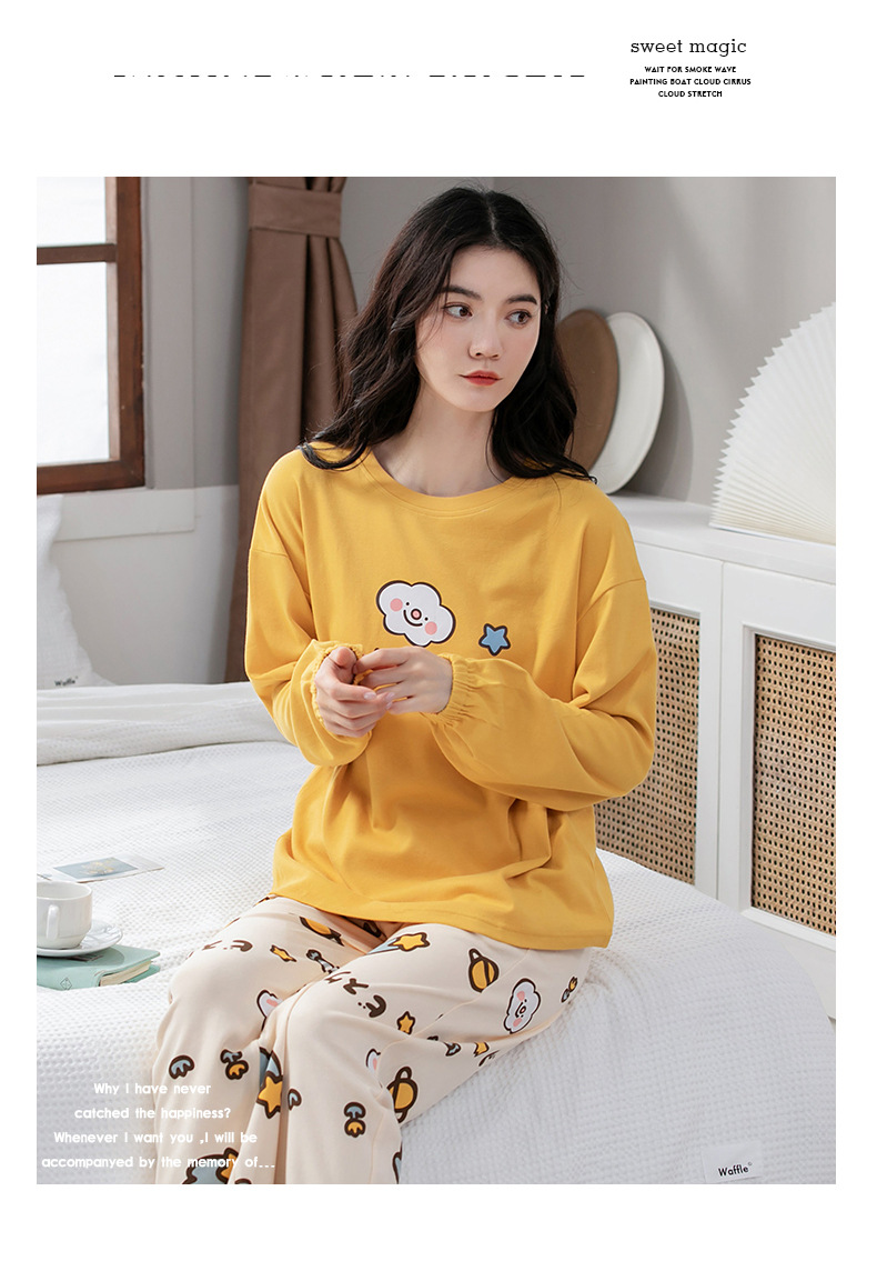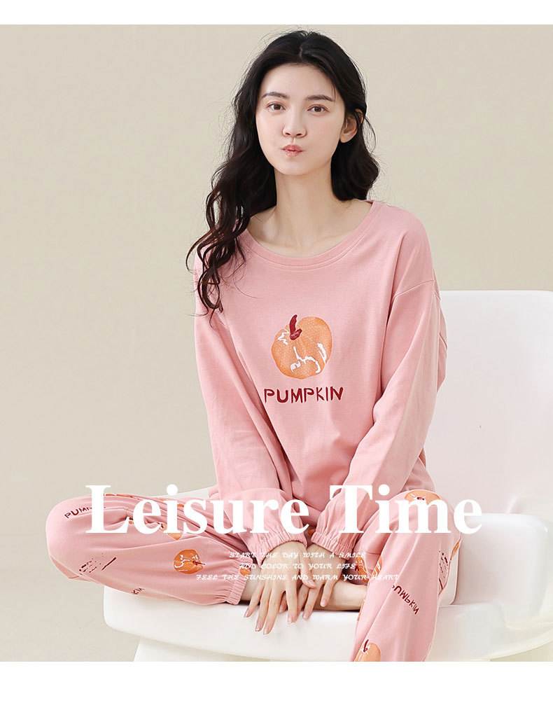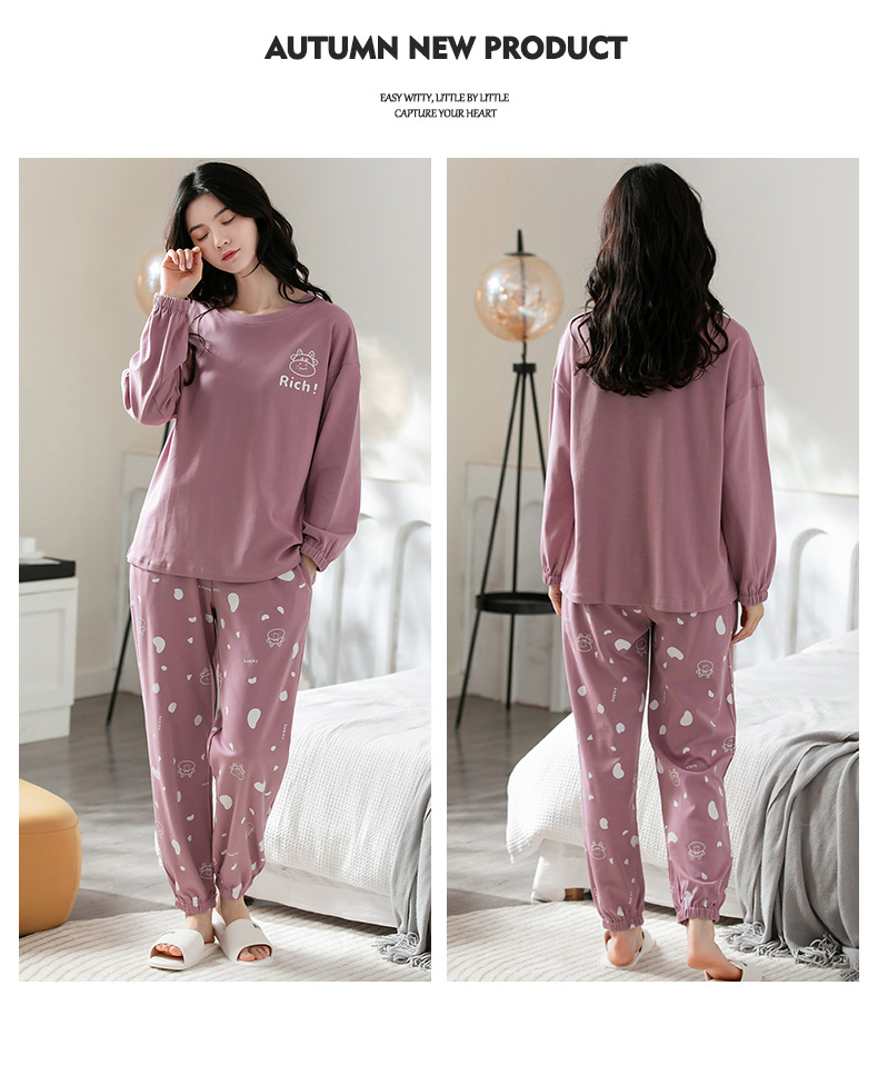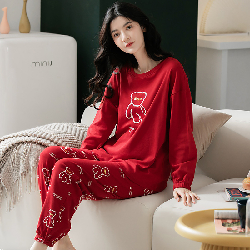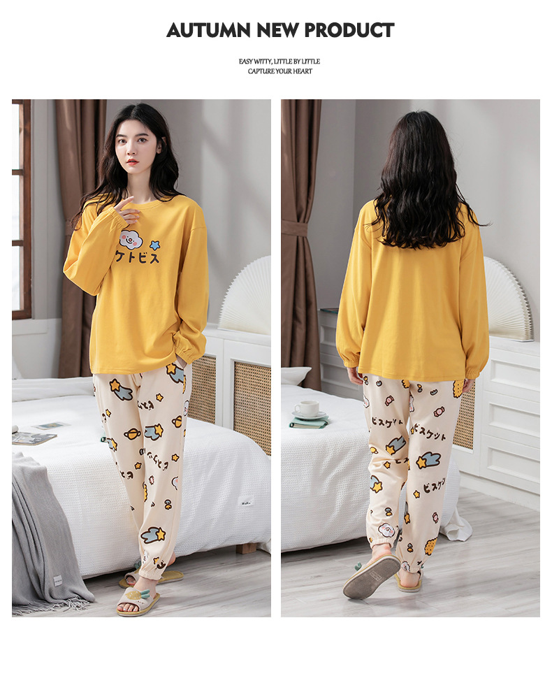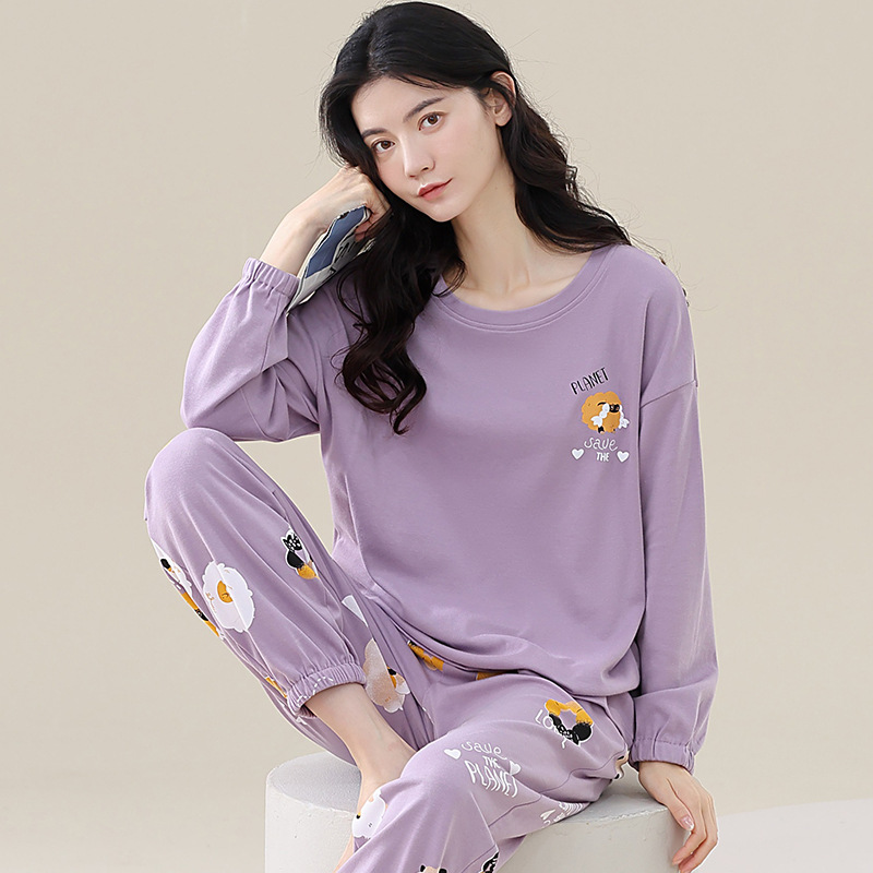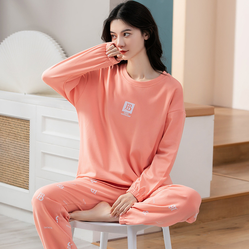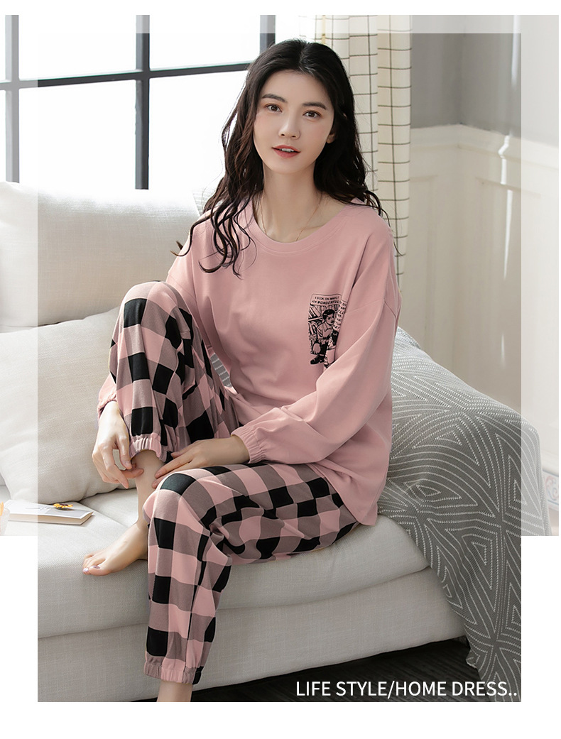 코튼 긴팔 잠옷 여성용 가을 겨울 의류 학생을위한 달콤한 캐주얼 플러스 사이즈 코튼 홈 의류 투피스 세트스토어 가기