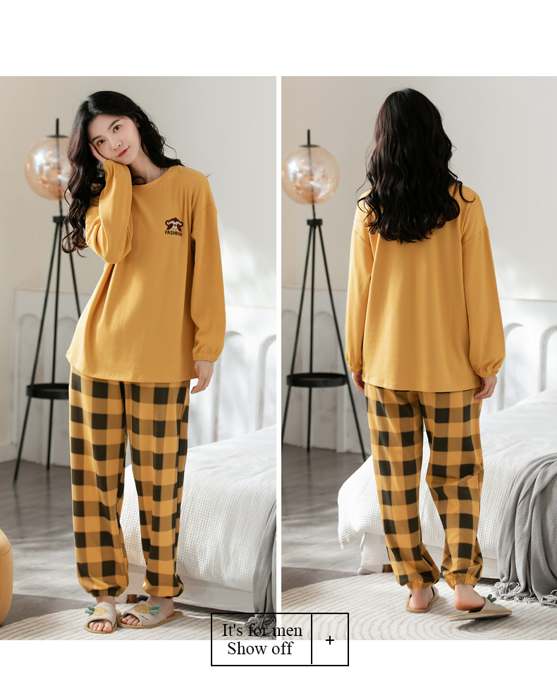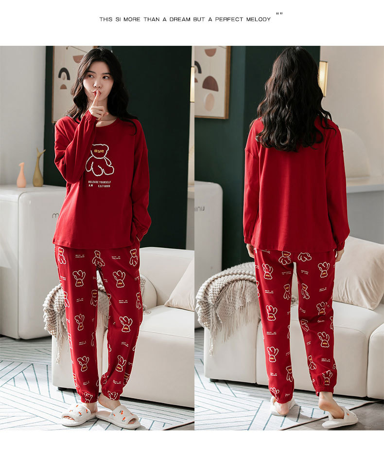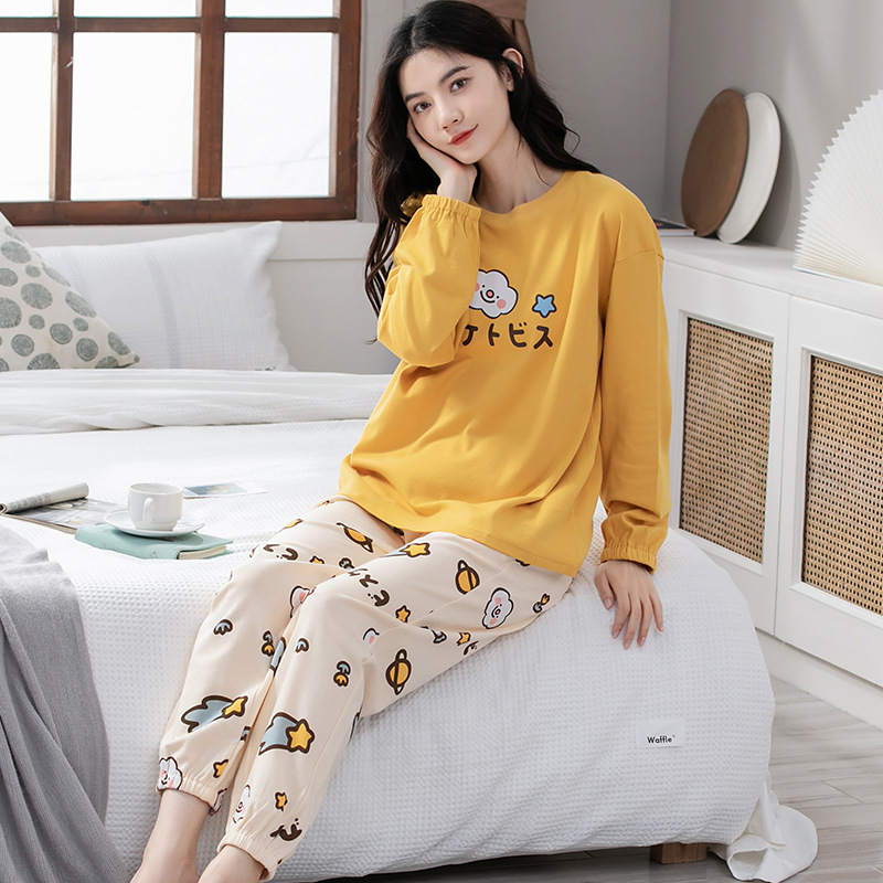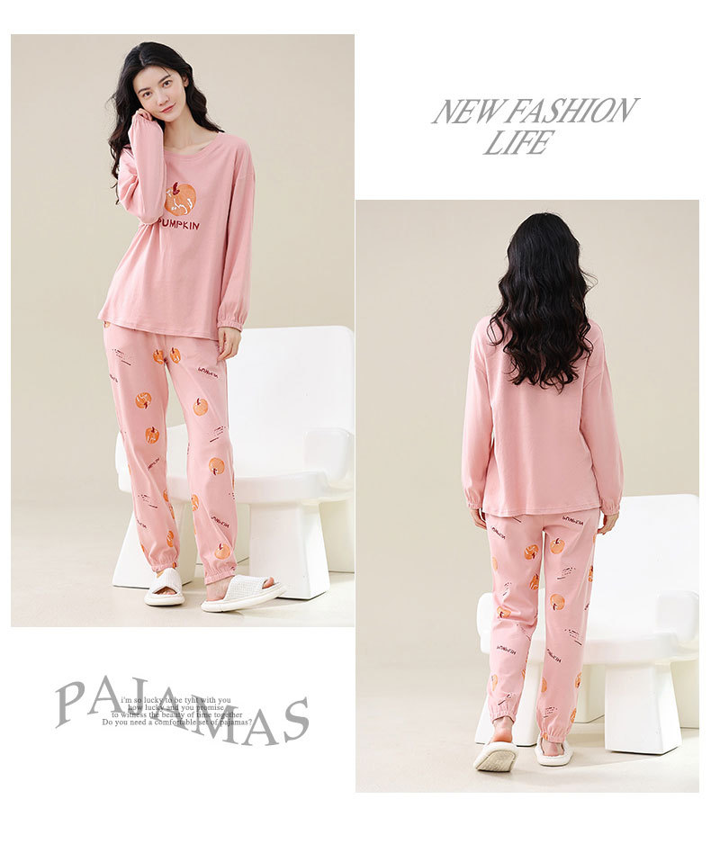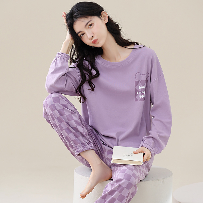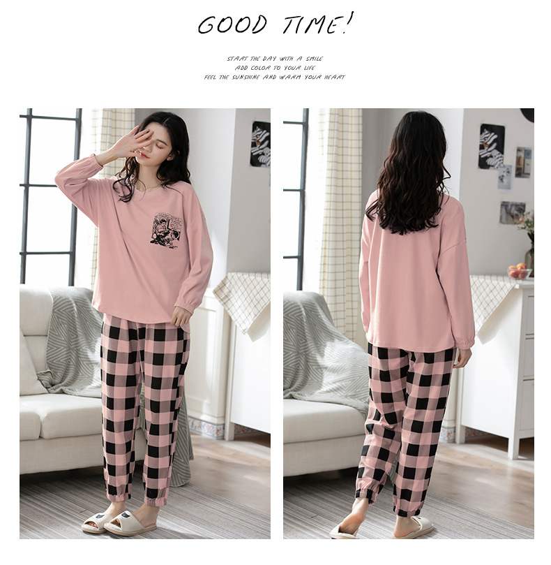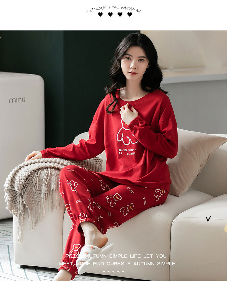 코튼 긴팔 잠옷 여성용 가을 겨울 의류 학생을위한 달콤한 캐주얼 플러스 사이즈 코튼 홈 의류 투피스 세트스토어 가기