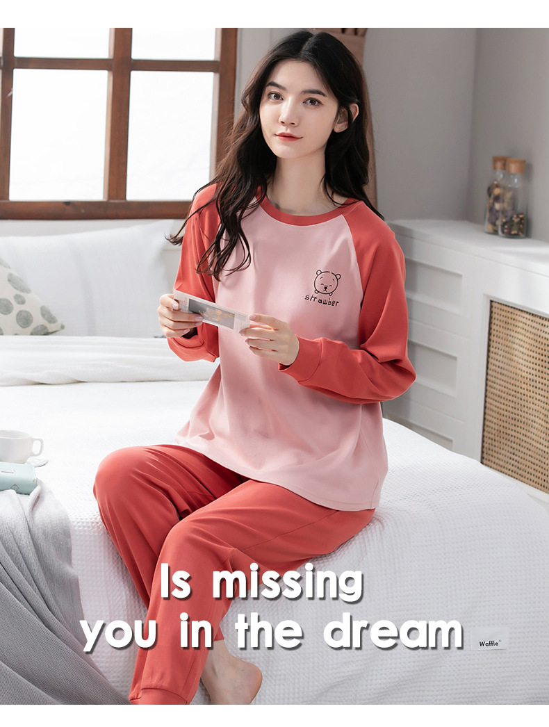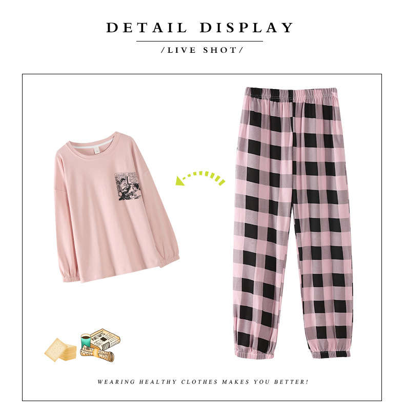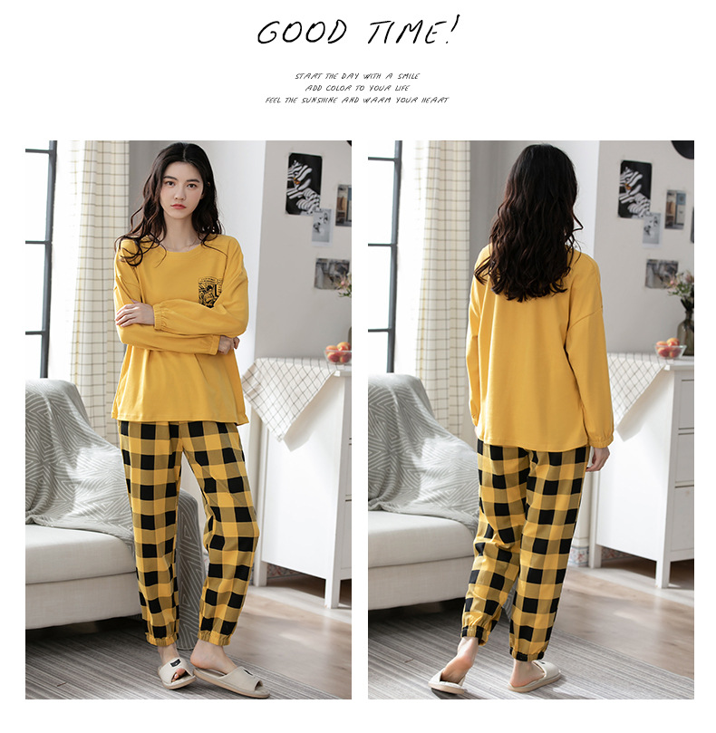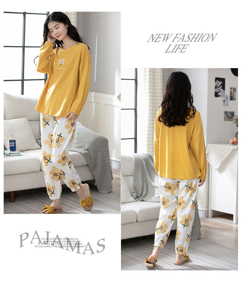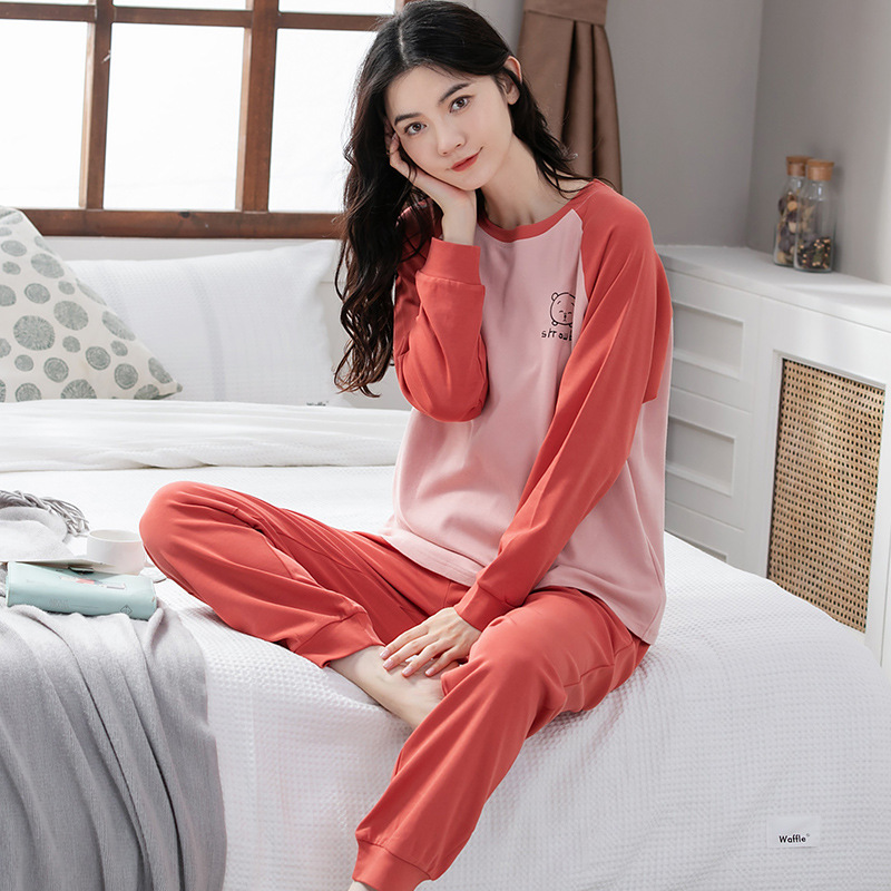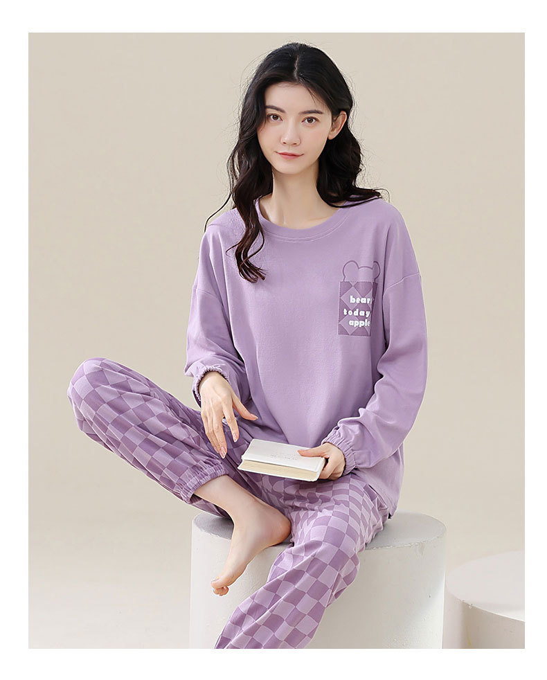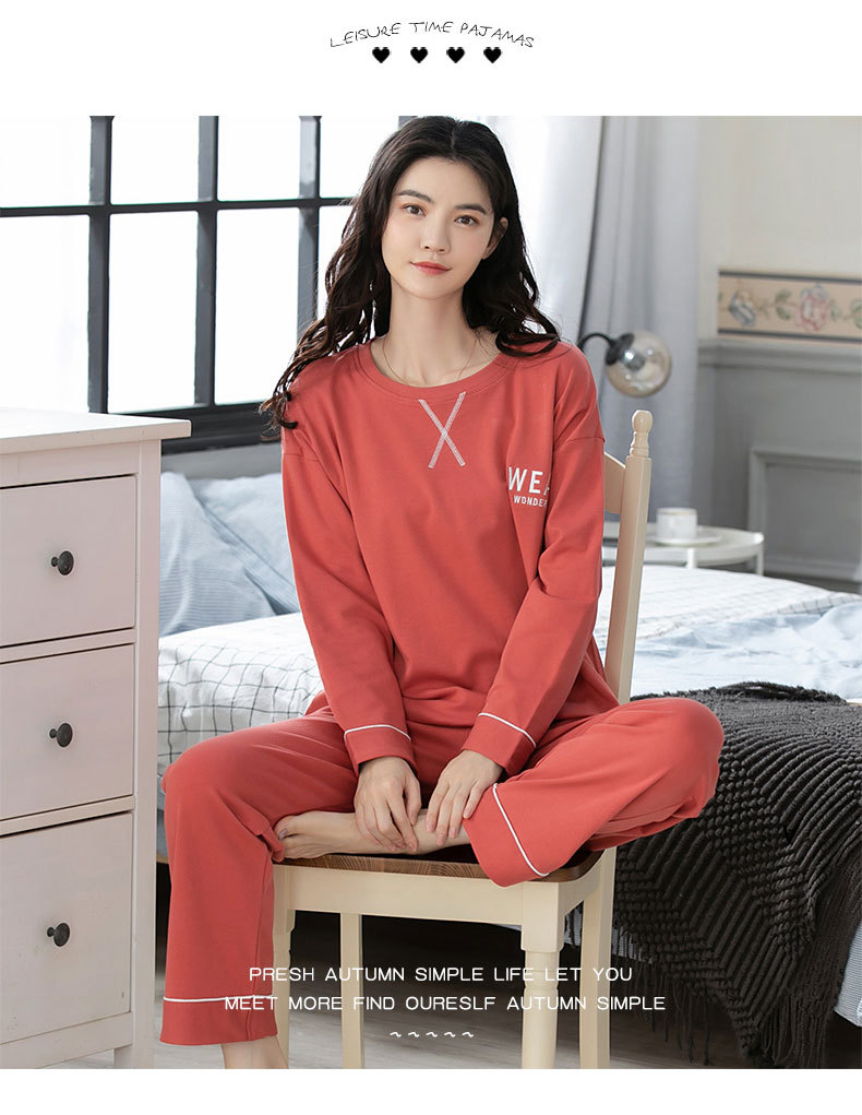 코튼 긴팔 잠옷 여성용 가을 겨울 의류 학생을위한 달콤한 캐주얼 플러스 사이즈 코튼 홈 의류 투피스 세트스토어 가기