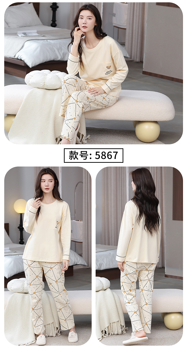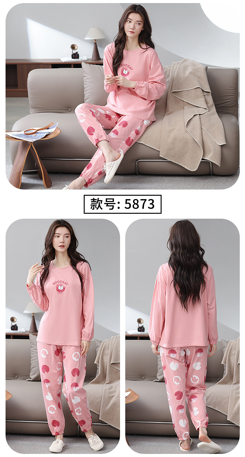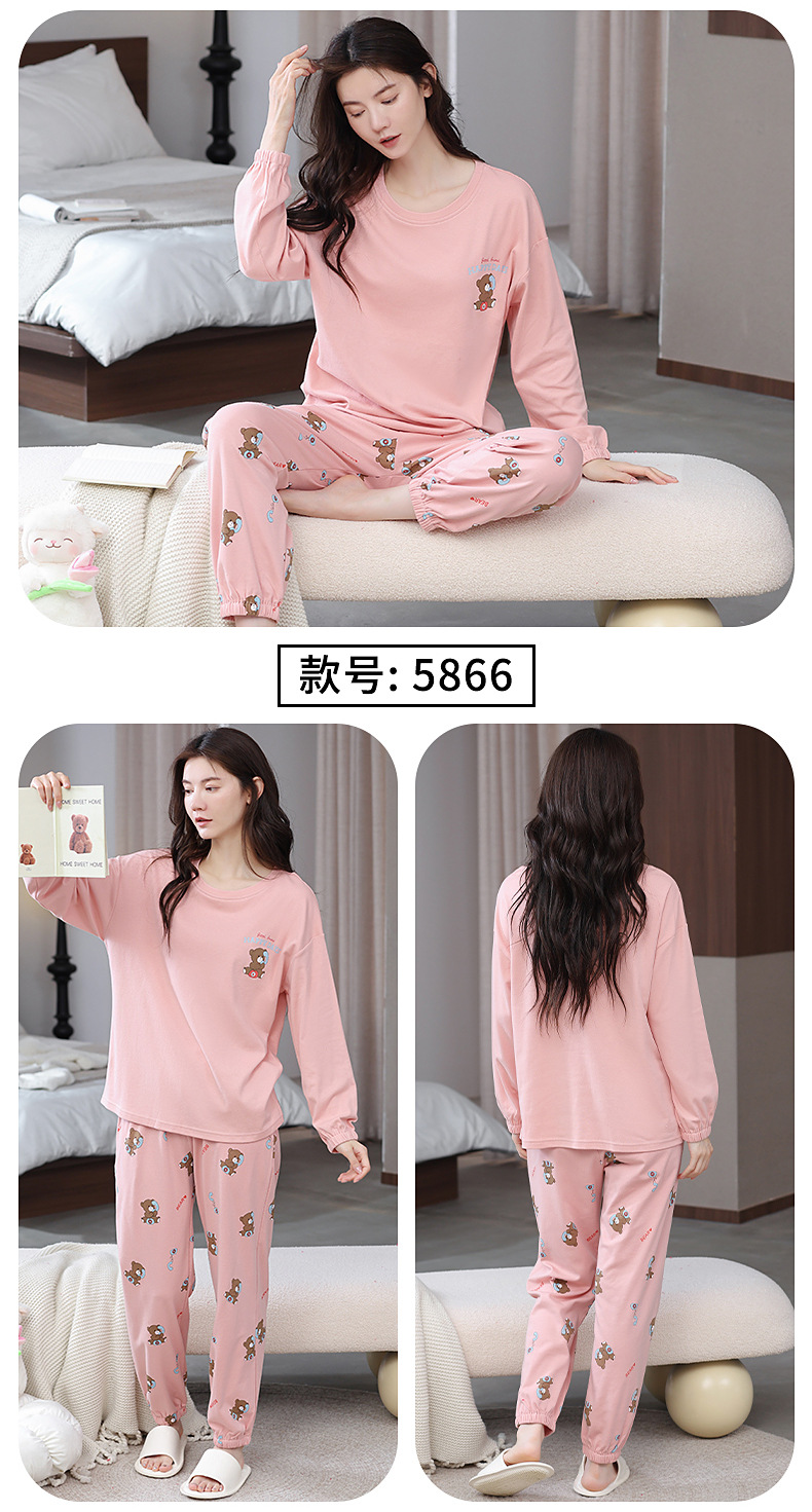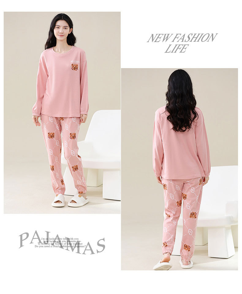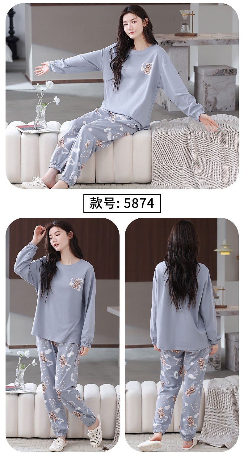 코튼 긴팔 잠옷 여성용 가을 겨울 의류 학생을위한 달콤한 캐주얼 플러스 사이즈 코튼 홈 의류 투피스 세트스토어 가기