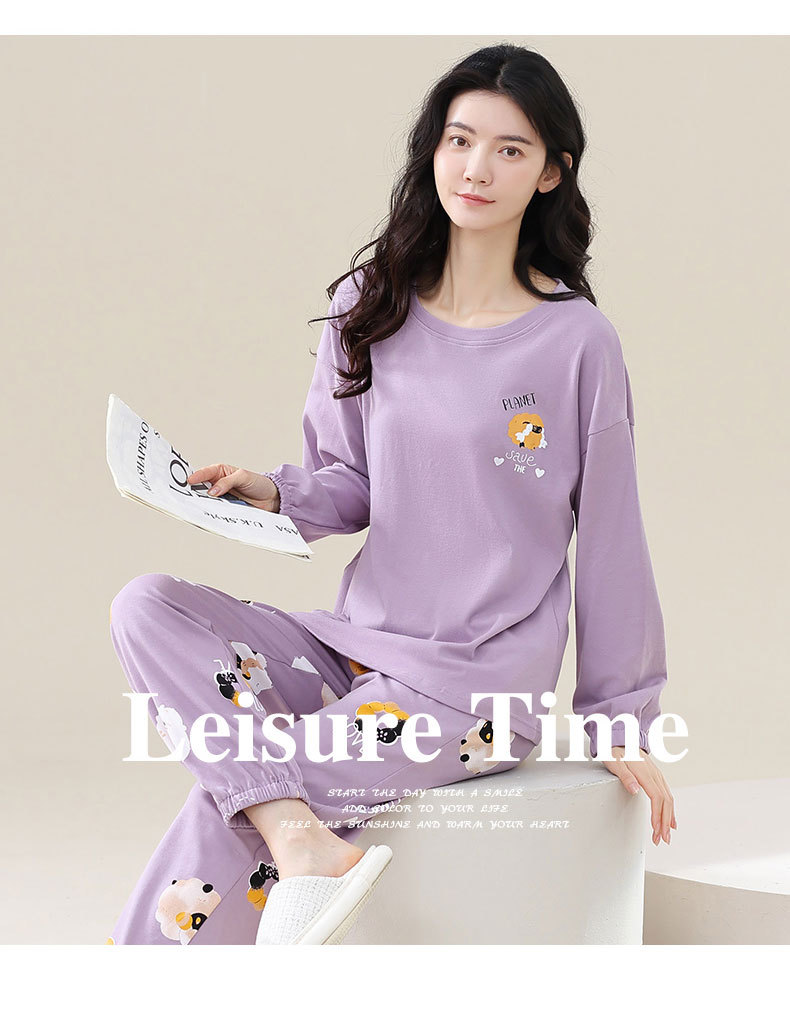 코튼 긴팔 잠옷 여성용 가을 겨울 의류 학생을위한 달콤한 캐주얼 플러스 사이즈 코튼 홈 의류 투피스 세트