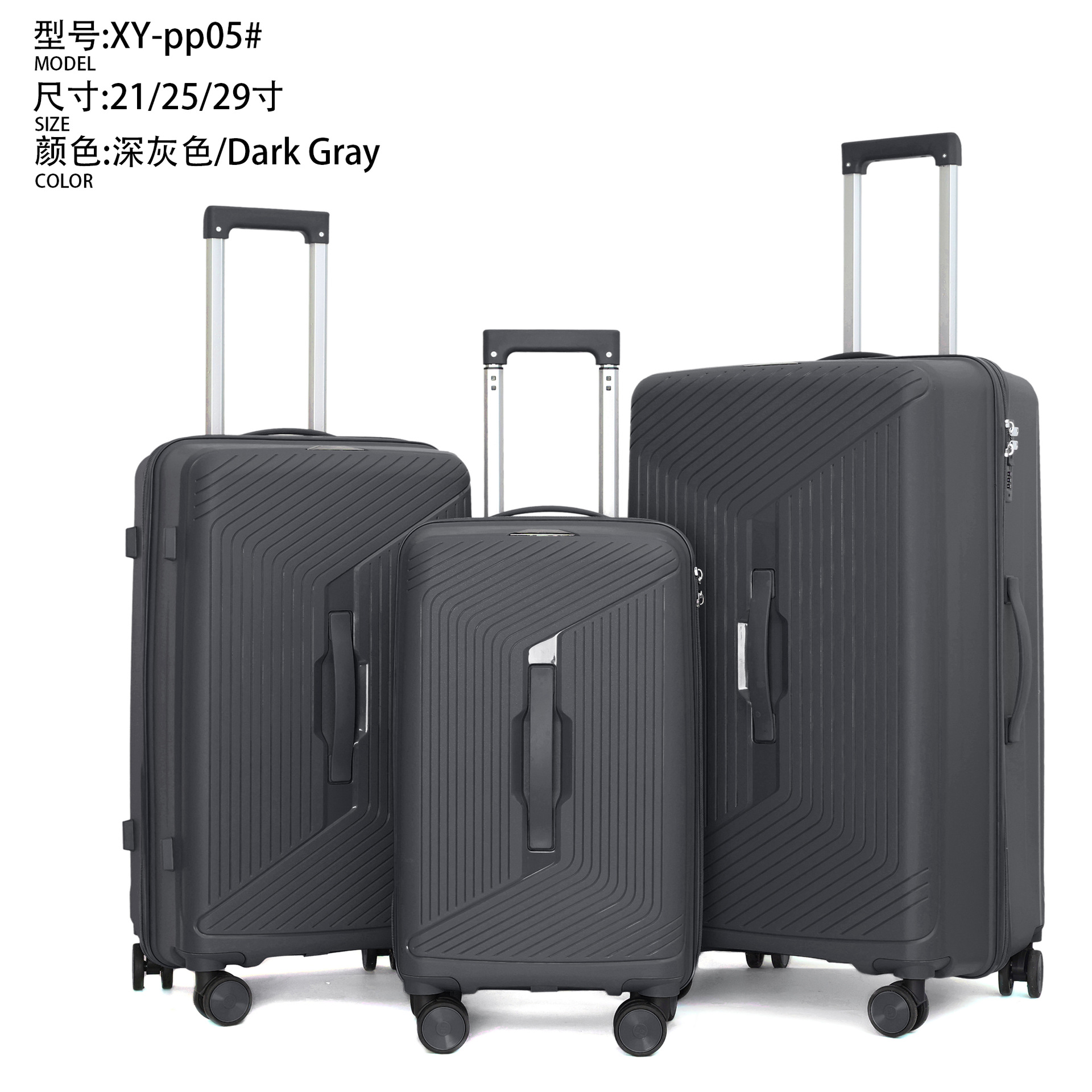 대외 무역 제조업체는 국경 간 PP 수하물 케이스 3 종 세트 탑승 상자 비밀번호 수하물 디자인 ogo를 직접 판매합니다.