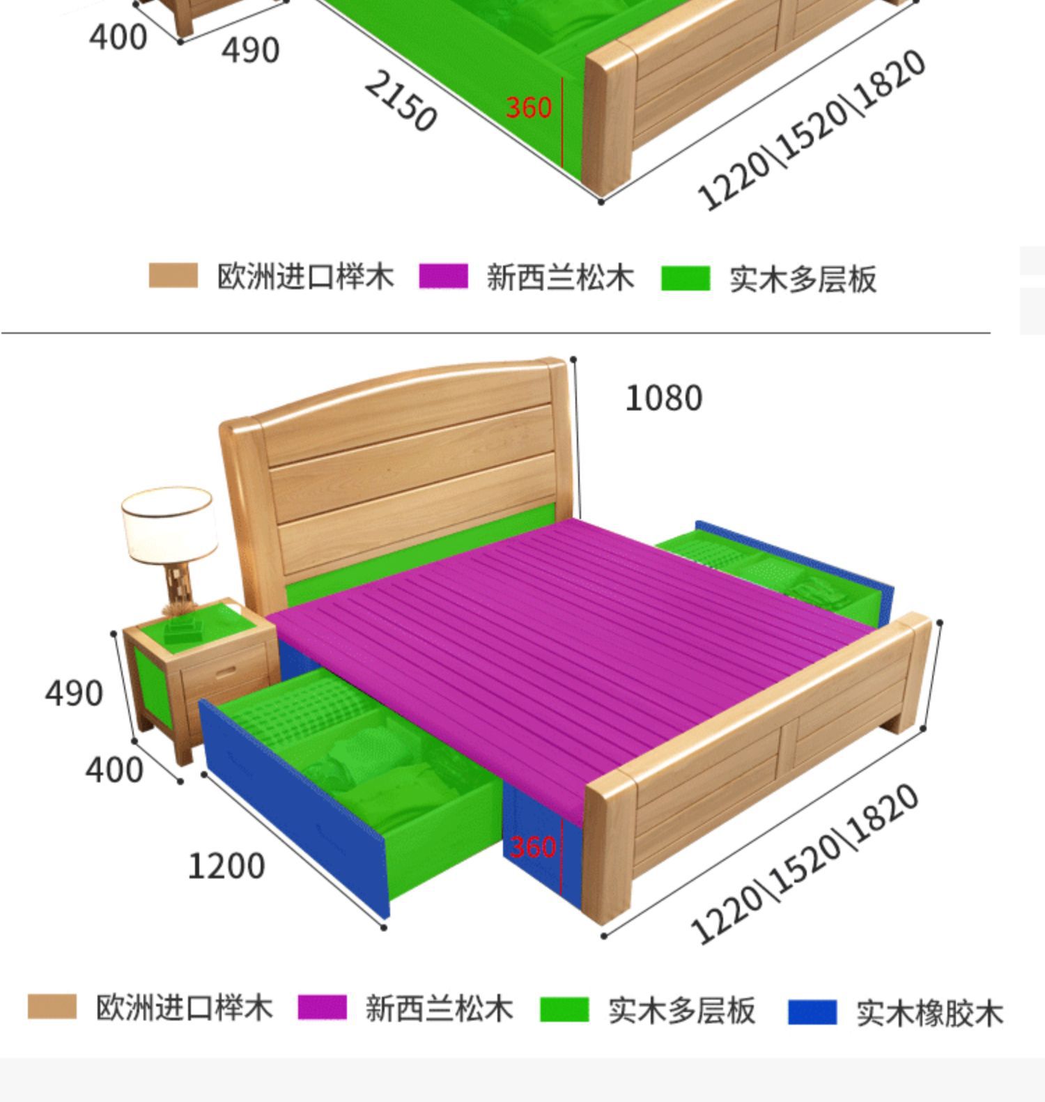 너도밤 나무 단단한 침대 높은 상자 침대 1 미터 2 어린이 침대 더블 침대 간단한 1.8 미터 1.5 마스터 침실 현대 공장 직접 판매스토어 가기