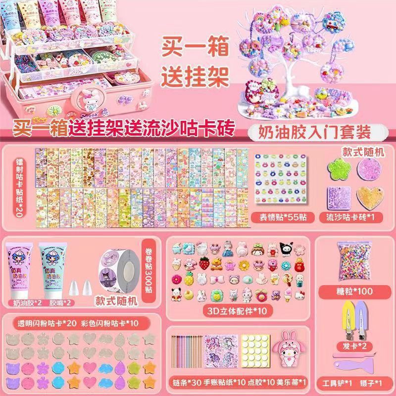 [크림 젤 구오 카드 퀵 샌드 벽돌 세트] 디럭스 소녀 어린이 스티커 구어 카드 장난감 3 층 보관 상자