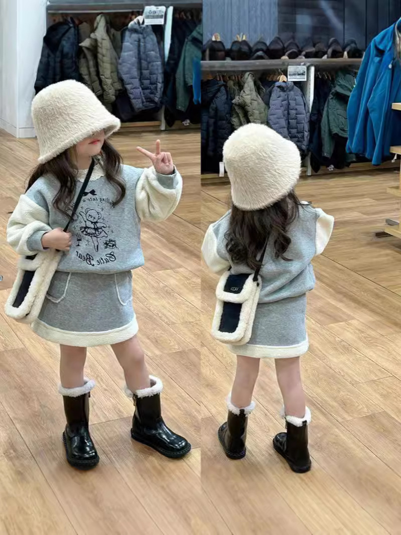 소녀 세트 가을과 겨울 새로운 외국 스타일의 레이스 칼라 기모 스웨터 스커트 2 피스 세트스토어 가기