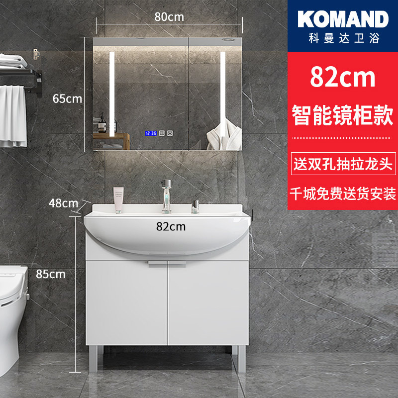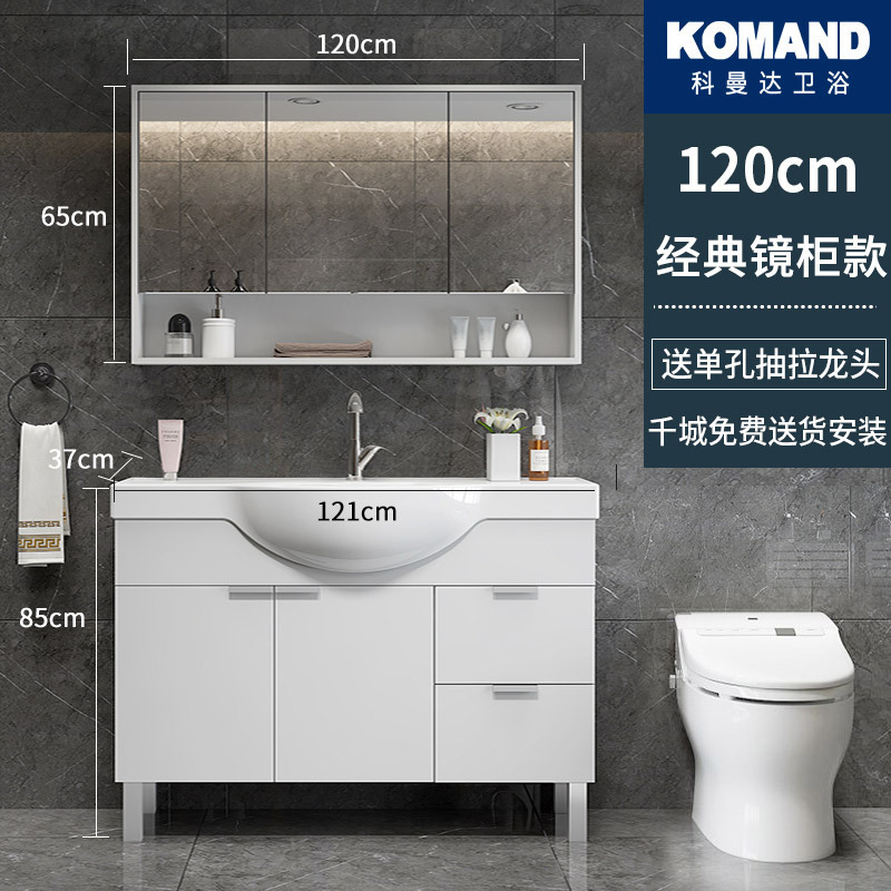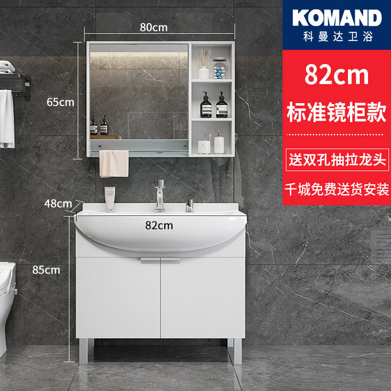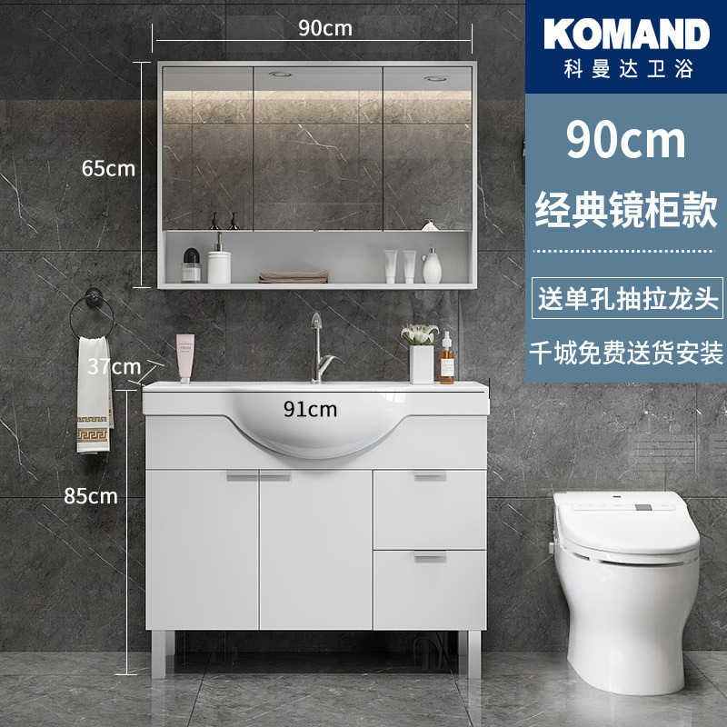 간단한 현대 욕실 캐비닛 조합 흰색 바닥부터 바닥까지 단단한 나무 욕실 캐비닛 좁은 측면 통합 세라믹 큰 배 분지 캐비닛스토어 가기