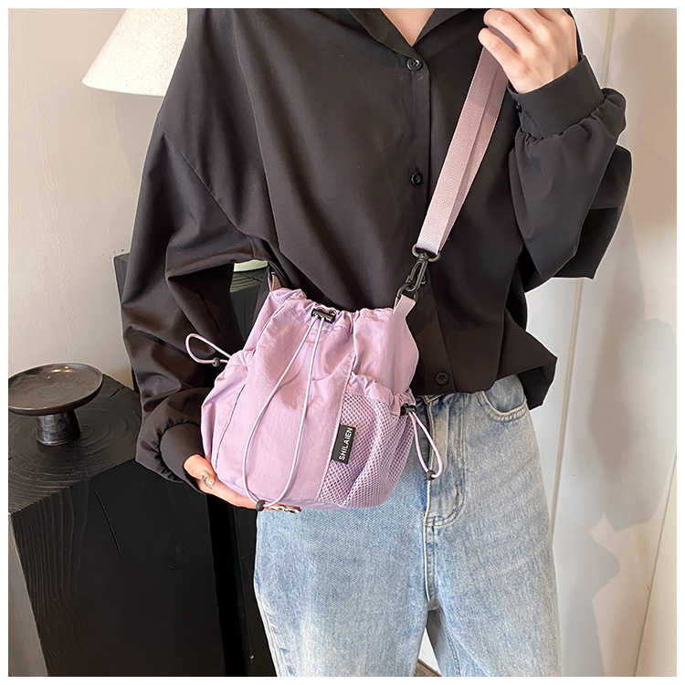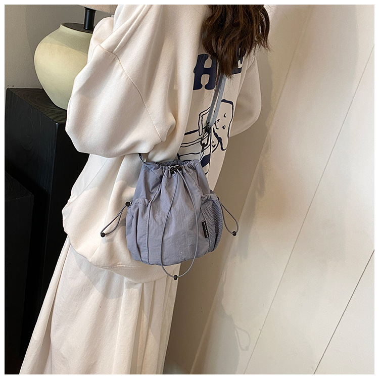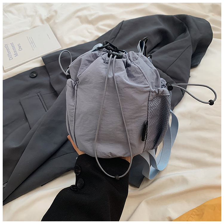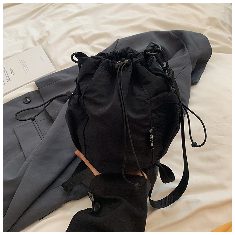 일본 스타일 Ins 틈새 디자인 드래그 스트링 버킷 야외 스포츠 캐주얼 패션 올 매치 나일론 크로스 바디 백