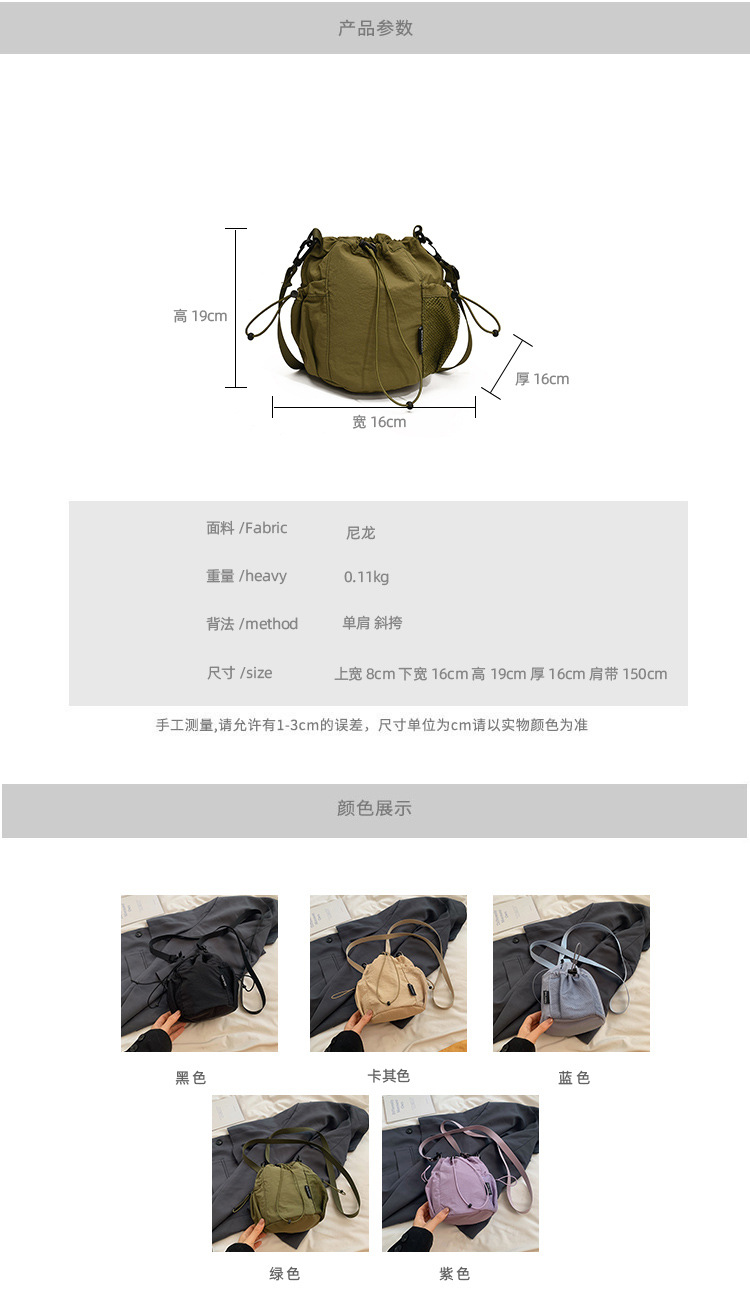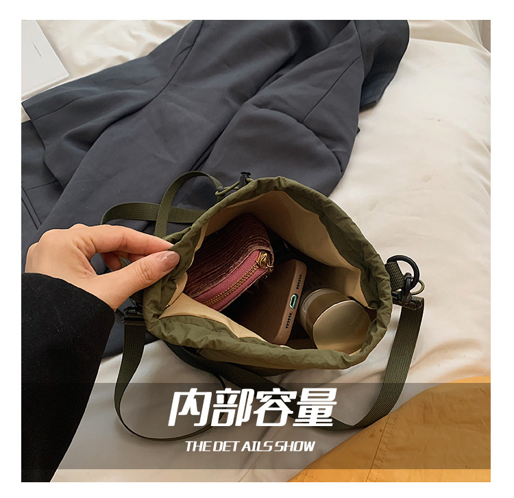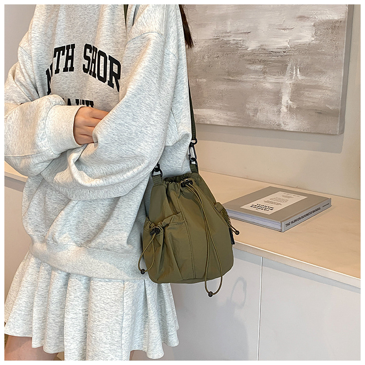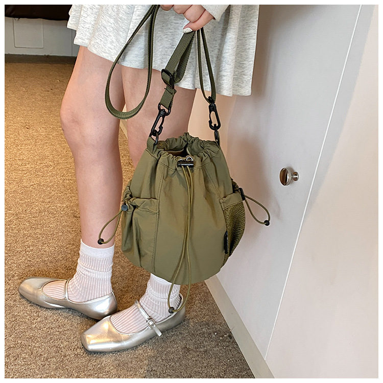 일본 스타일 Ins 틈새 디자인 드래그 스트링 버킷 야외 스포츠 캐주얼 패션 올 매치 나일론 크로스 바디 백스토어 가기