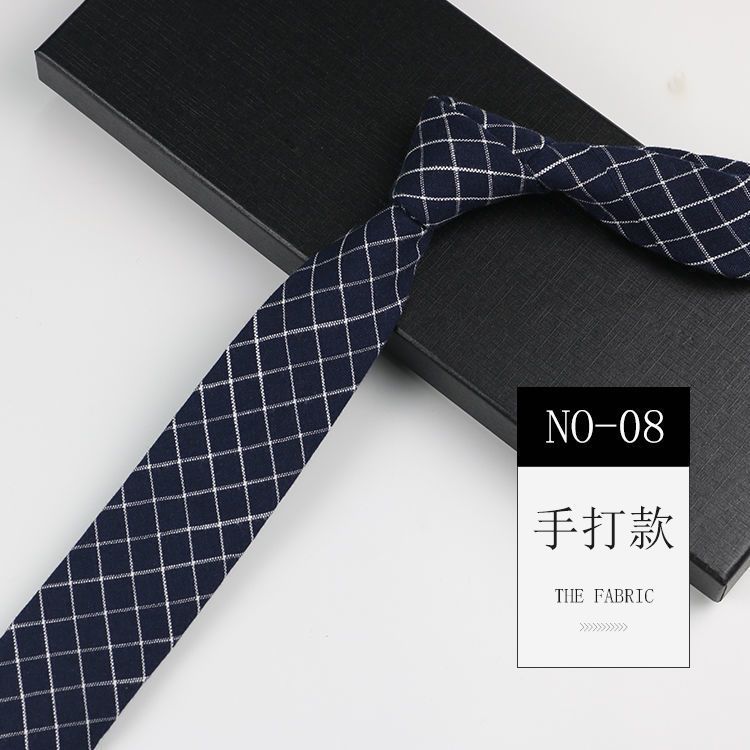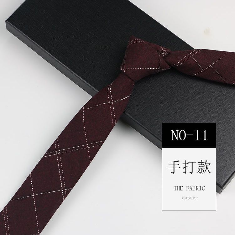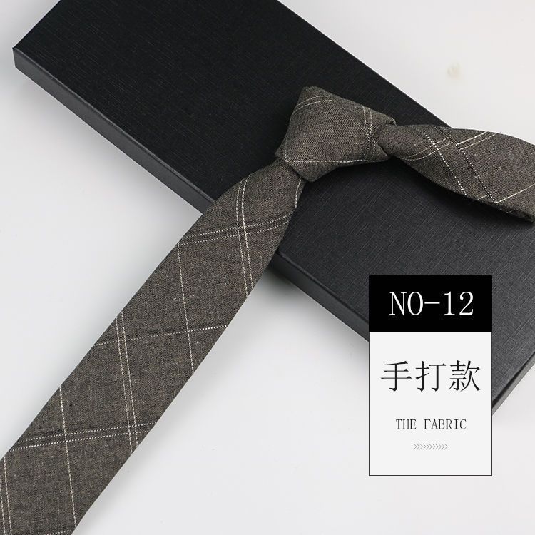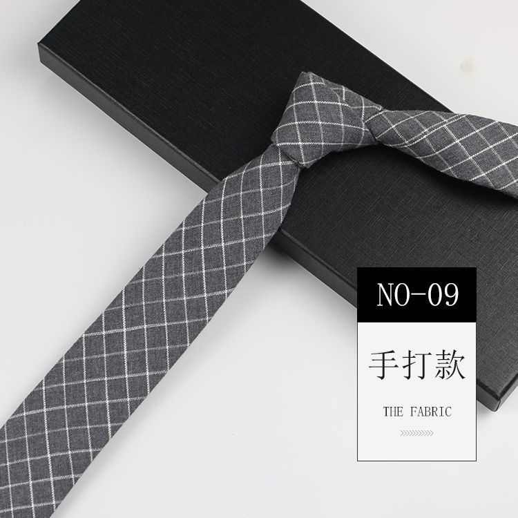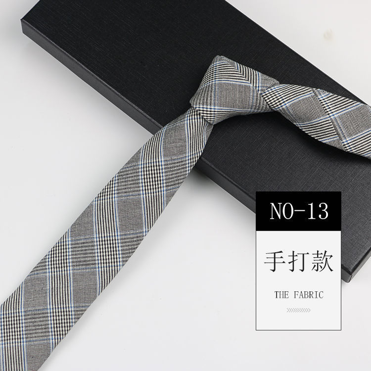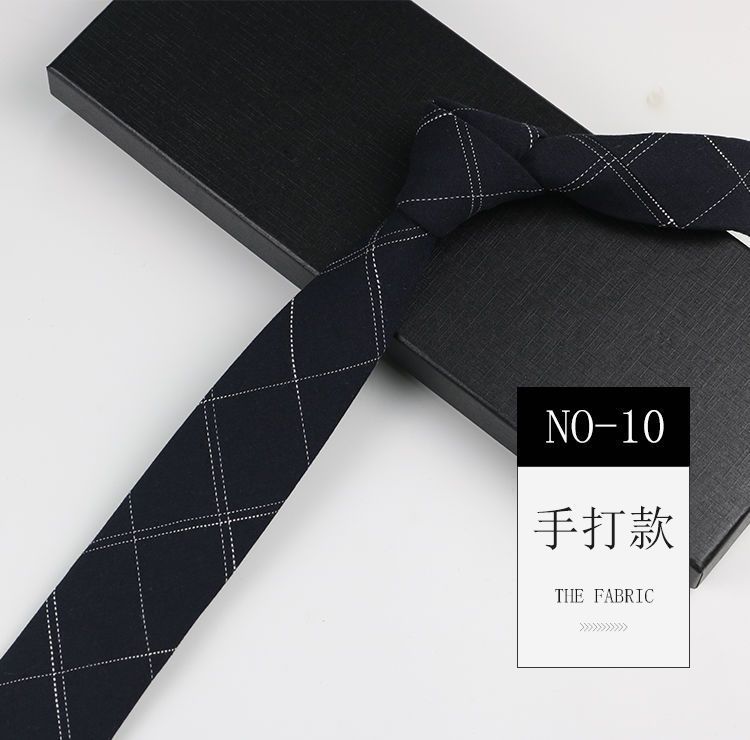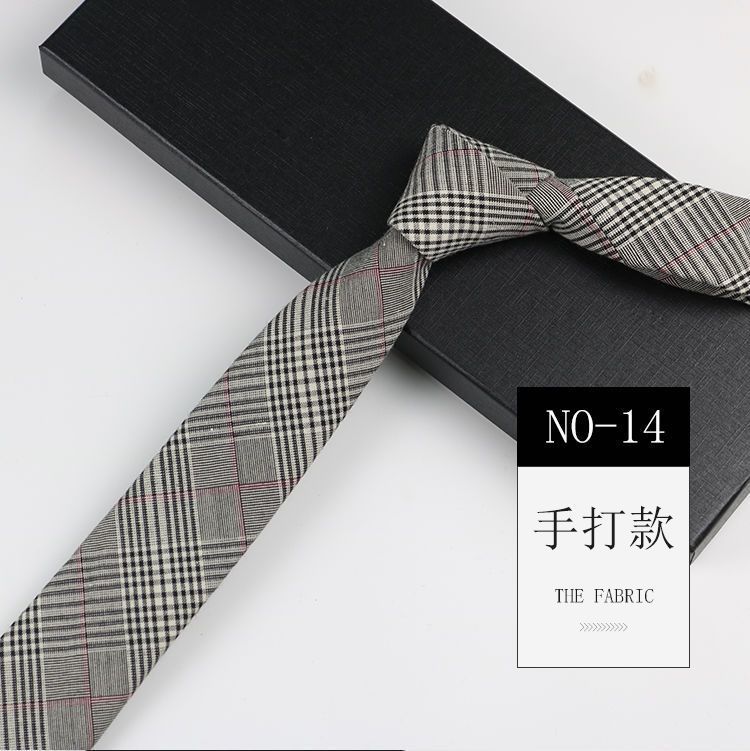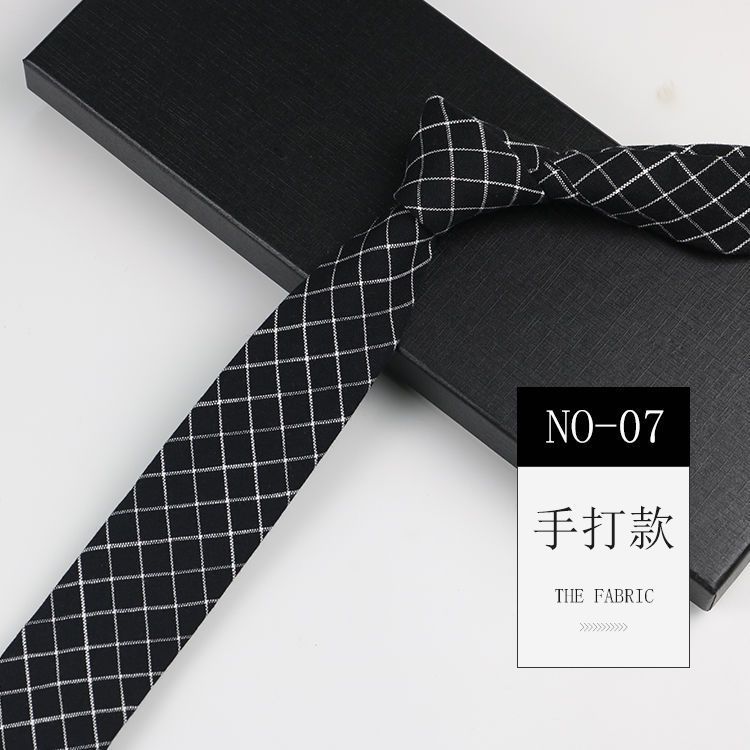 줄무늬 넥타이 좁은 남자의 손 캐주얼 한국 스타일 코튼 홍콩 스타일 학술 스타일 흑백 회색 긴 간단한 격자 무늬스토어 가기
