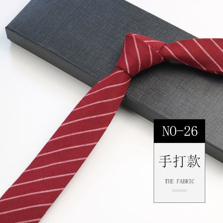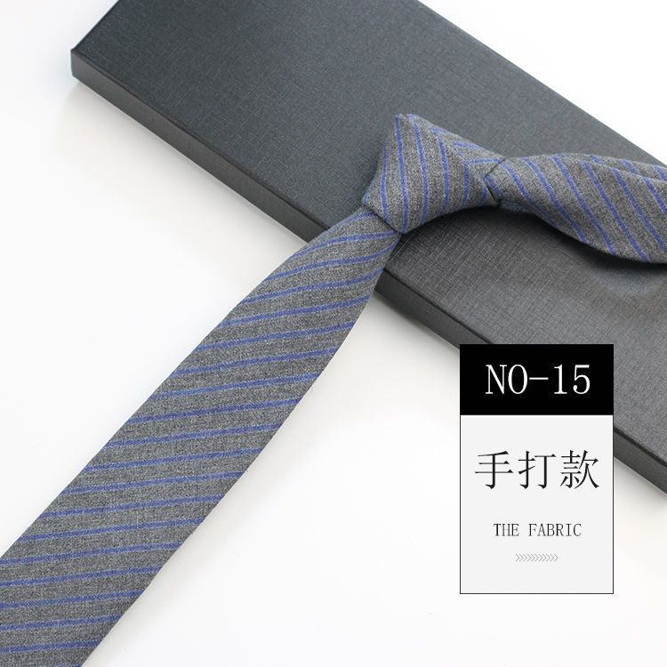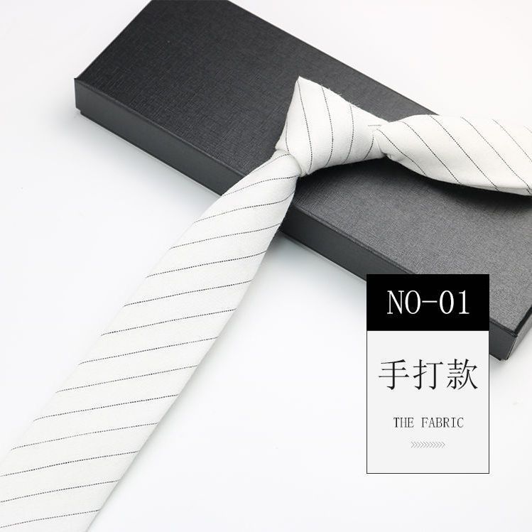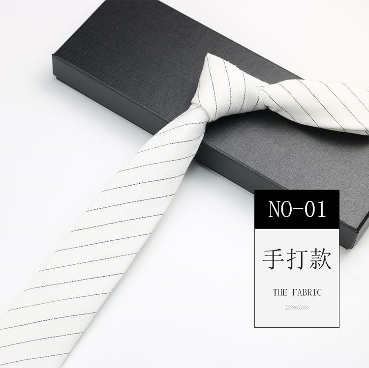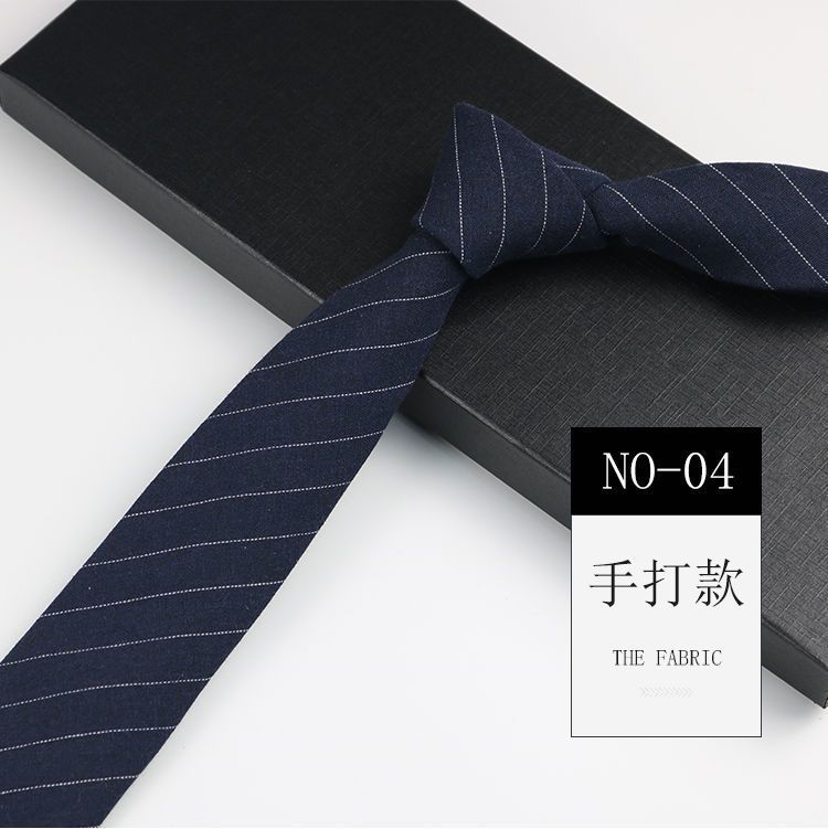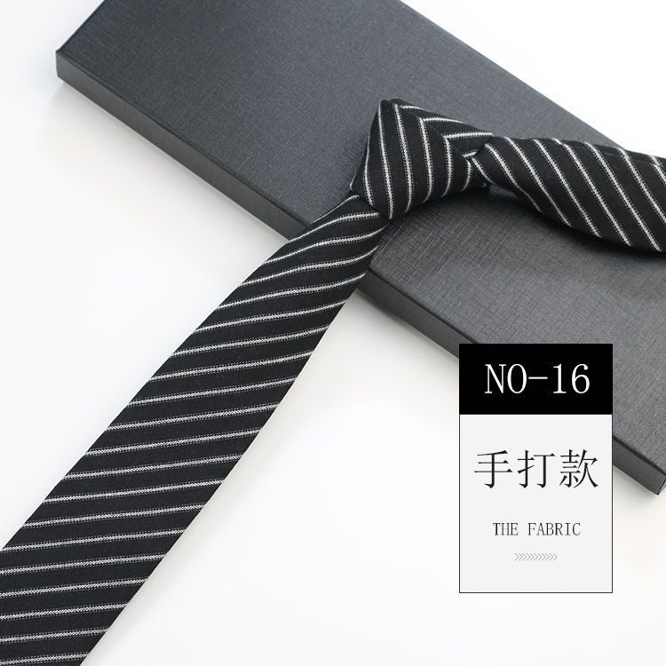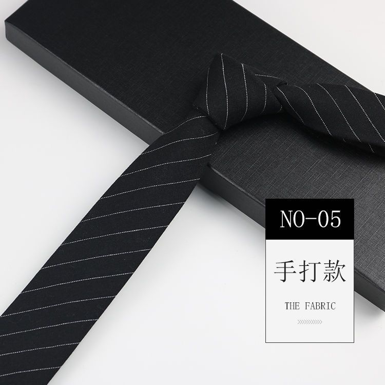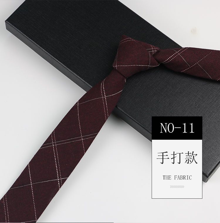 줄무늬 넥타이 좁은 남자의 손 캐주얼 한국 스타일 코튼 홍콩 스타일 학술 스타일 흑백 회색 긴 간단한 격자 무늬스토어 가기
