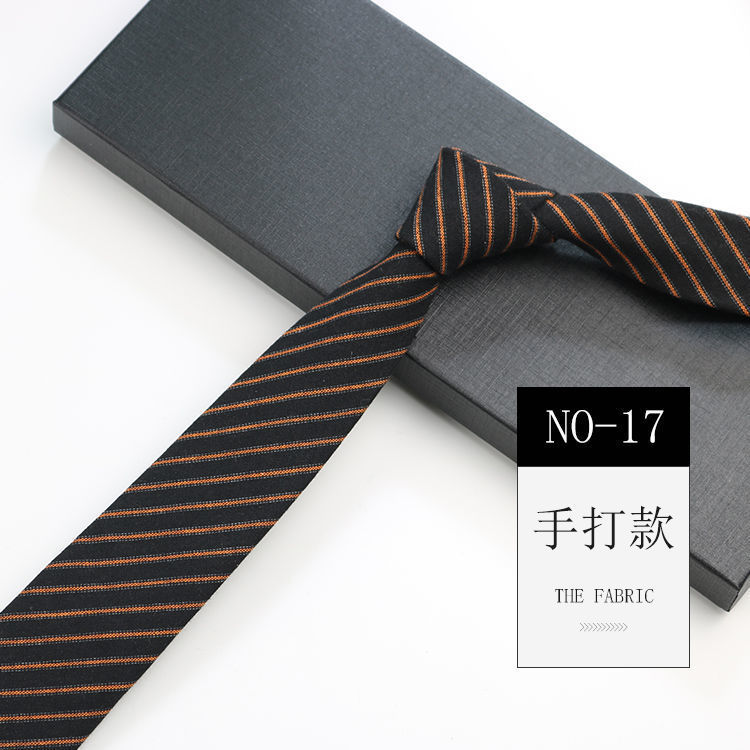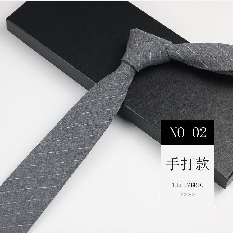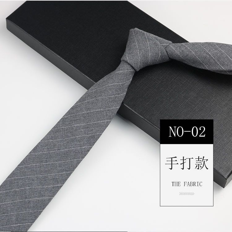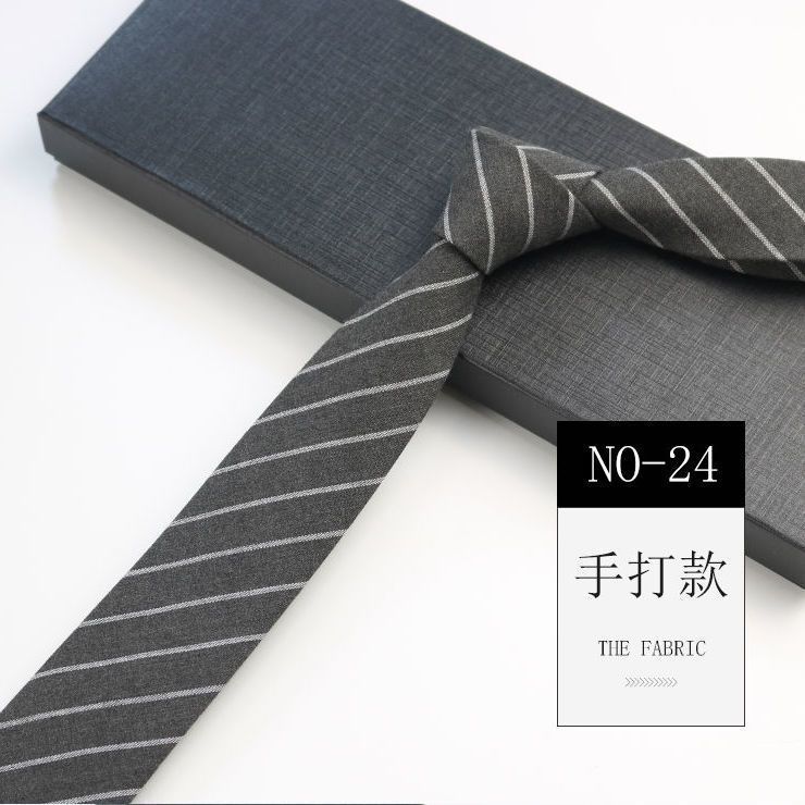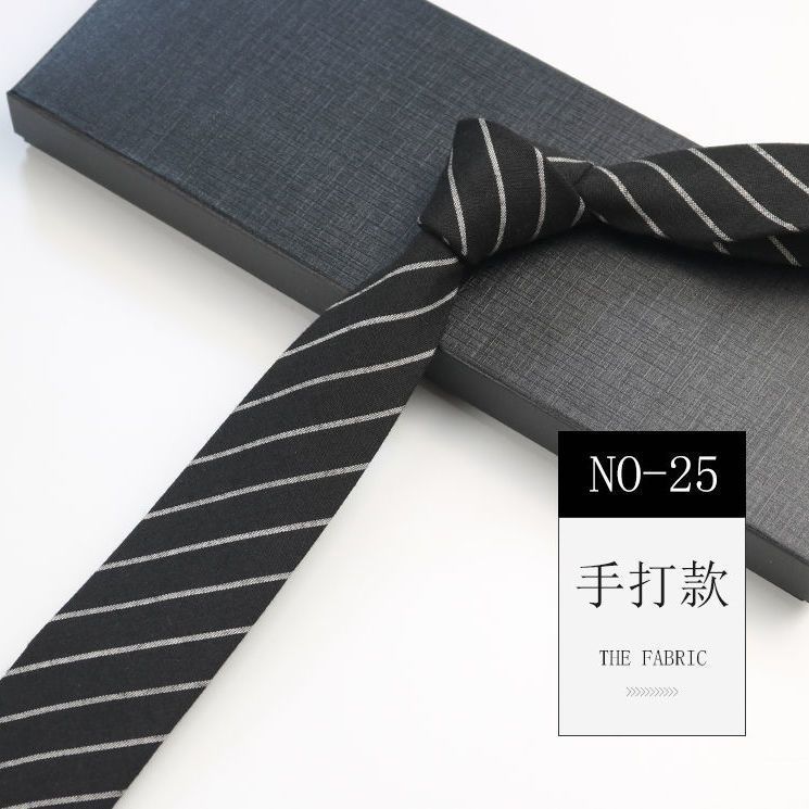 줄무늬 넥타이 좁은 남자의 손 캐주얼 한국 스타일 코튼 홍콩 스타일 학술 스타일 흑백 회색 긴 간단한 격자 무늬