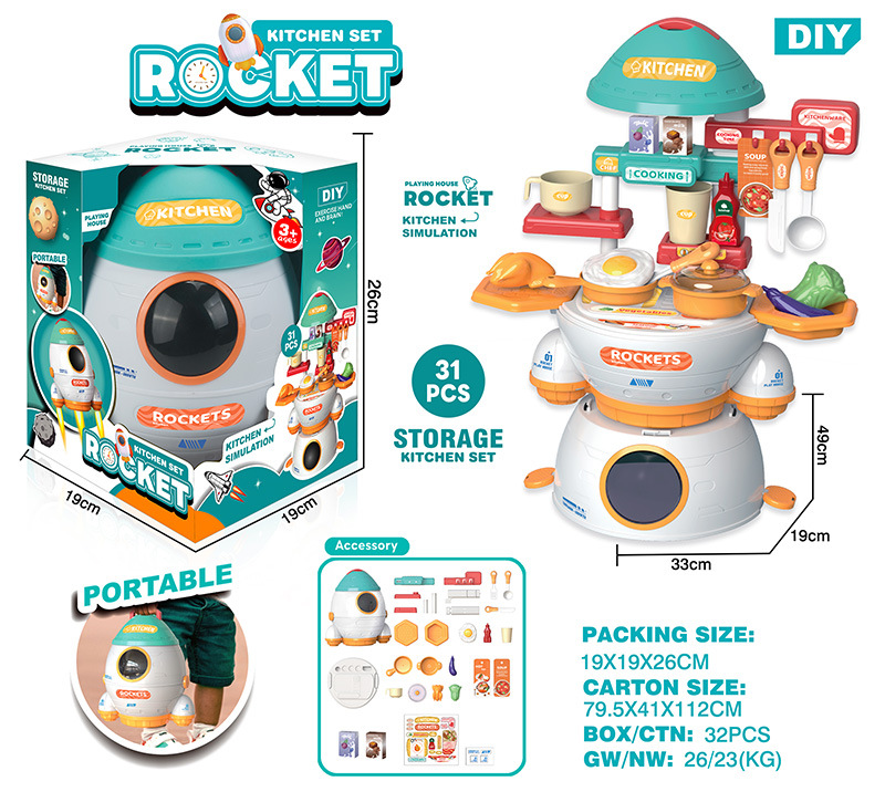 국경 간 새로운 만화 로켓 놀이 홈 세트 어린이 DIY 시뮬레이션 유지 보수 도구 의료 도구 디저트 장난감