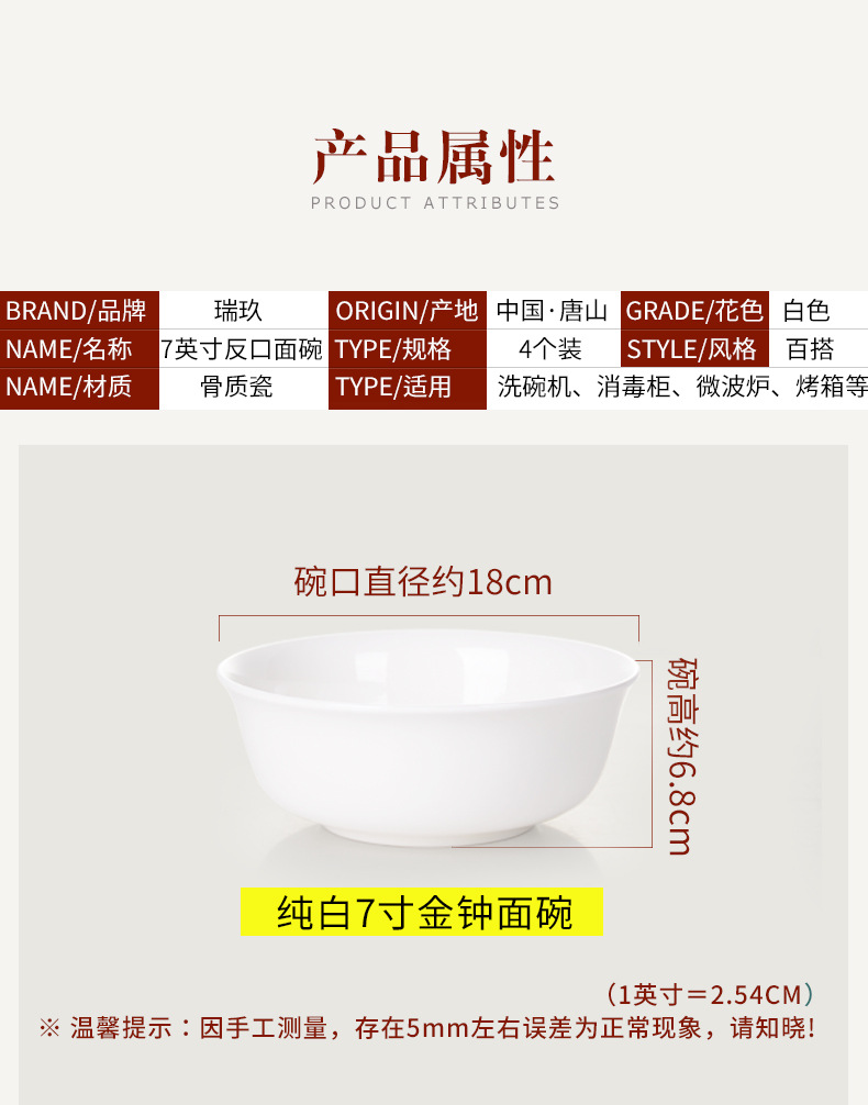 4 가정용 퓨어 화이트 7 인치 국수 그릇 리버스 입 대형 사발 국수 그릇 수프 국수 그릇 쇠고기 국수 그릇 세라믹 그릇 식기 그릇 그릇스토어 가기