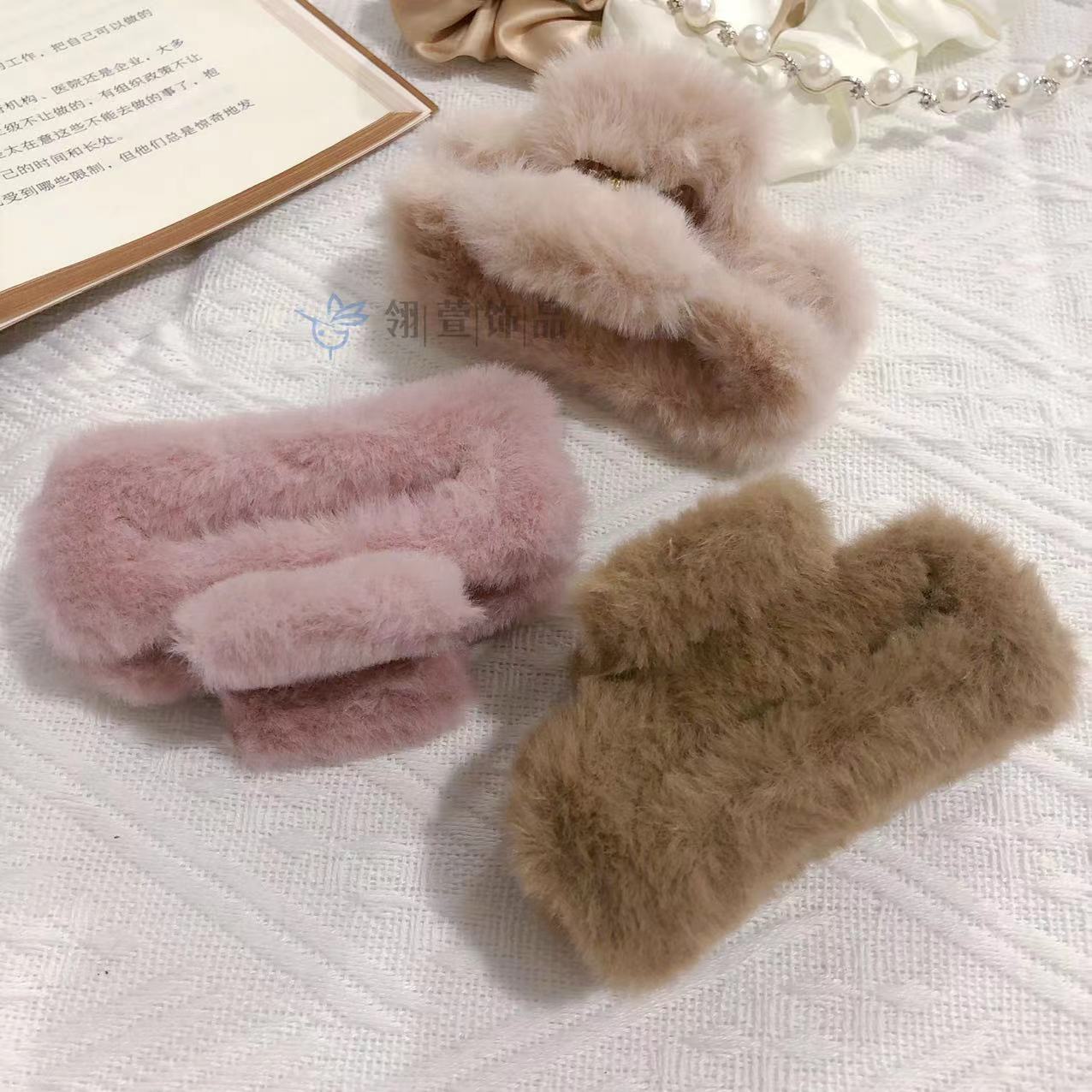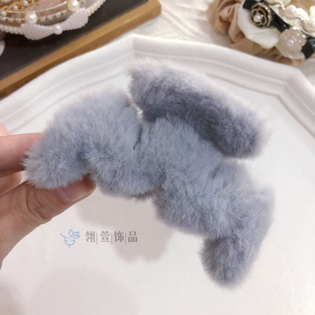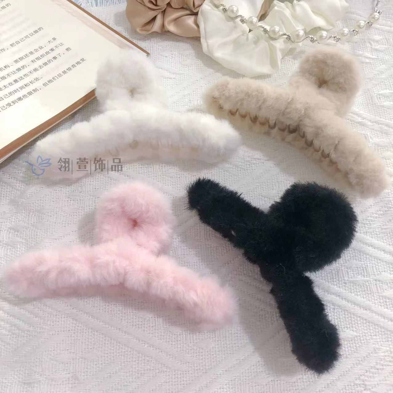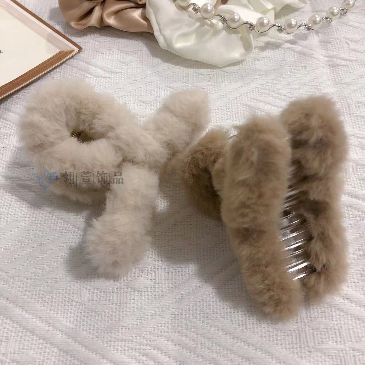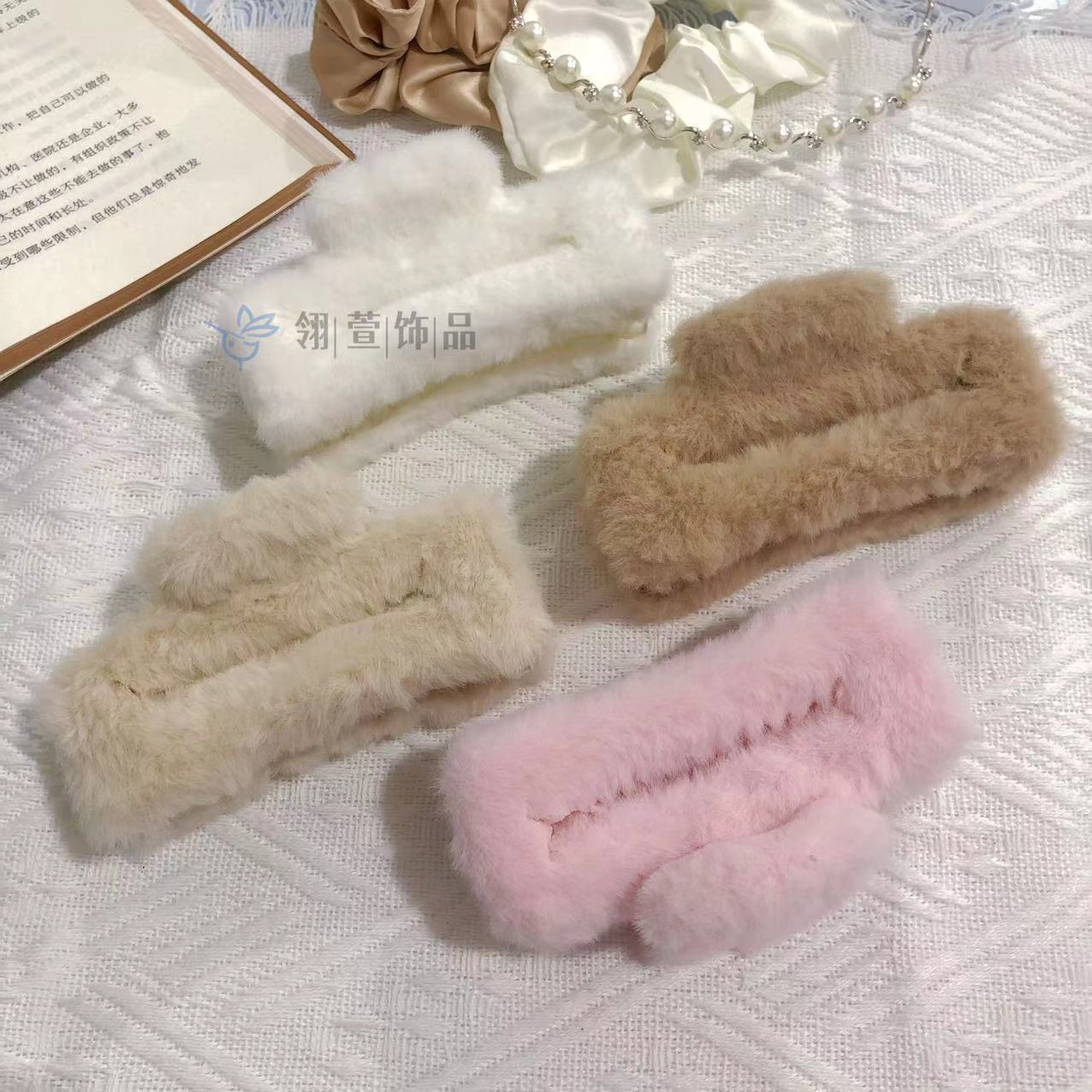 모조 토끼 모피 봉제 클립 한국 가을과 겨울 헤어 클립 부드러운 바람 다시 머리 큰 상어 클립 헤어 액세서리 도매스토어 가기