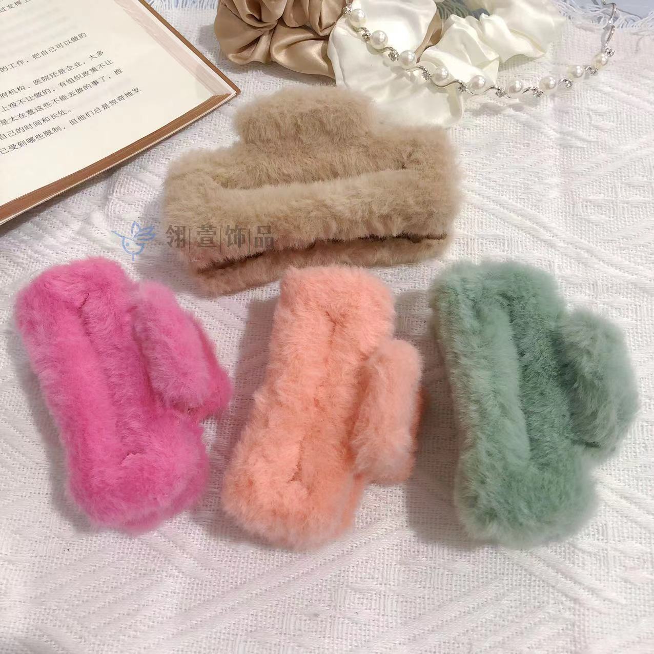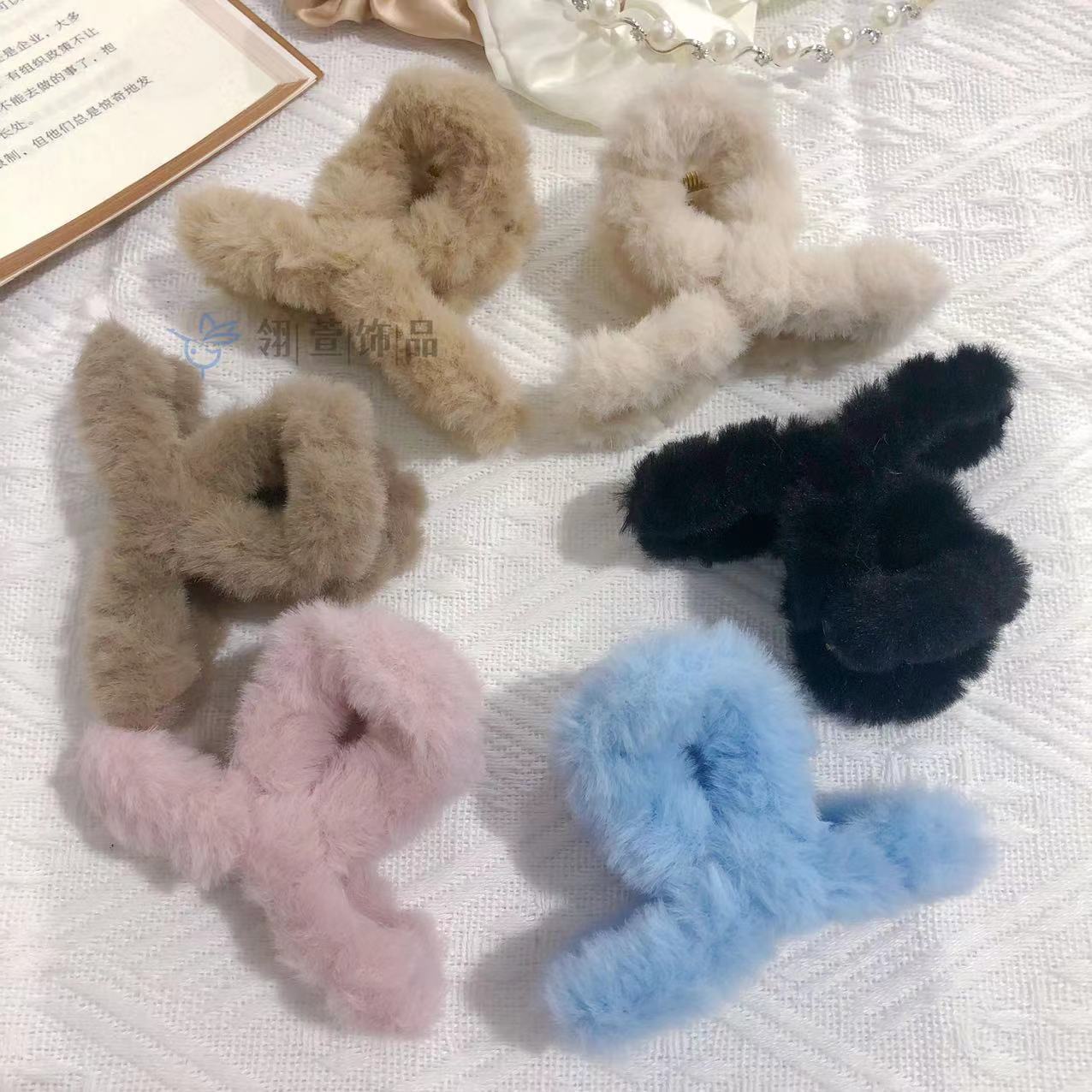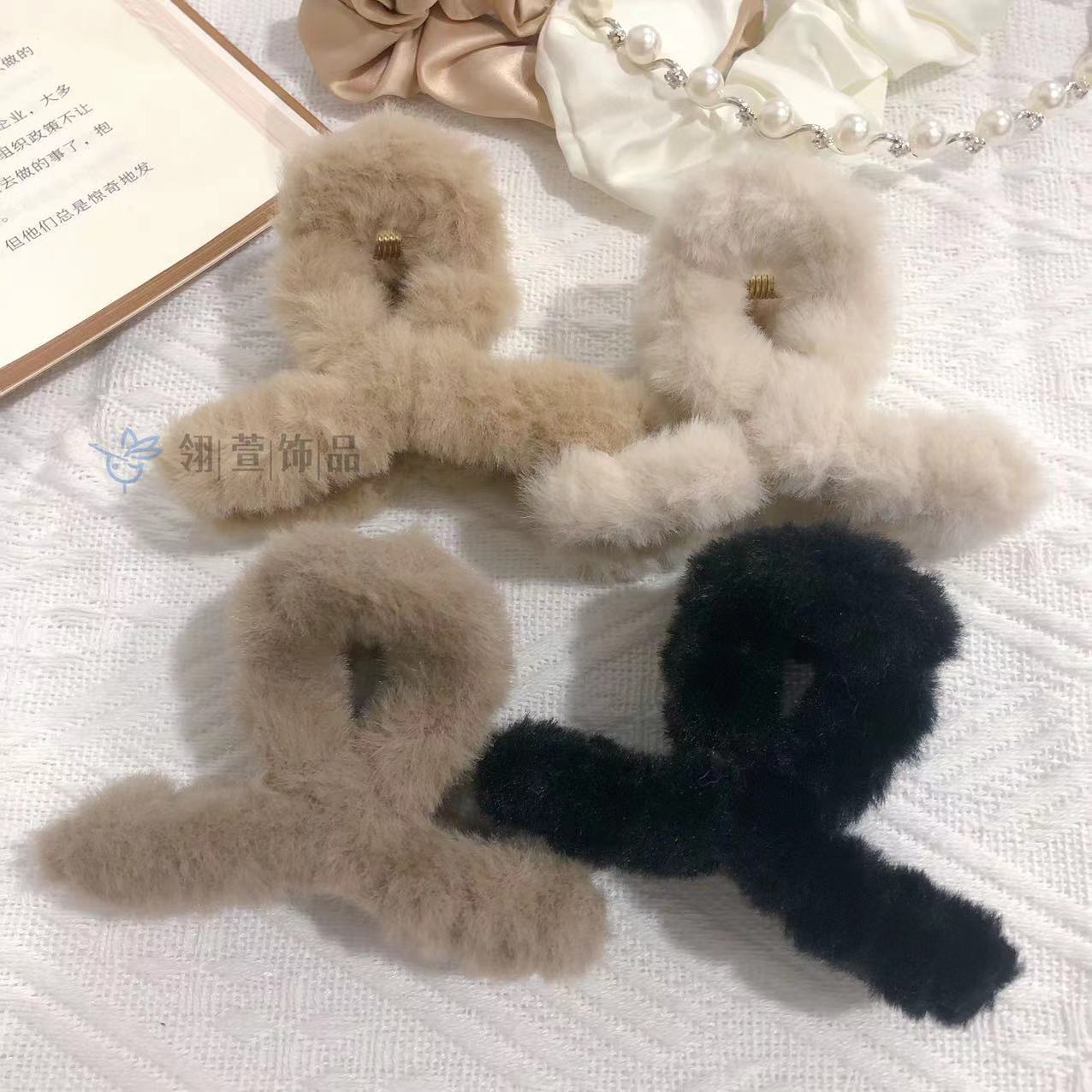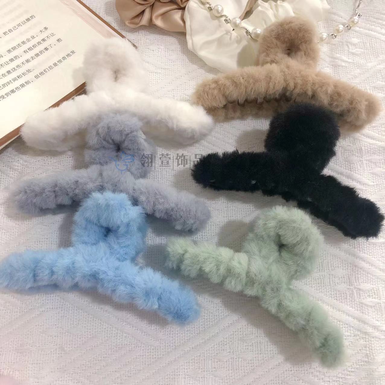 모조 토끼 모피 봉제 클립 한국 가을과 겨울 헤어 클립 부드러운 바람 다시 머리 큰 상어 클립 헤어 액세서리 도매스토어 가기