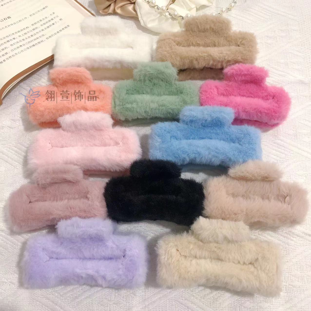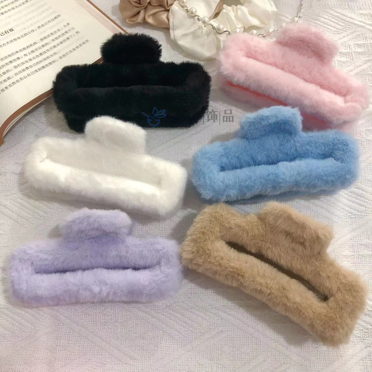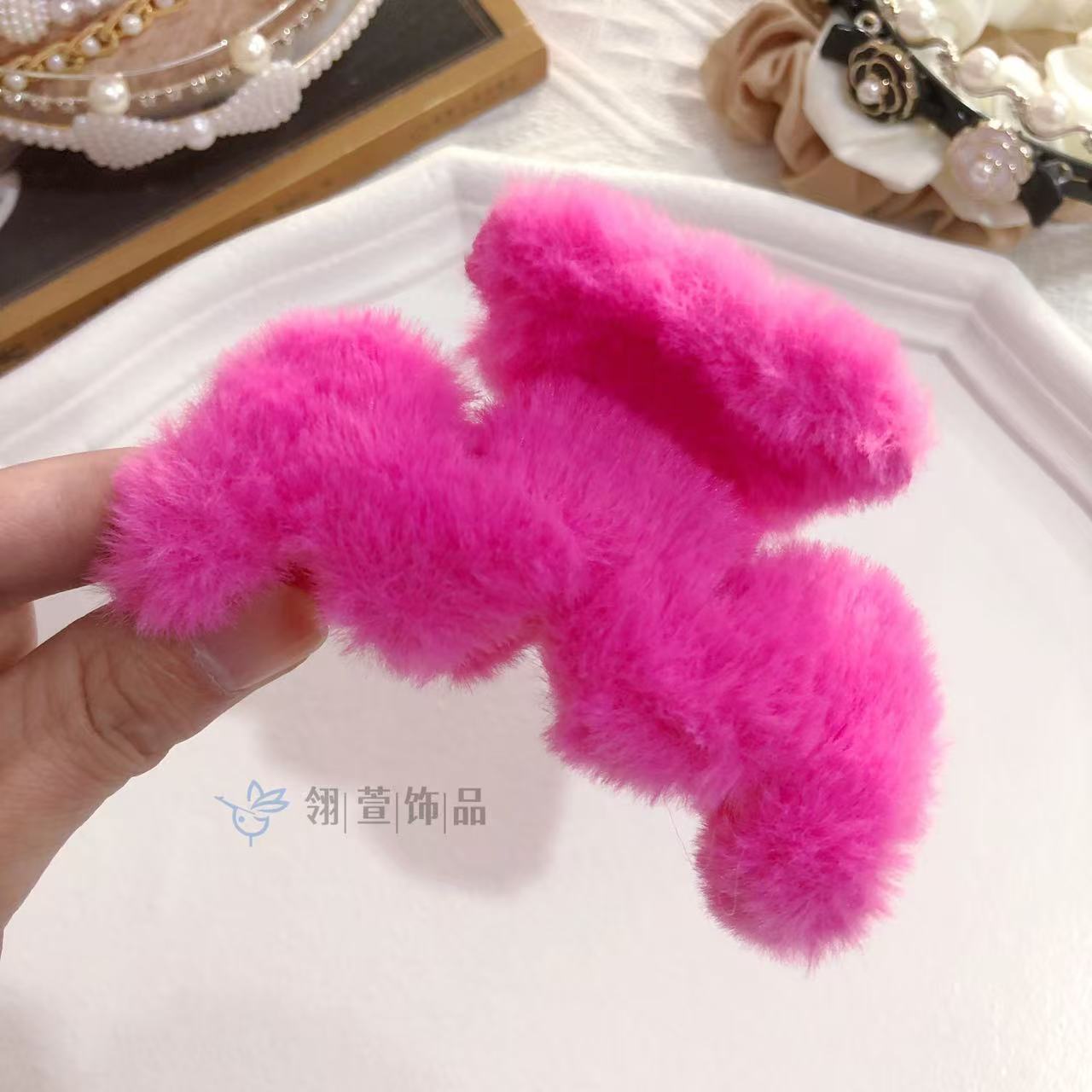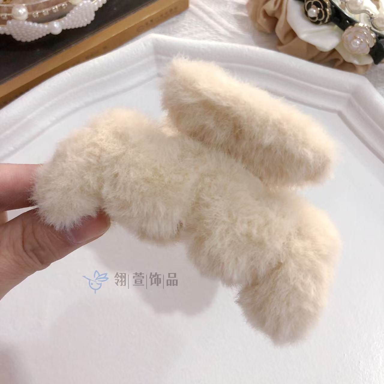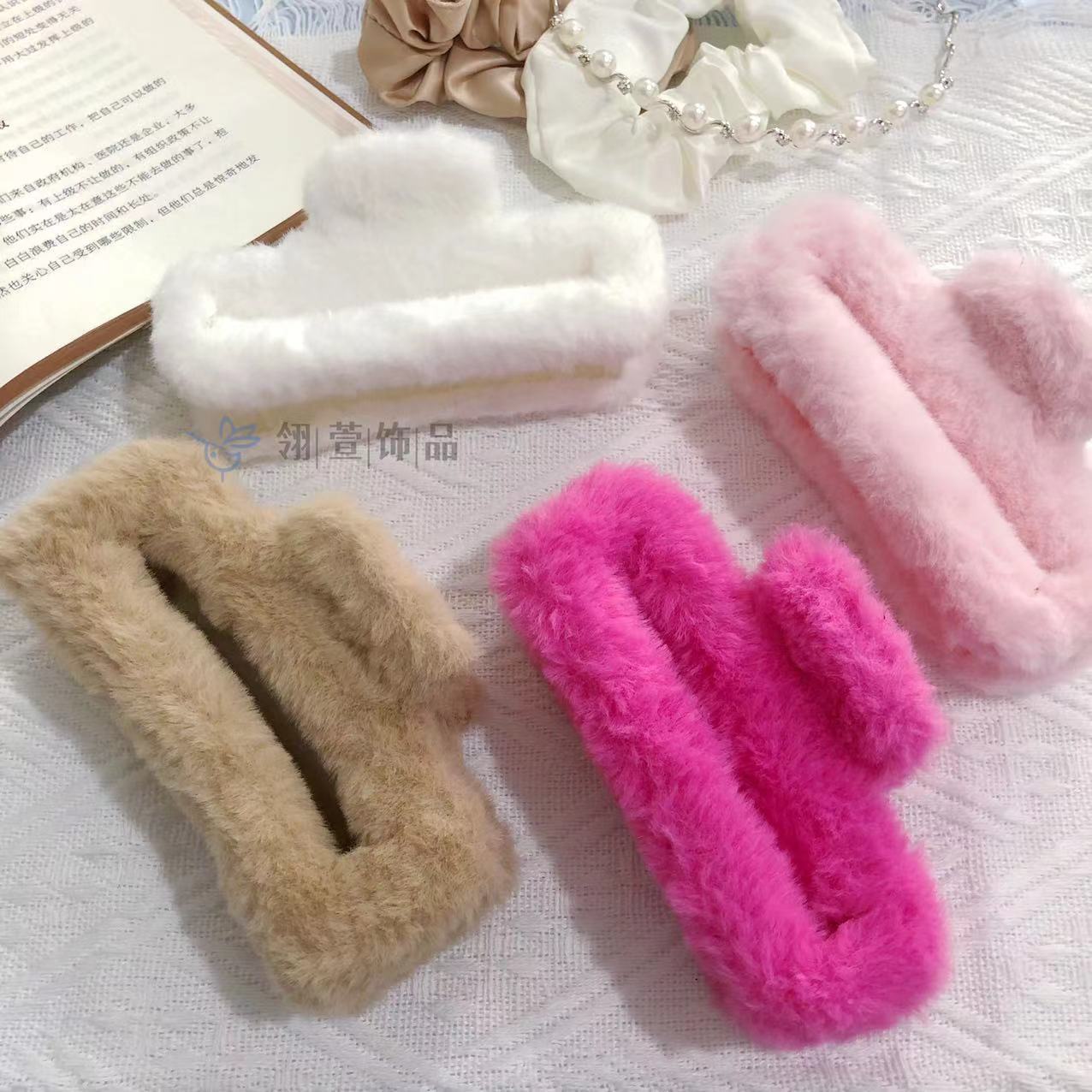 모조 토끼 모피 봉제 클립 한국 가을과 겨울 헤어 클립 부드러운 바람 다시 머리 큰 상어 클립 헤어 액세서리 도매스토어 가기