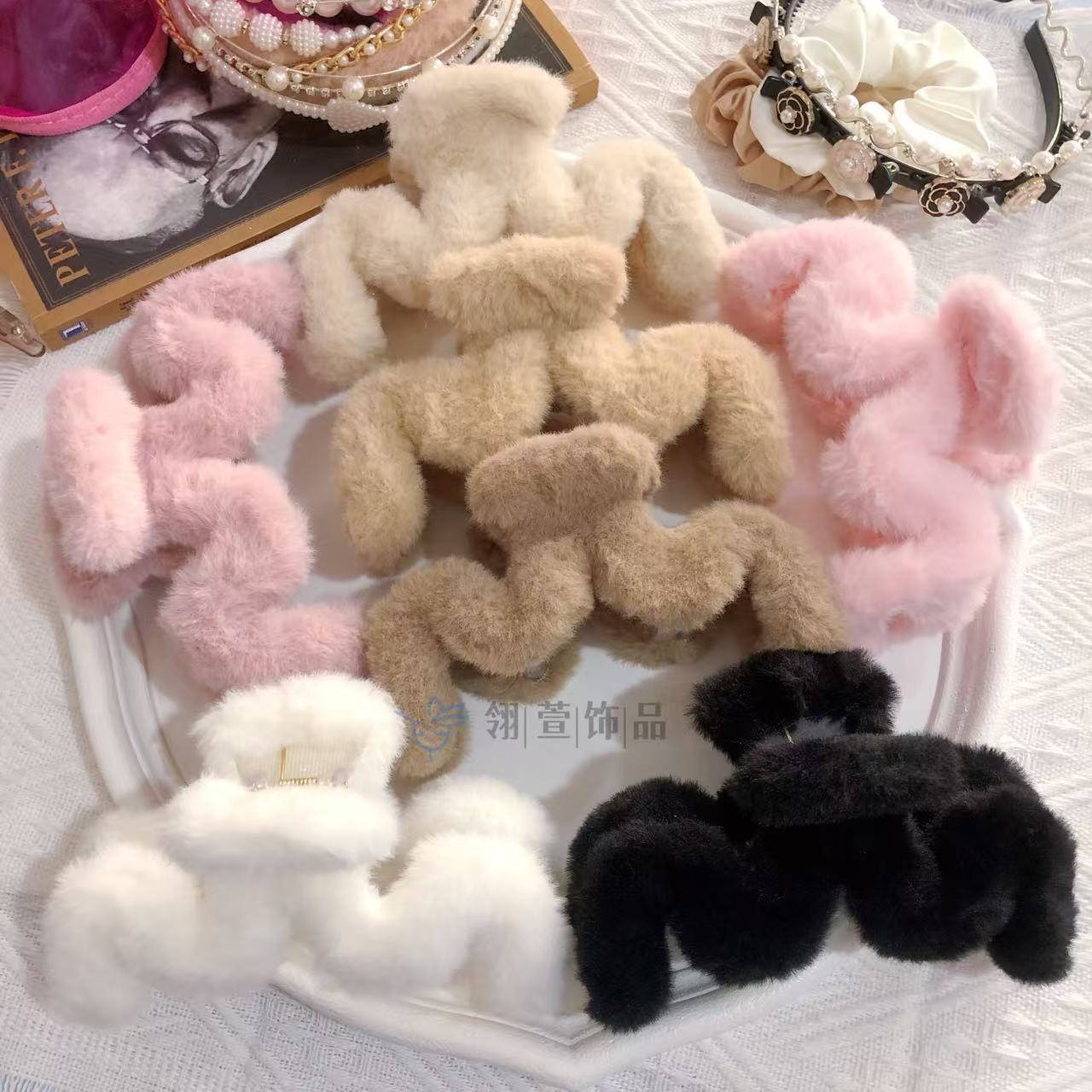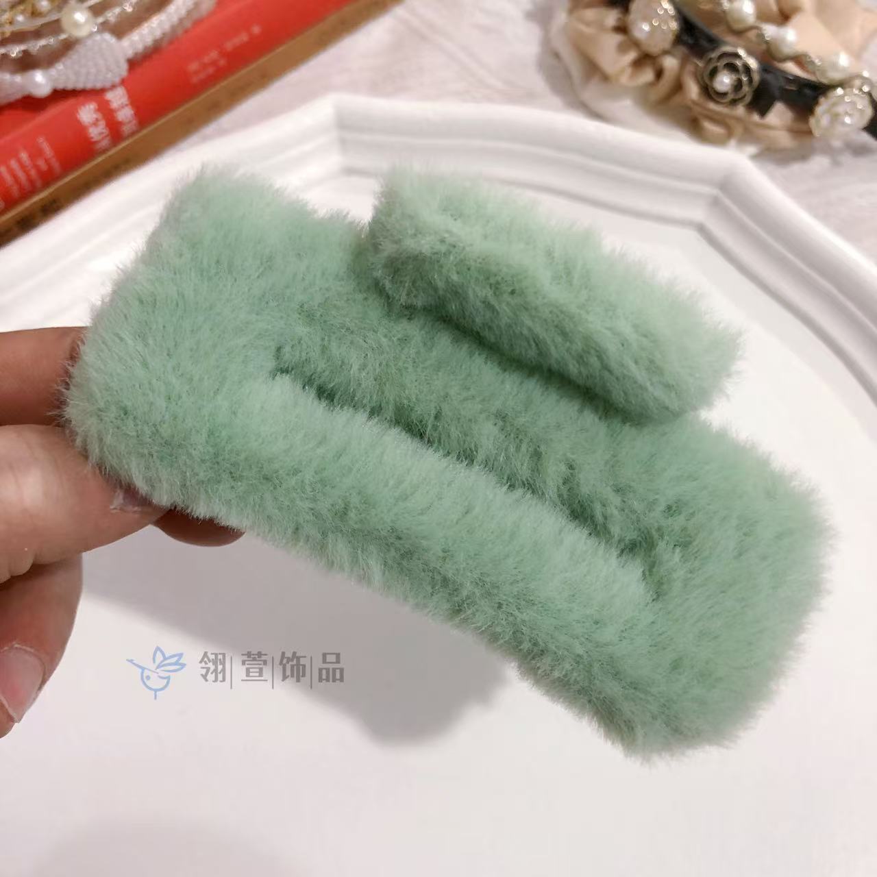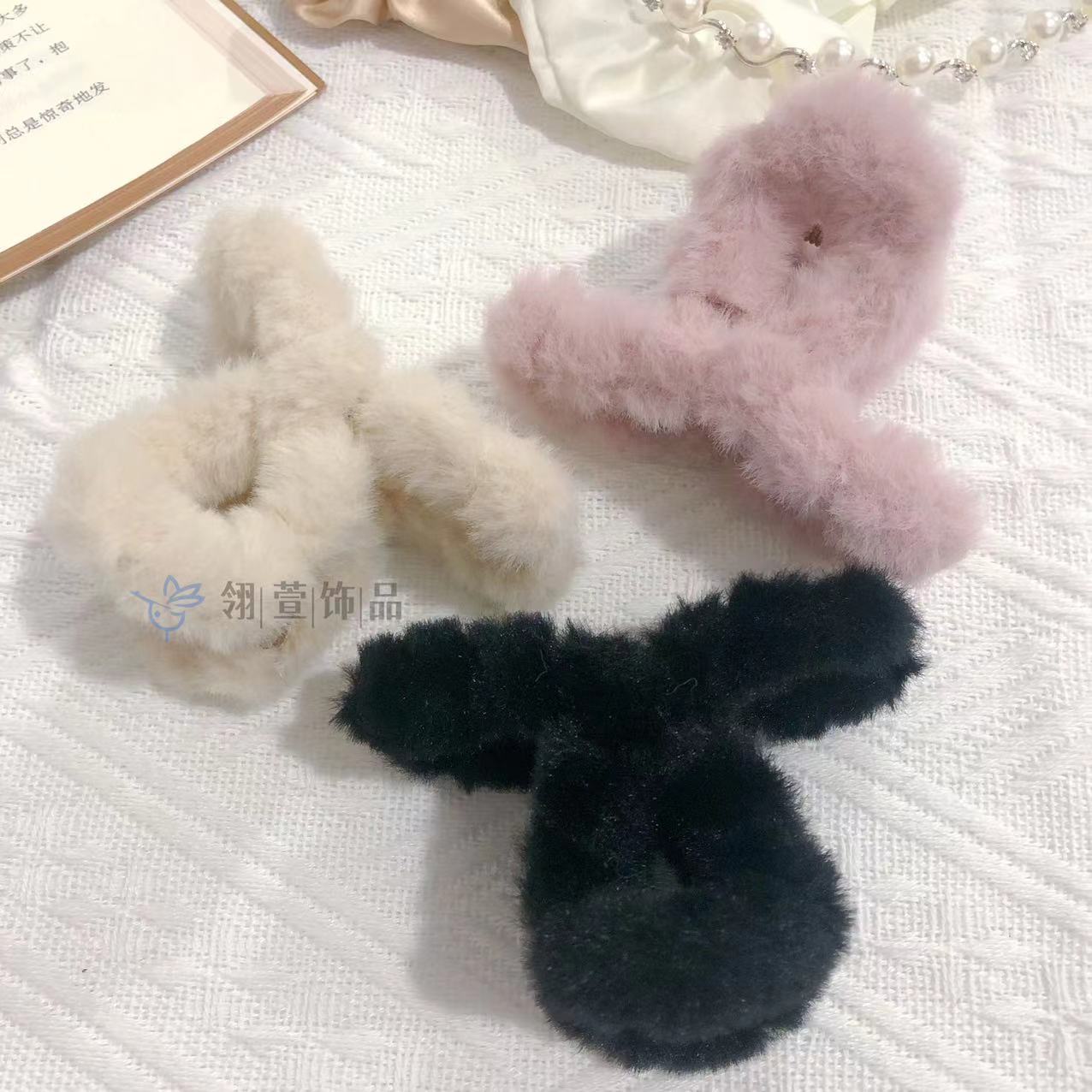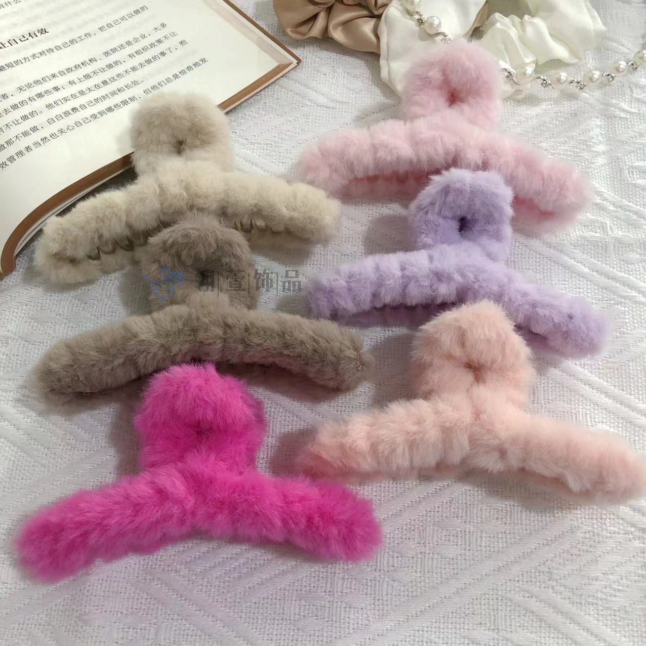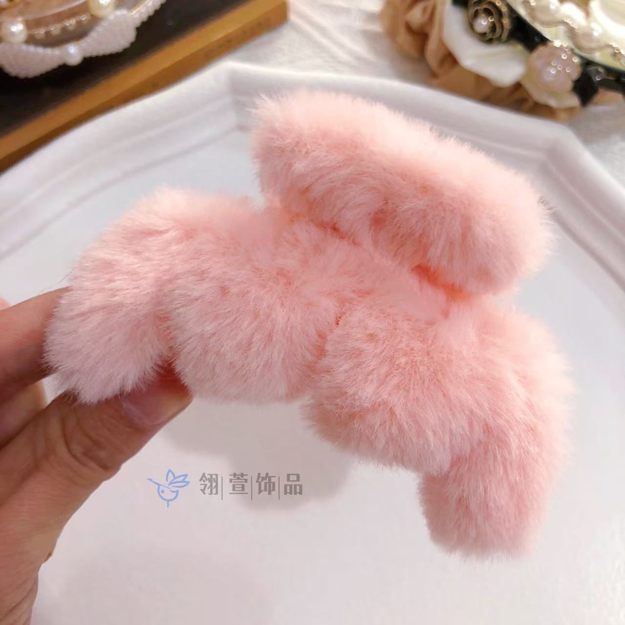 모조 토끼 모피 봉제 클립 한국 가을과 겨울 헤어 클립 부드러운 바람 다시 머리 큰 상어 클립 헤어 액세서리 도매스토어 가기