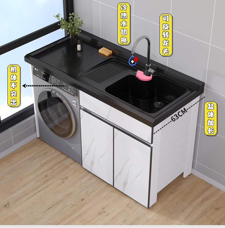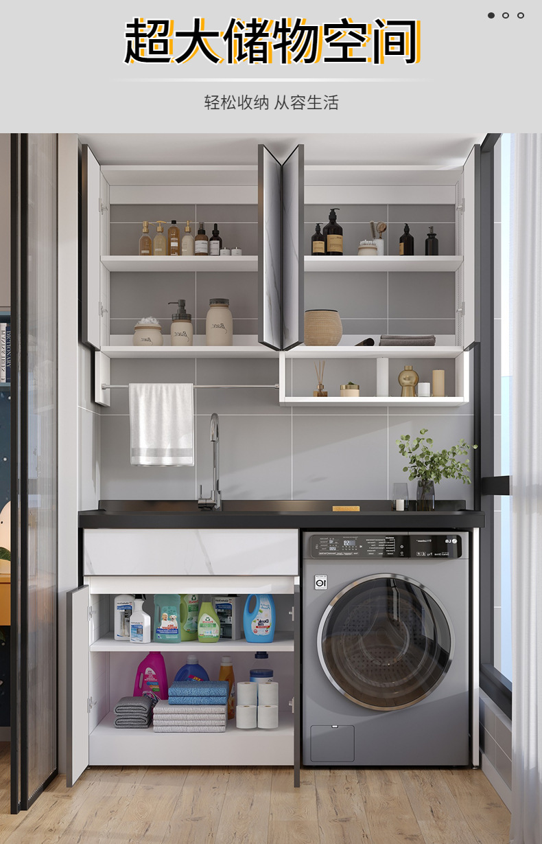 발코니 코너 절단 교수형 내각 내각 동반자 드럼 세탁기 알루미늄 세탁 조합 풀 슬롯 통합 분지 공간스토어 가기
