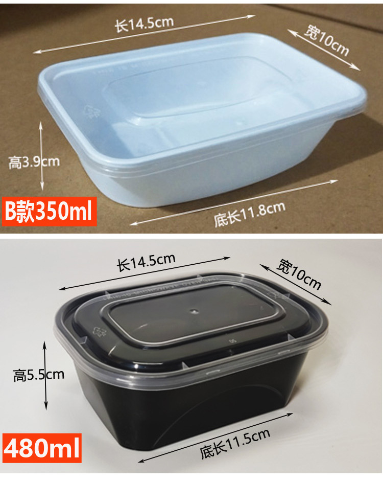 두꺼운 350ml 일회용 도시락 미국 직사각형 작은 그릇 접시 테이크 아웃 포장 상자 480 패스트 푸드 도시락 뚜껑