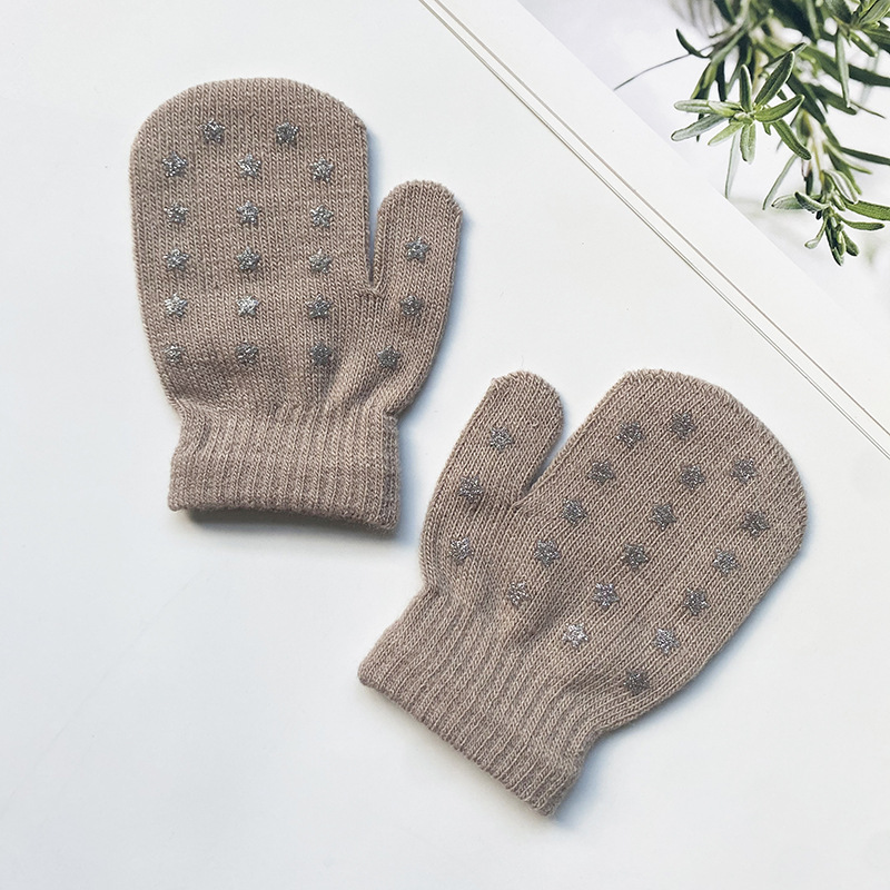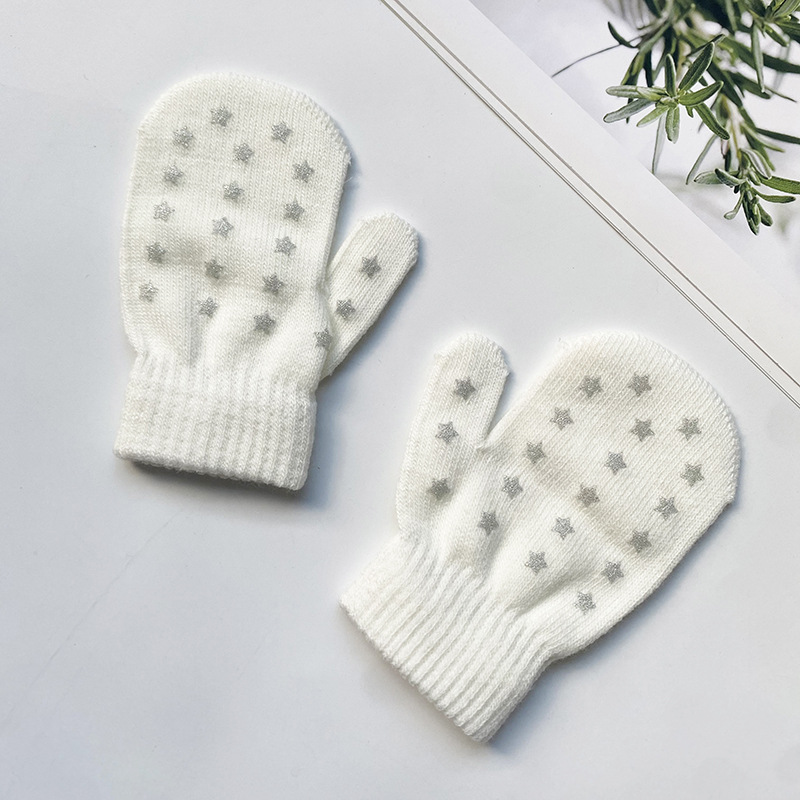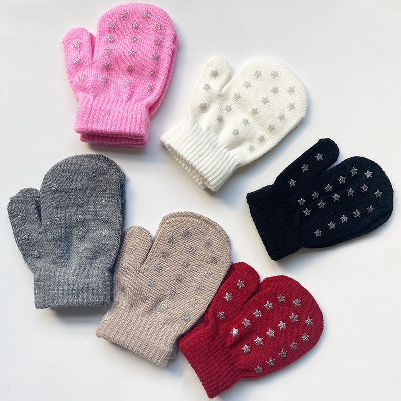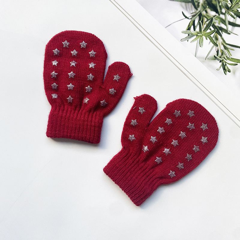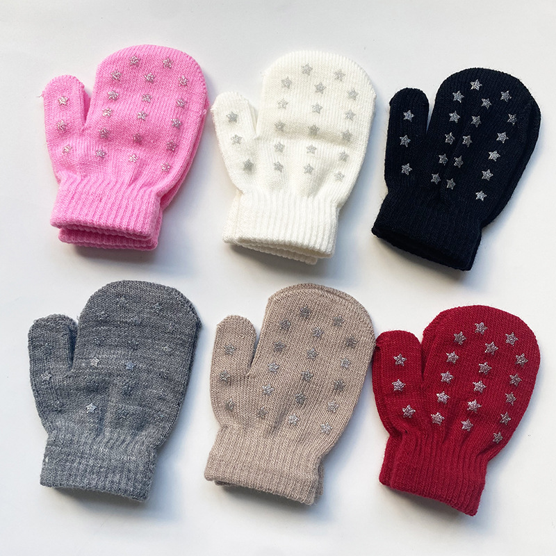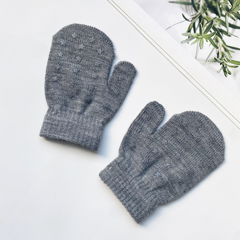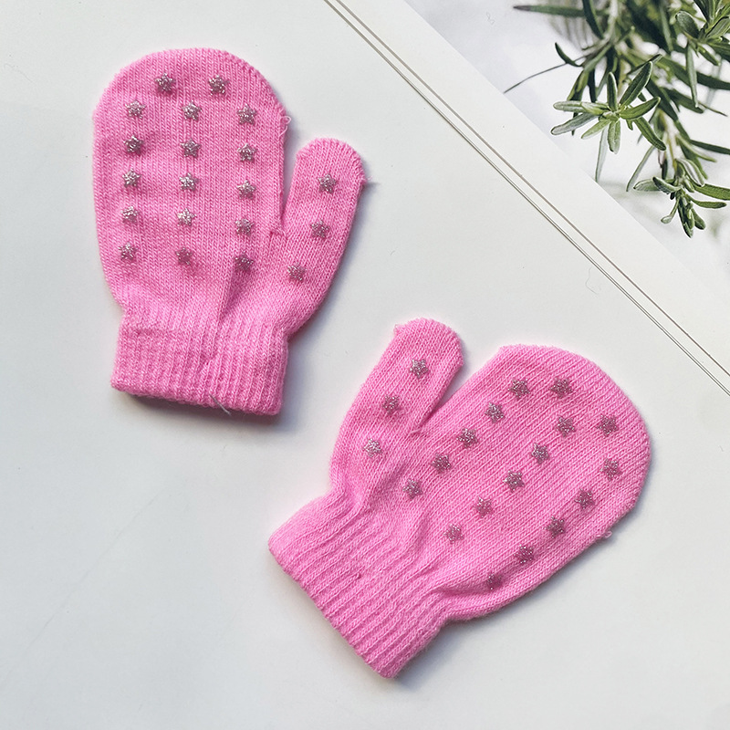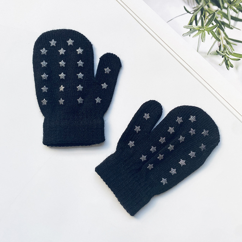 가을과 겨울 2024 유치원 어린이 겨울 따뜻한 니트 장갑 귀여운 다섯개의 별 패턴 가방 손가락 장갑