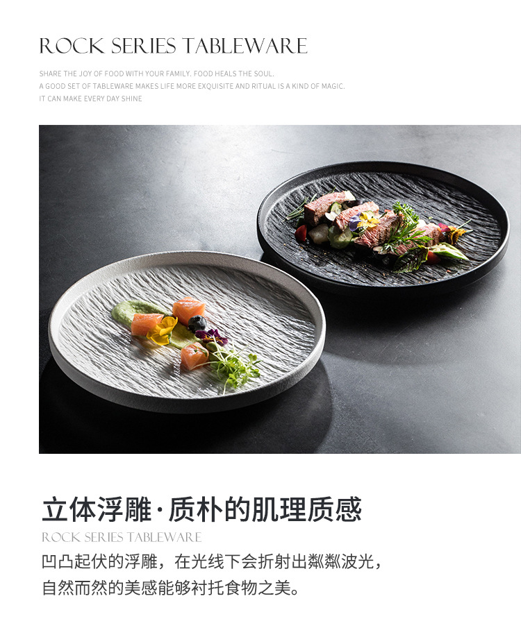 바위 패턴 웨스턴 플레이트 스테이크 플레이트 살라 플레이트 레스토랑 상업 플레이트 일본 플레이트 세라믹 플레이트