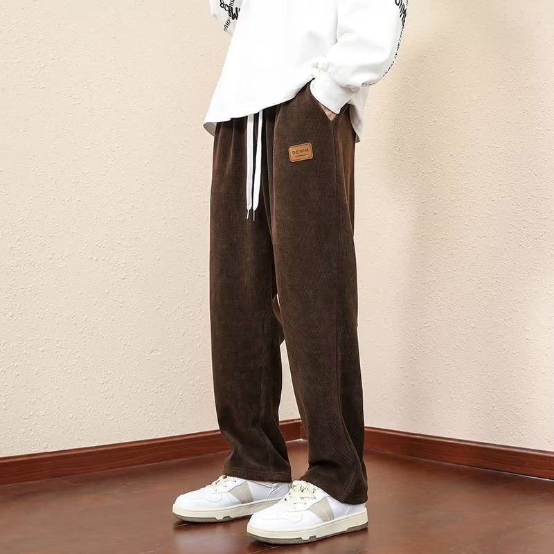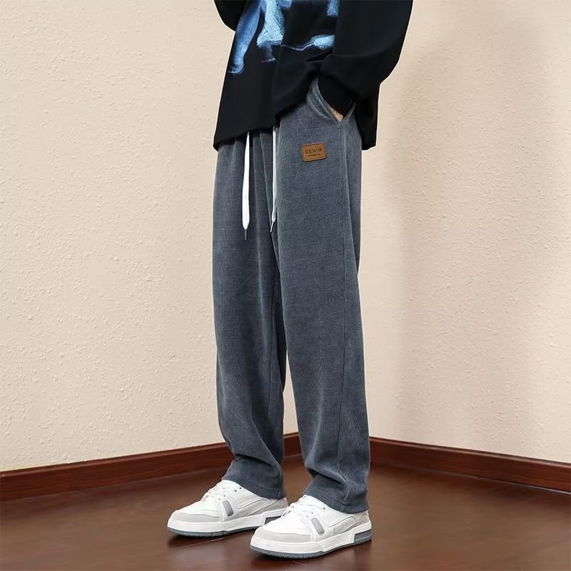 코듀로이 바지 남자 봄과 가을 스트레이트 도스 캐주얼 남자 느슨한 겨울 기모 남자 스포츠 바지스토어 가기