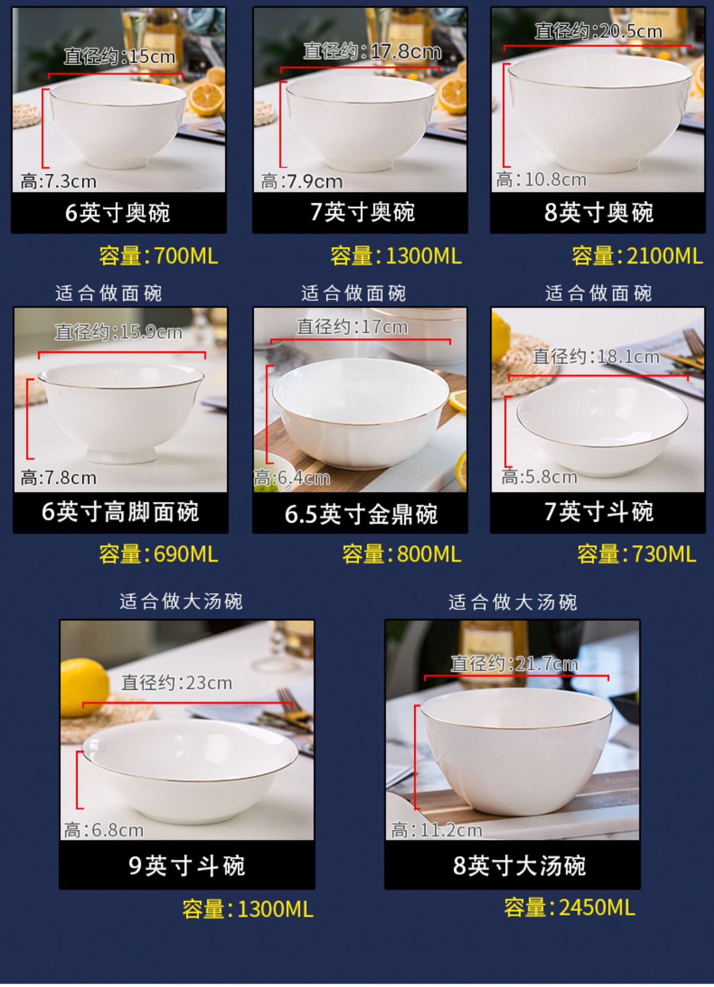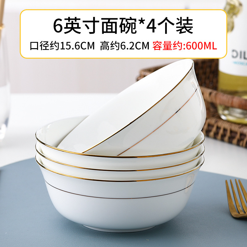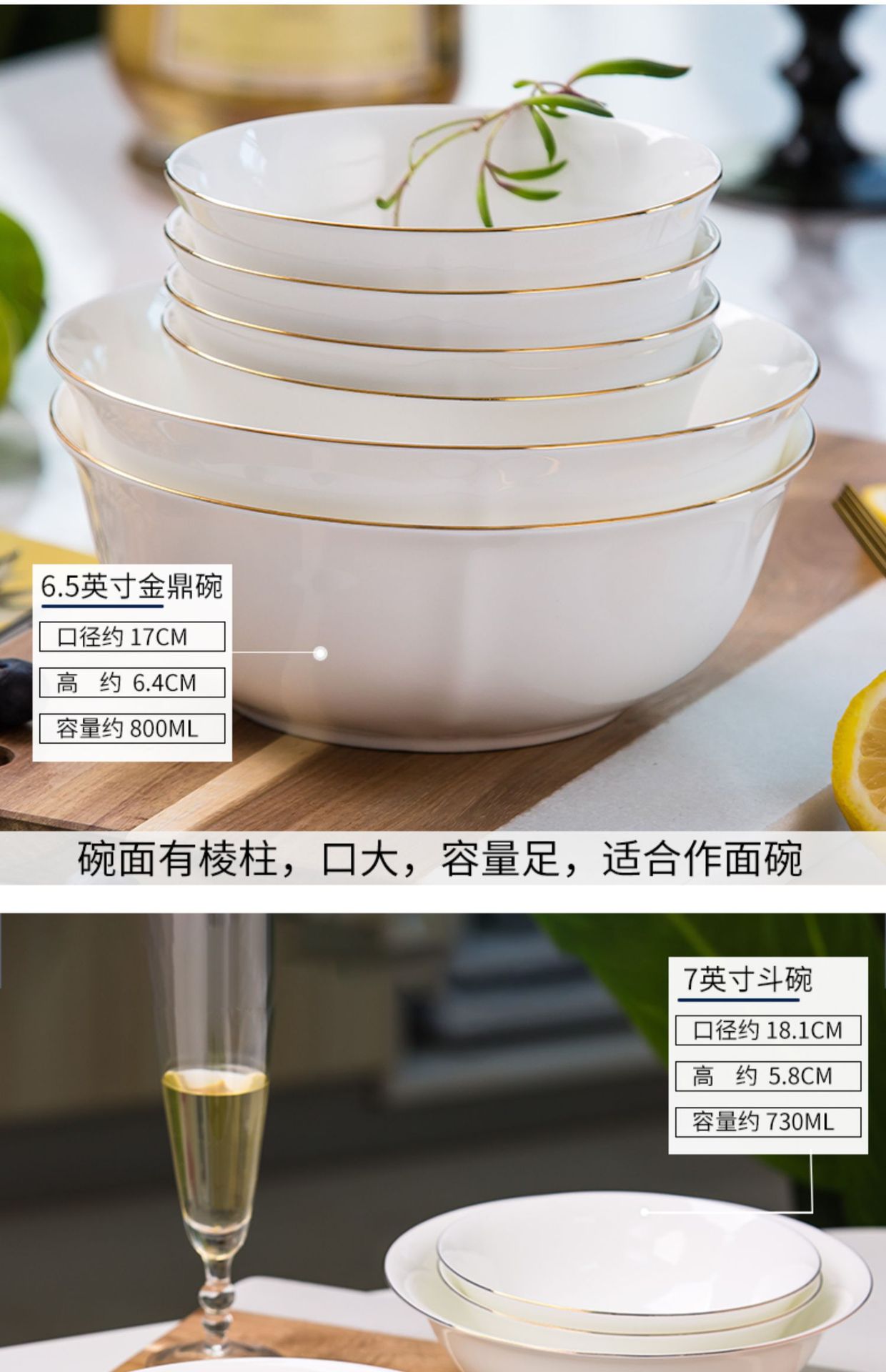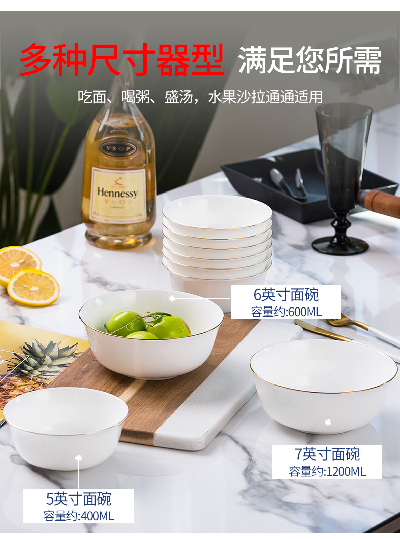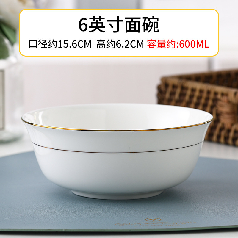 세라믹 국수 그릇 단일 가정 대형 식용 국수 그릇 창조적 인 순수한 흰색 프놈펜 유럽 스타일 대형 그릇 6.5 인치 뼈 중국 수프 그릇스토어 가기